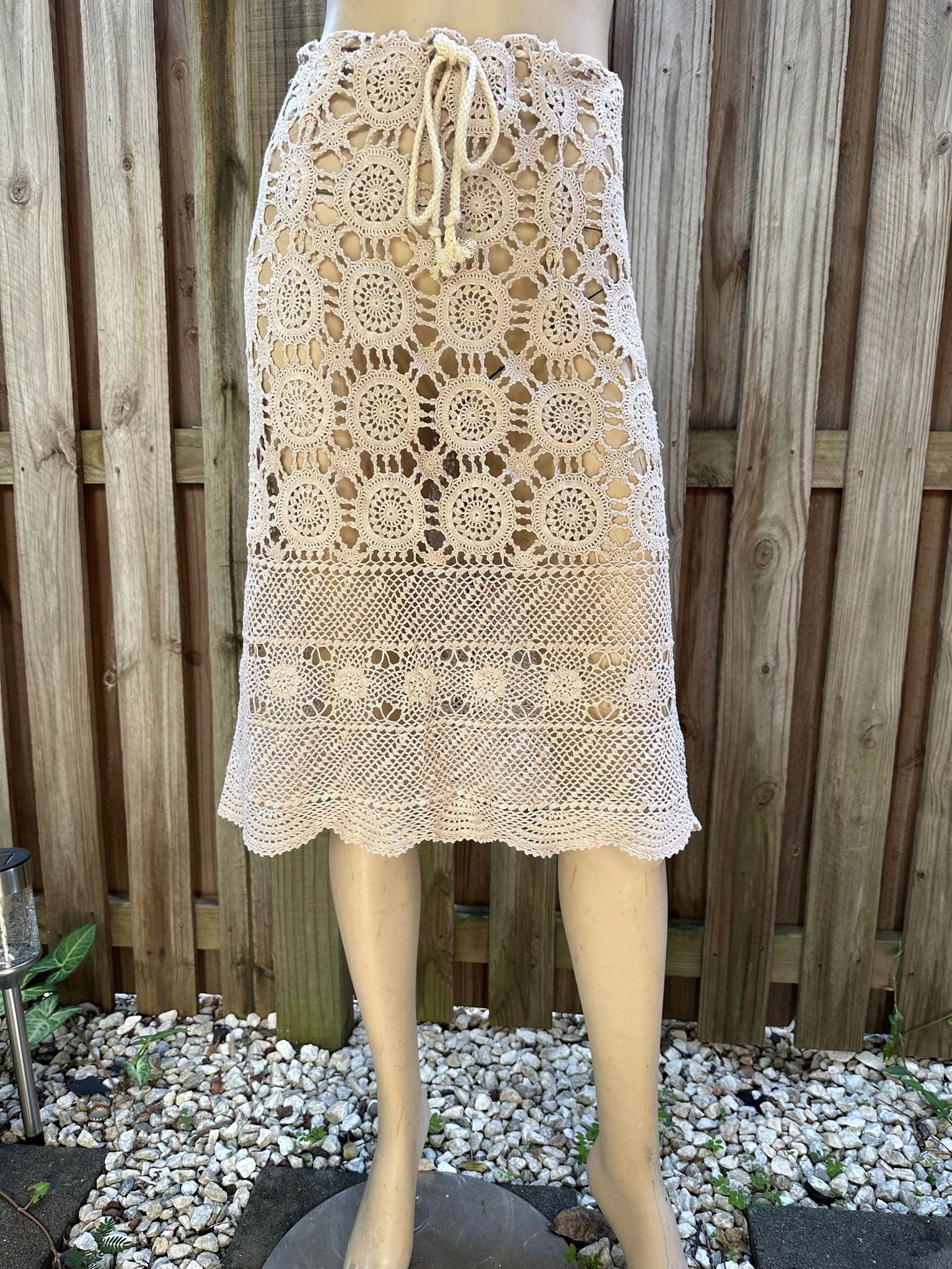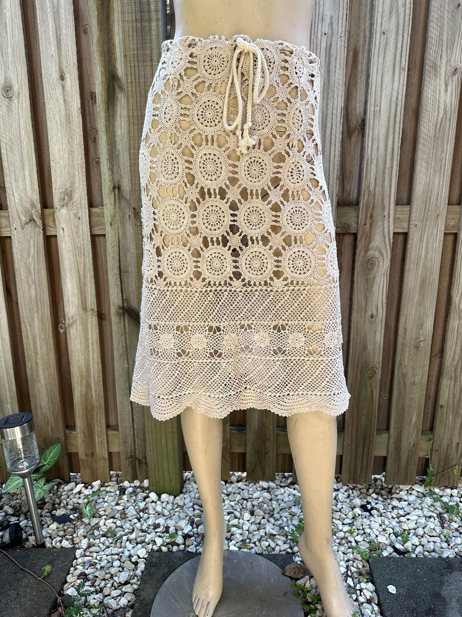 🎉 Last Day of 40% OFF Sale! The handmade pieces you added to your cart are still waiting for you 💕 Prices go back up tomorrow — don’t miss out! 🌸 handmade women skirt crochet vintage lace it was tablecloth lace beach boho skirt under the knees size 12-14 length at knee a little past knee