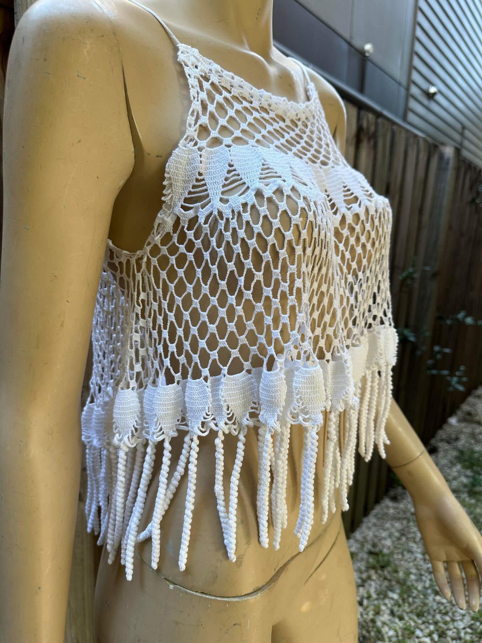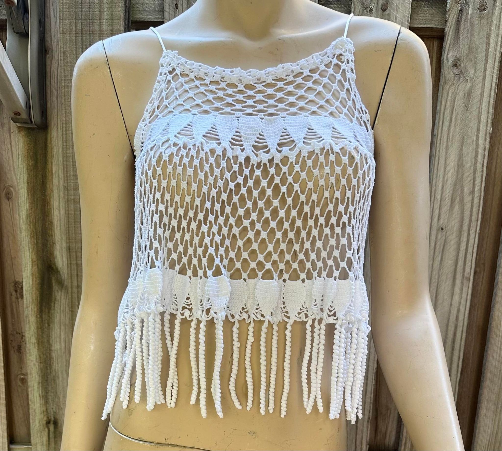 corochet crop top pattern handmade crochet lace top leaf top chive top hippie top frequent knitting neat and fine craftsmanship shoulder strap polyester women top wedding beach top unique top for gift for festival my model size is 6 the top size 10\12