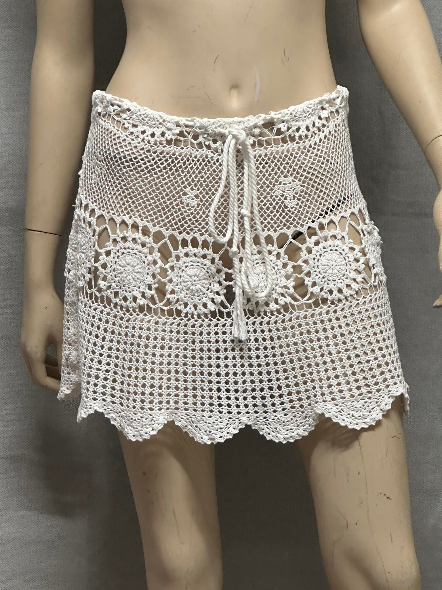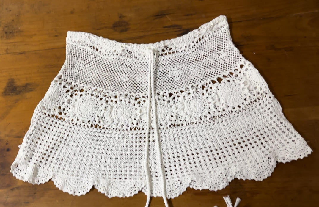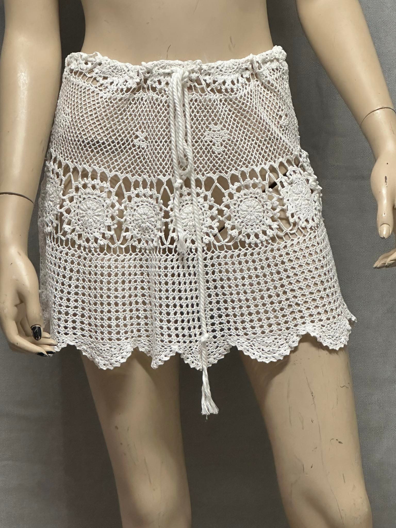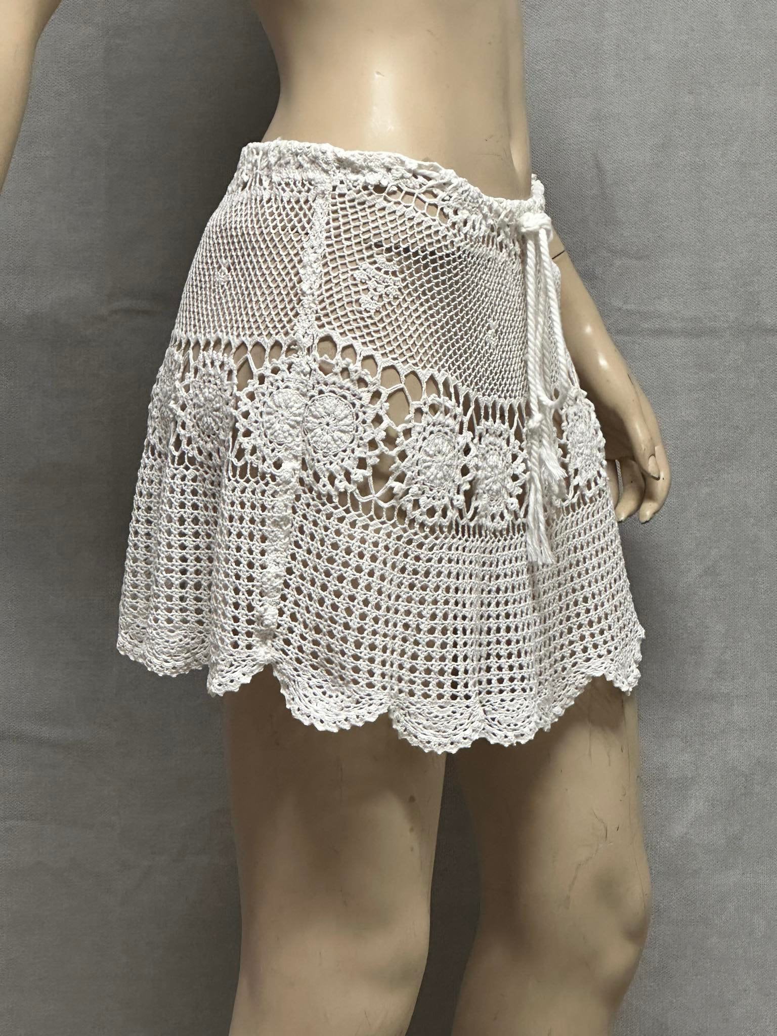 Bring timeless bohemian elegance to your summer wardrobe with this handmade crochet mini skirt. Crafted with intricate lace motifs and delicate openwork patterns, it’s perfect as a beach cover-up or festival outfit. The adjustable tie waist ensures a comfortable fit across multiple sizes. Wear it over swimwear, with a crop top, or layered with shorts for a stylish layered look. unlined skirt • Handmade crochet • Color: White / Natural • Adjustable tie waist • size 8-10 AU) • Great for beach, festivals, summer holidays