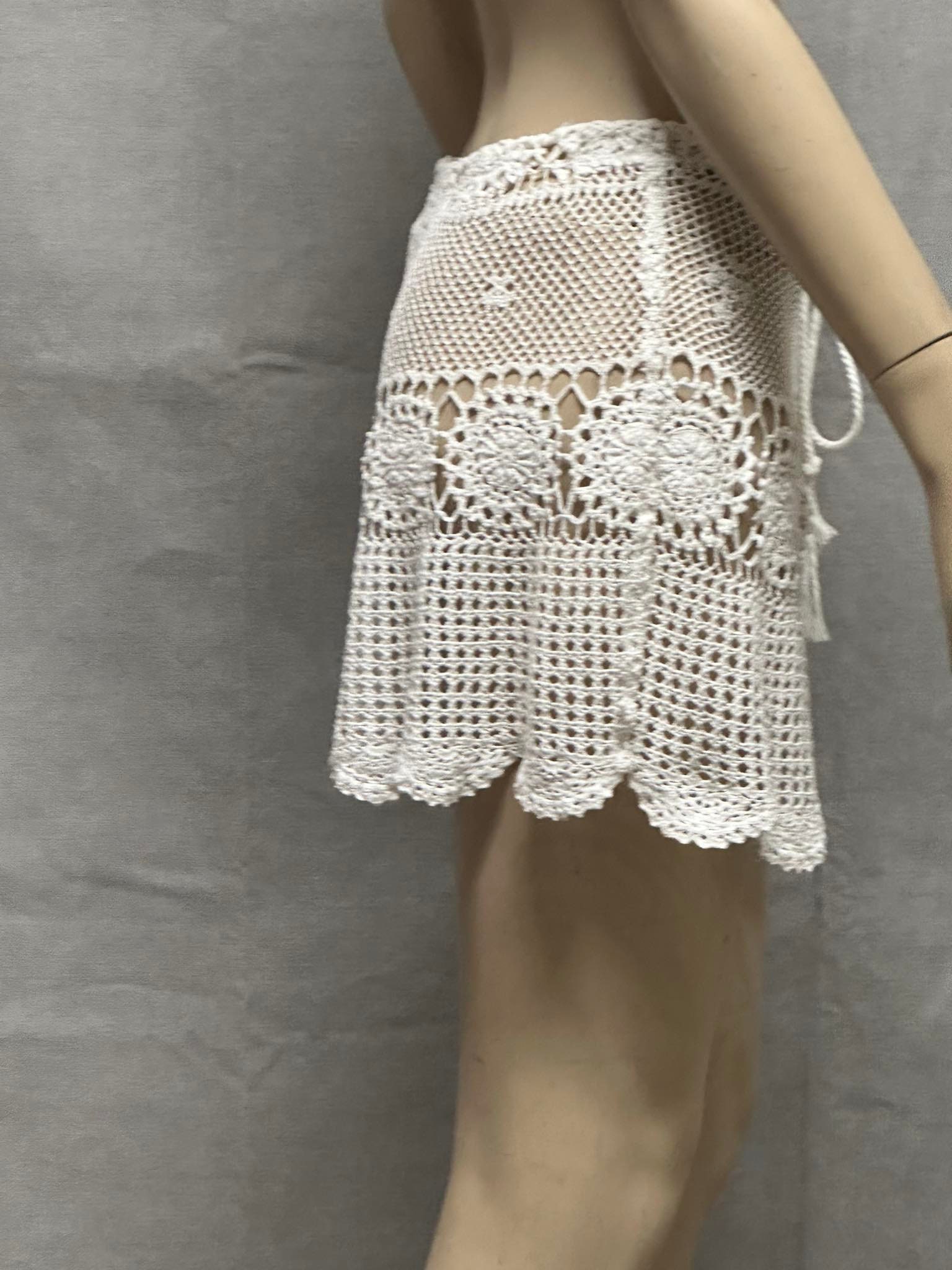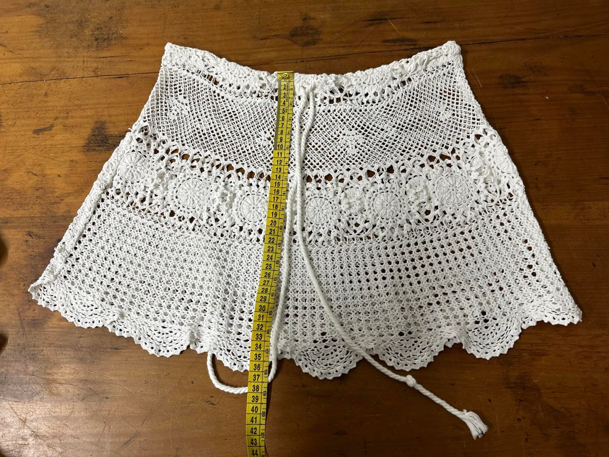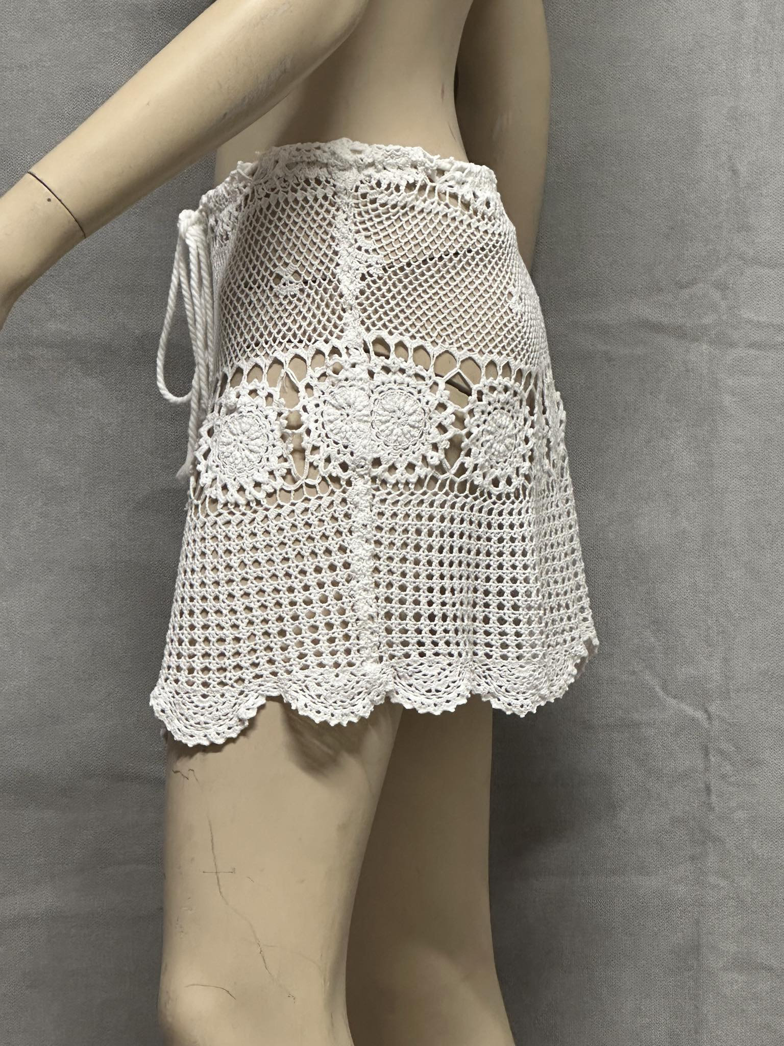 Bring timeless bohemian elegance to your summer wardrobe with this handmade crochet mini skirt. Crafted with intricate lace motifs and delicate openwork patterns, it’s perfect as a beach cover-up or festival outfit. The adjustable tie waist ensures a comfortable fit across multiple sizes. Wear it over swimwear, with a crop top, or layered with shorts for a stylish layered look. unlined skirt • Handmade crochet • Color: White / Natural • Adjustable tie waist • size 8-10 AU) • Great for beach, festivals, summer holidays