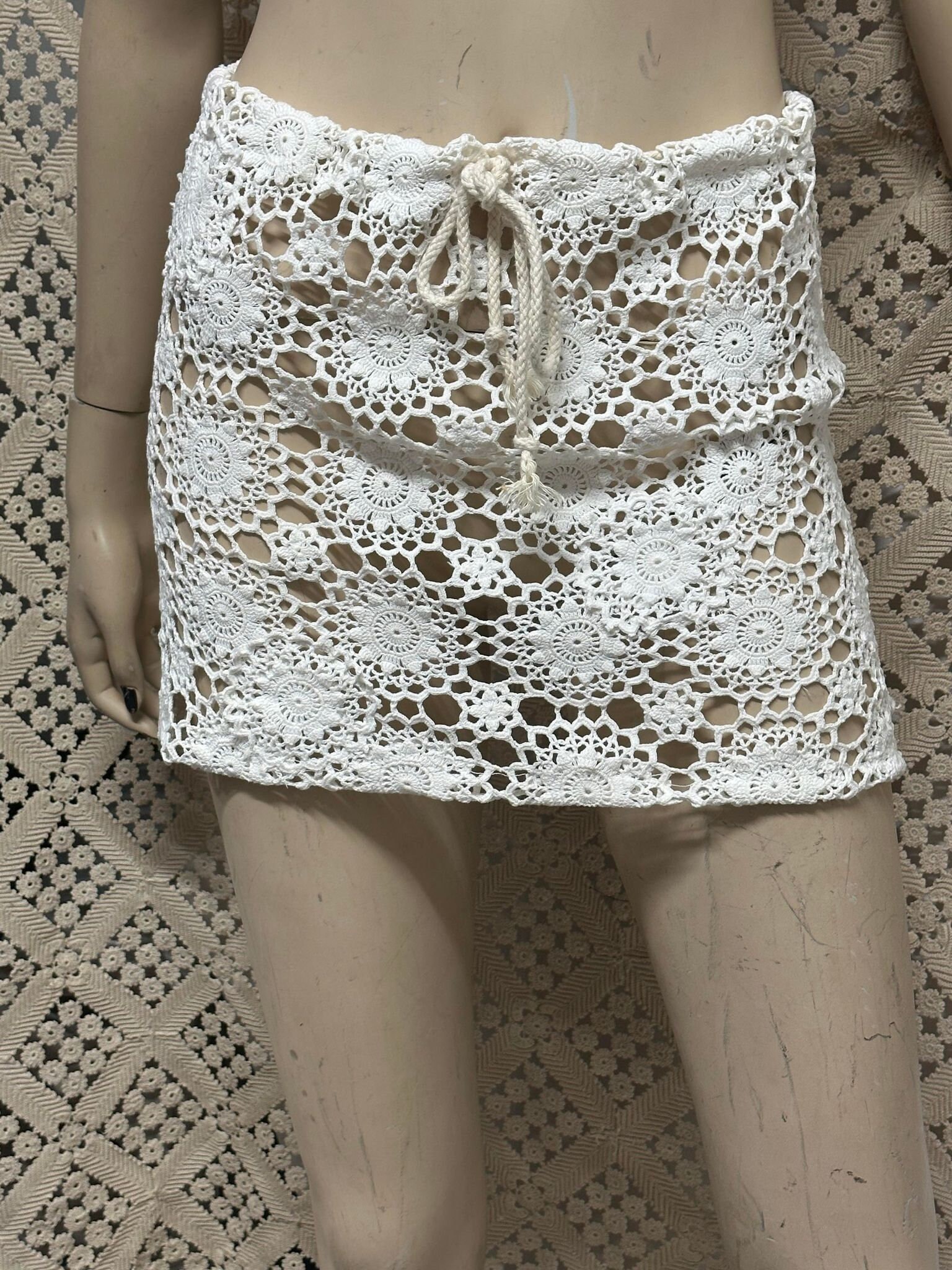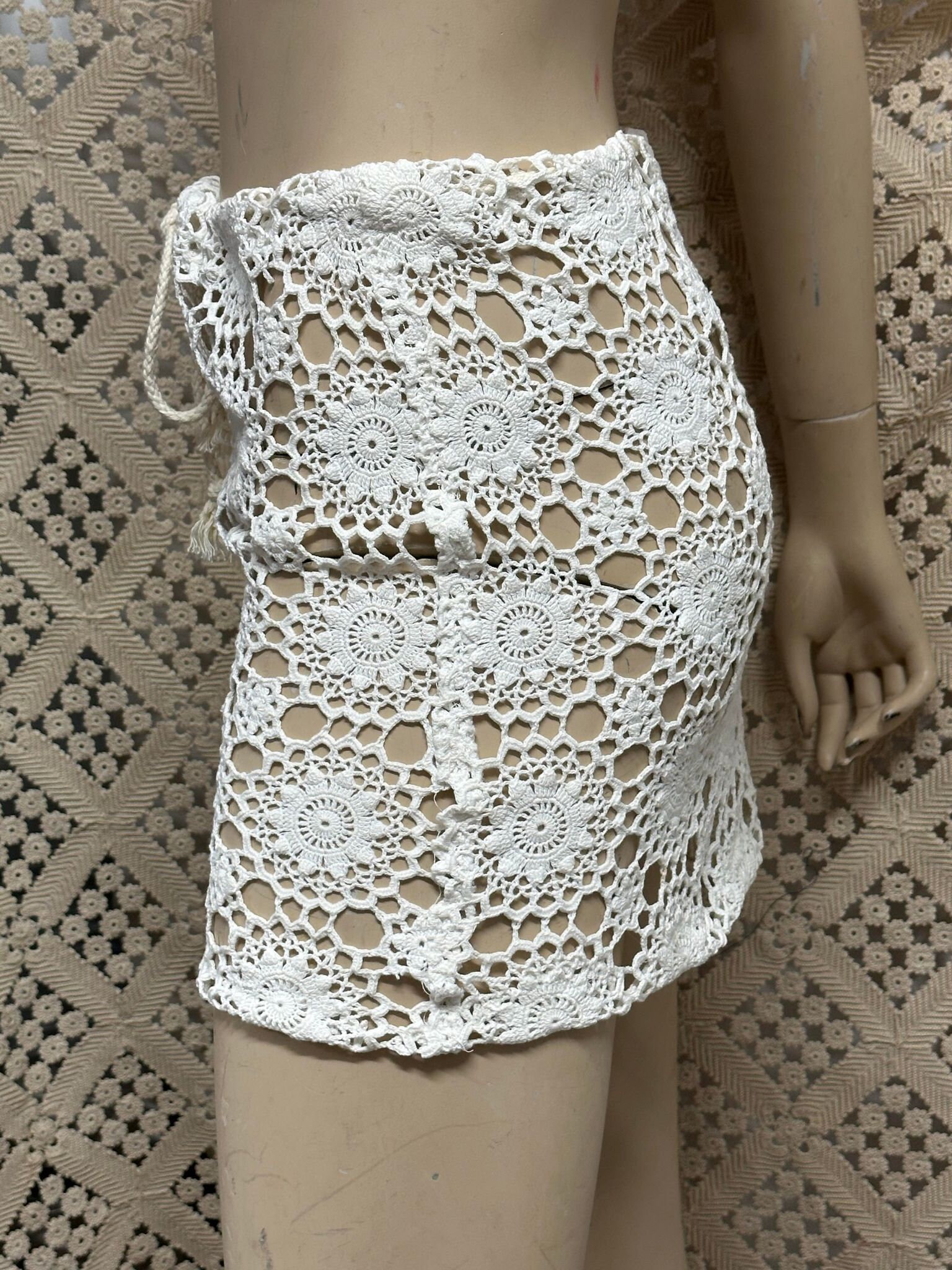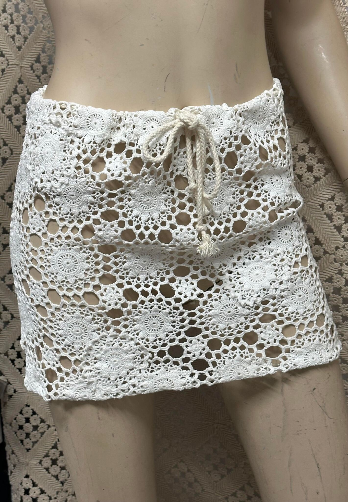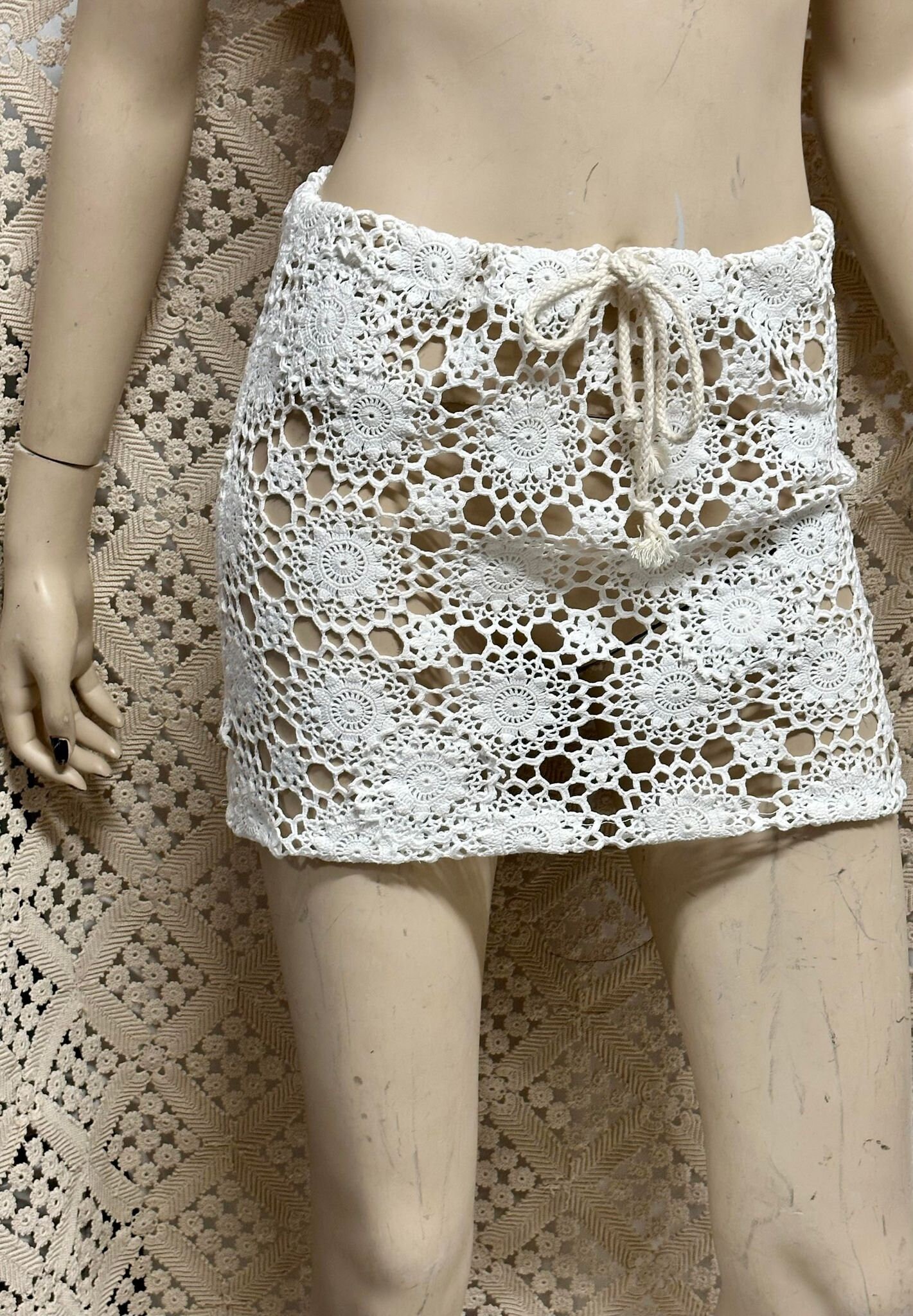 for those who want to be noticed unique skirt beach cover up Crochet Mini skirt Crochet cover up skirt for summer beach skirt cotton skirt Holiday skirt festival skirt adjustable waist skirt authentic belt white skirt for women white patched skirt table lace Vintage lace skirt size XS \S length 33cm