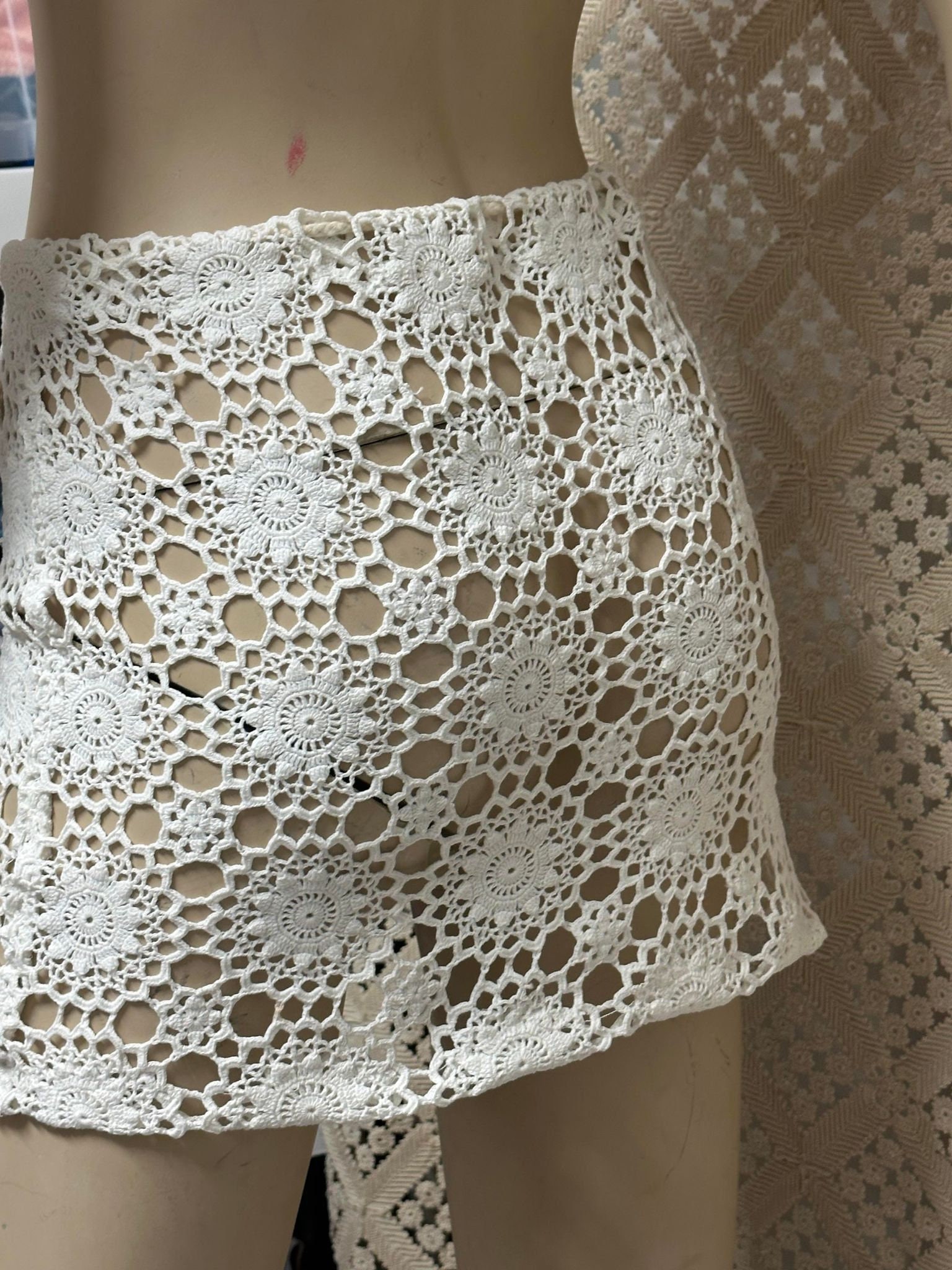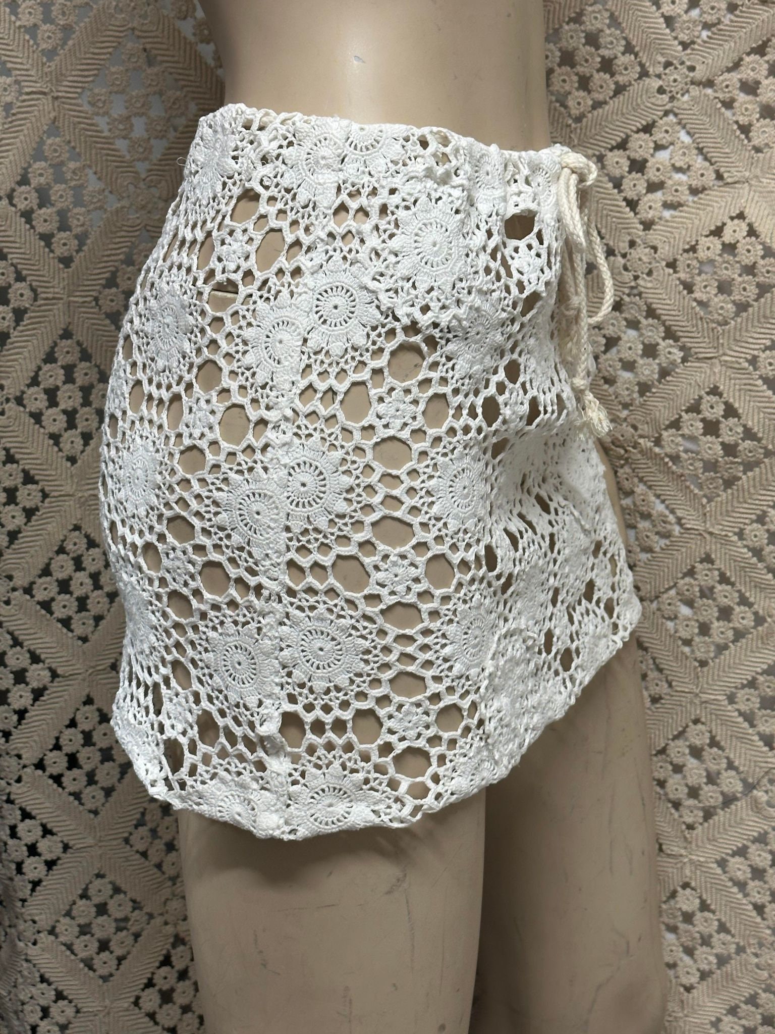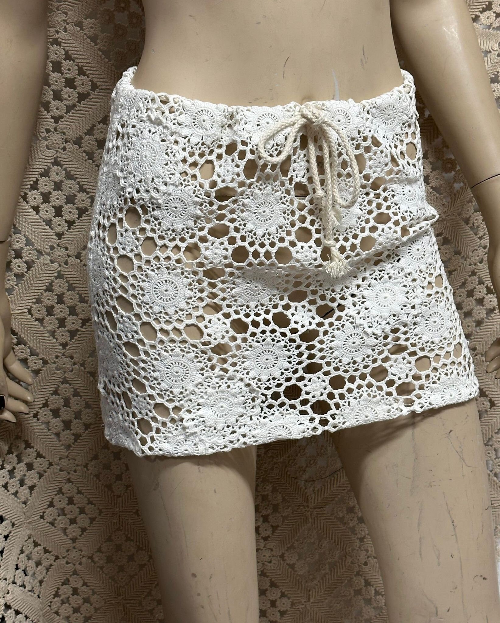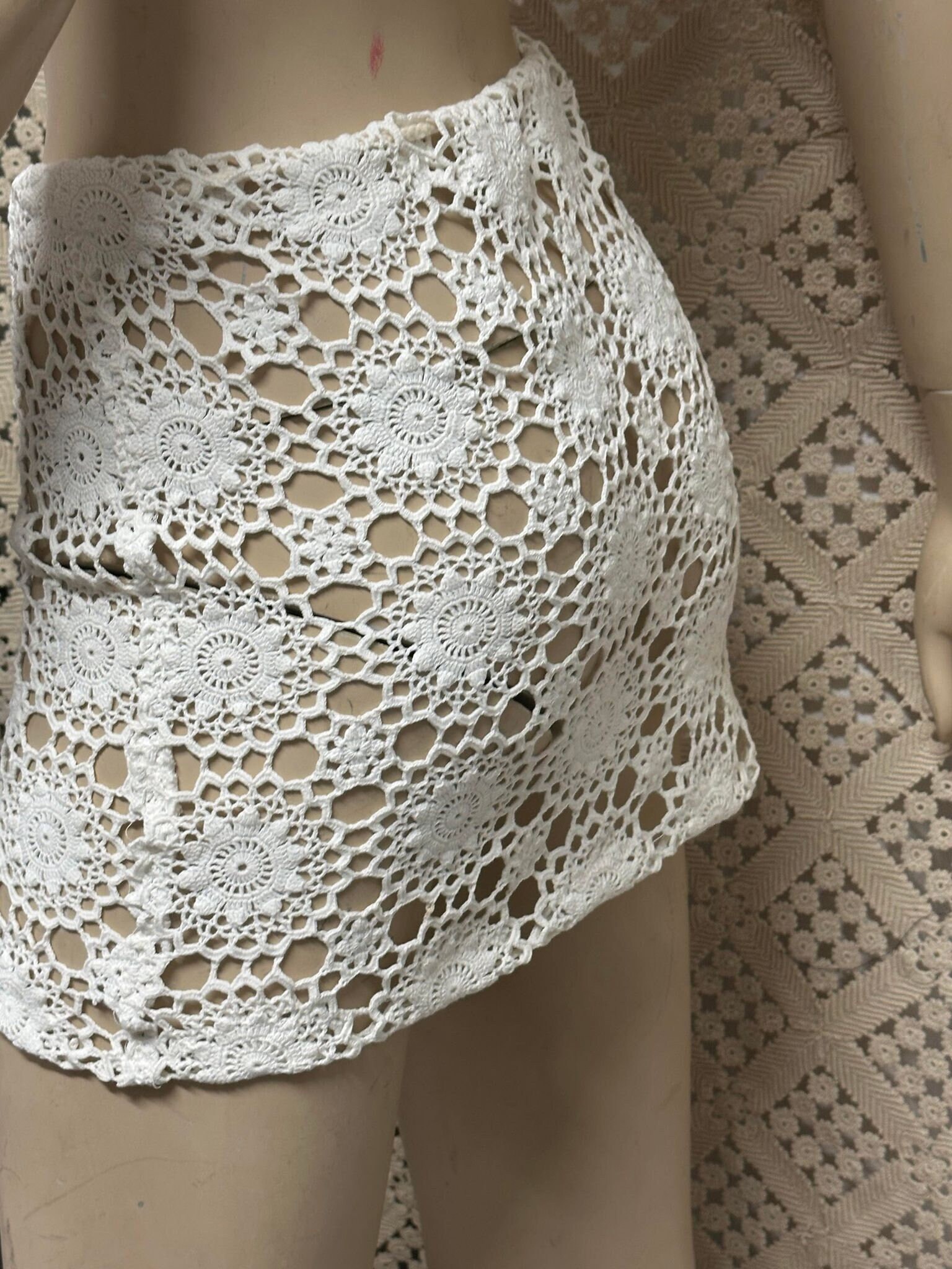 for those who want to be noticed unique skirt beach cover up Crochet Mini skirt Crochet cover up skirt for summer beach skirt cotton skirt Holiday skirt festival skirt adjustable waist skirt authentic belt white skirt for women white patched skirt table lace Vintage lace skirt size XS \S length 33cm