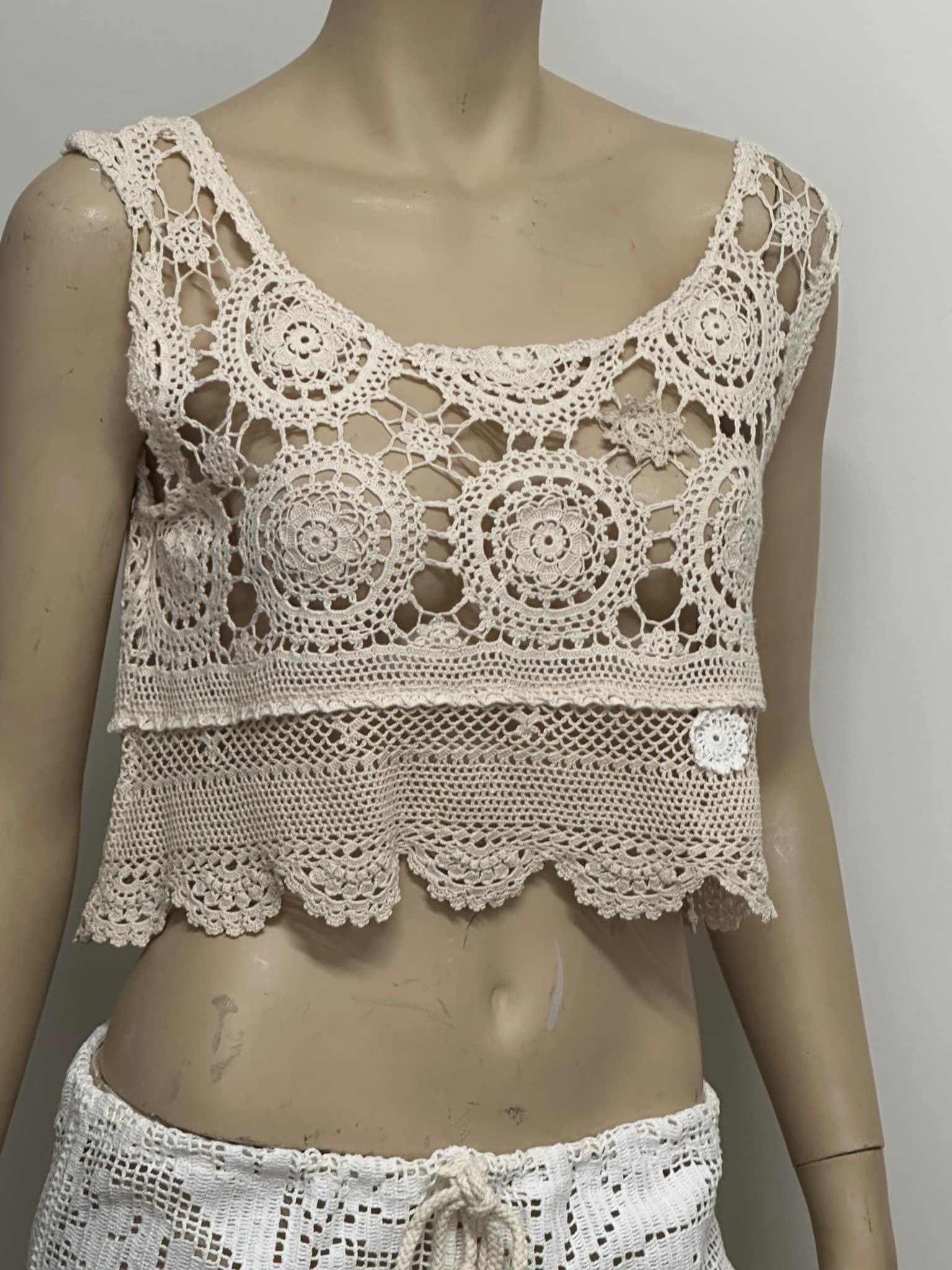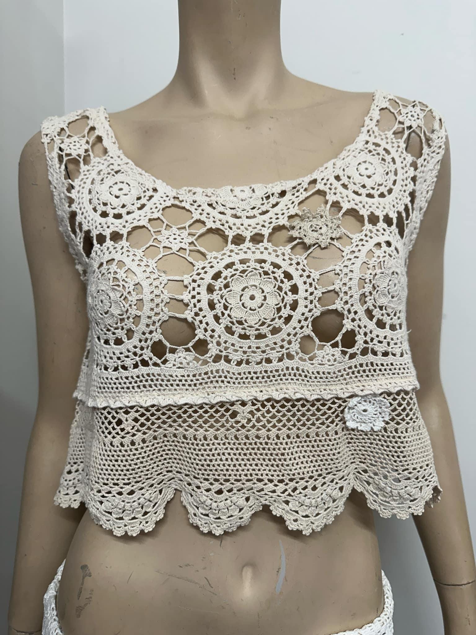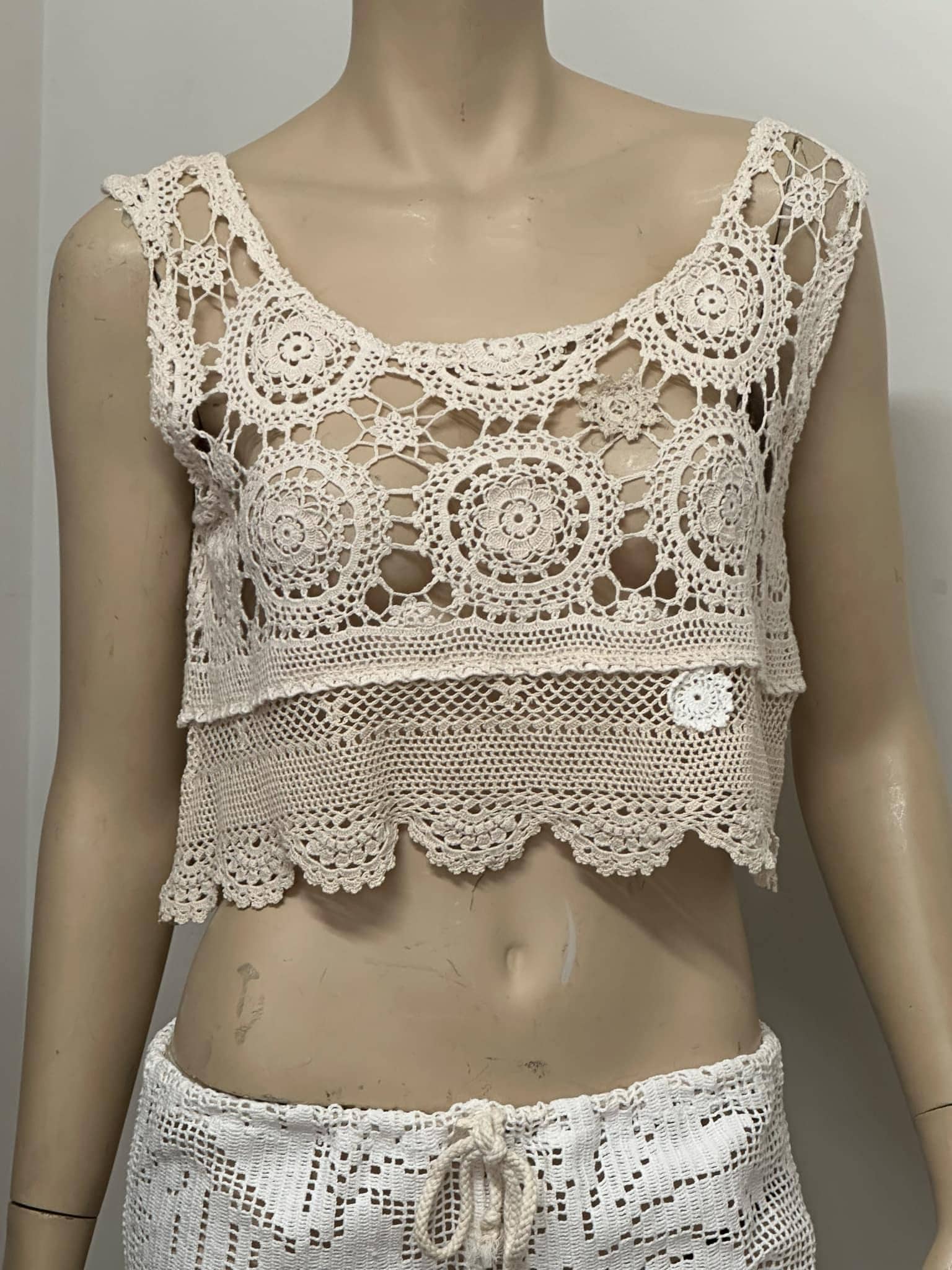 I design and sew these very beautiful and valuable laces myself. I recommend not to miss this top which fits the trend of the year and is the only piece of its kind. It could be a Great option for festivals, and also as a gift option as it is a very special piece and handmade. color beige cotton crochet lace cotton crop top the size on mannequin is XS-S(size 6-8) and there's crochet lace top summer women beach top wedding beach top holiday beautiful