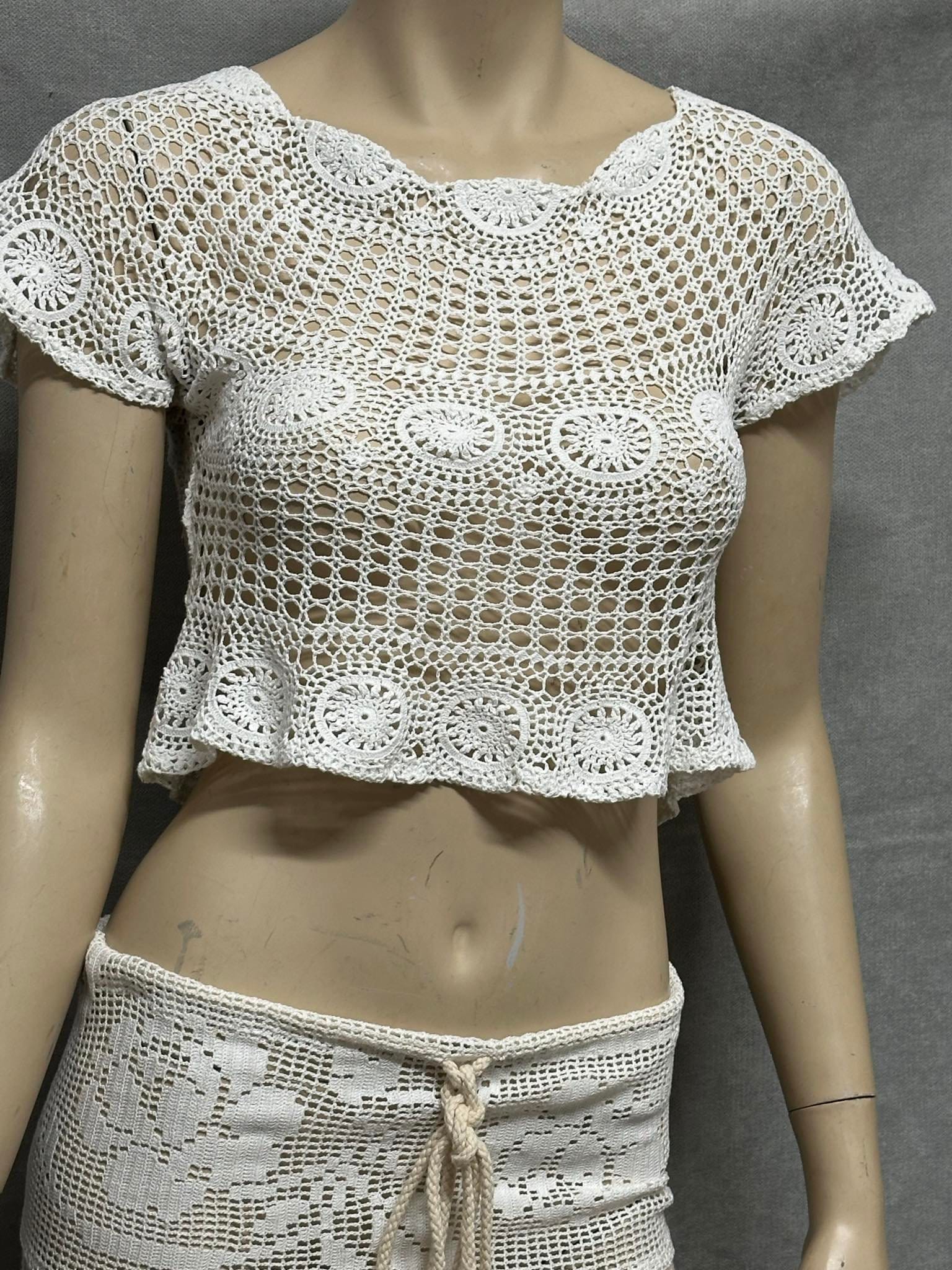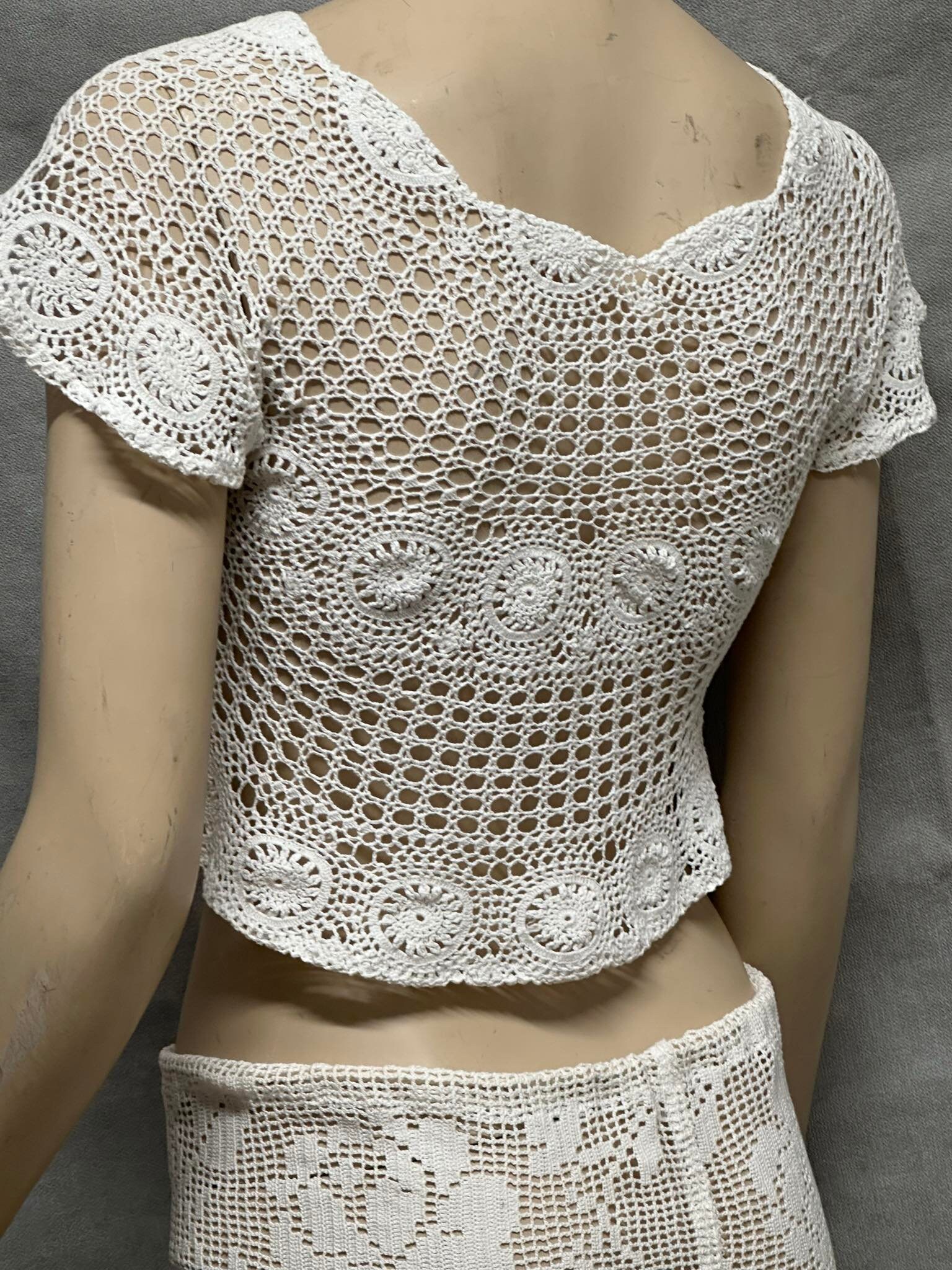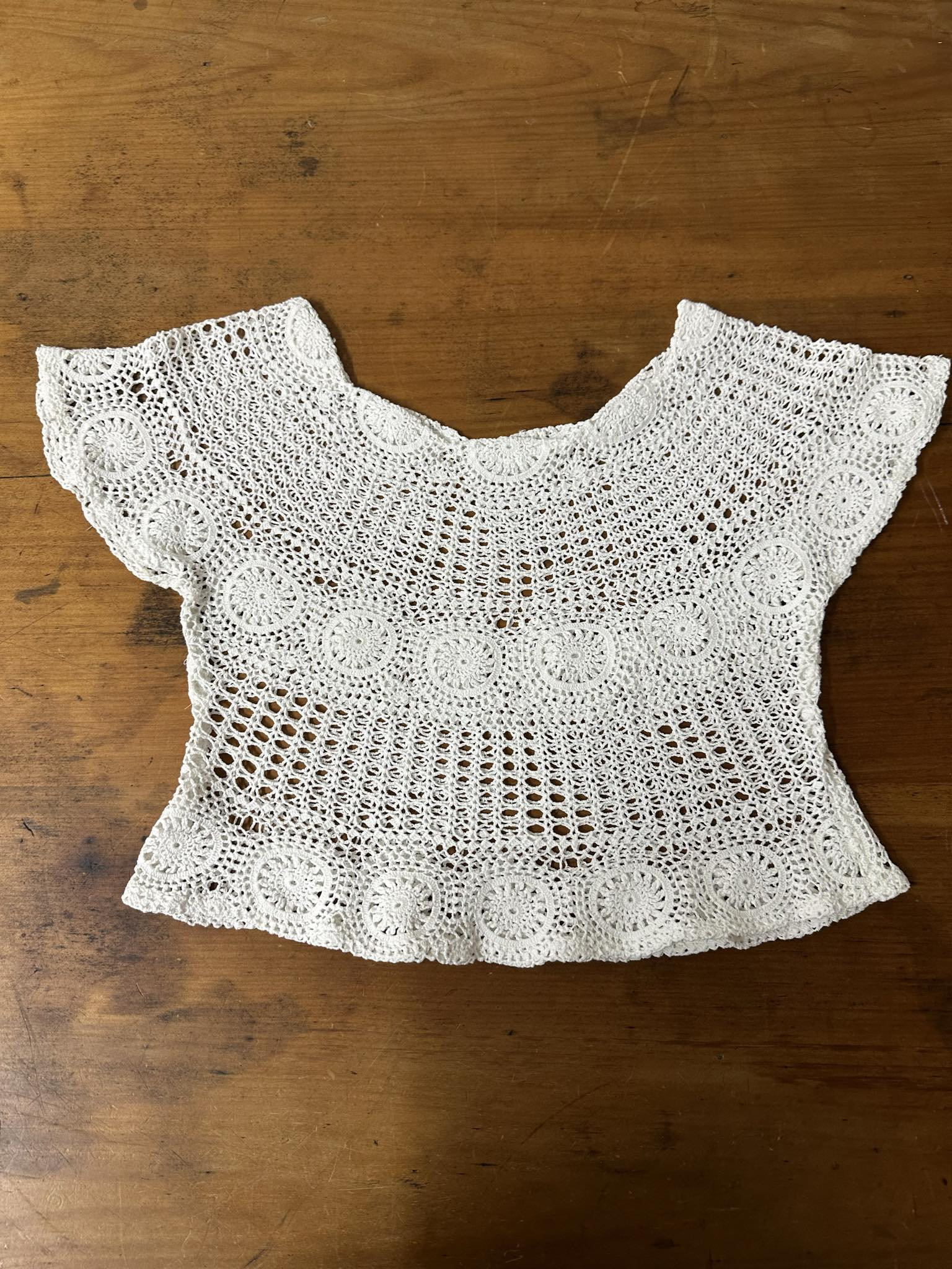 This airy crochet crop top is handcrafted from beautifully preserved vintage doilies. With a unique circular motif and a breezy, open-knit design, it’s perfect for summer layering, beach styling, or music festivals. Each piece is one-of-a-kind, repurposed with love and care.