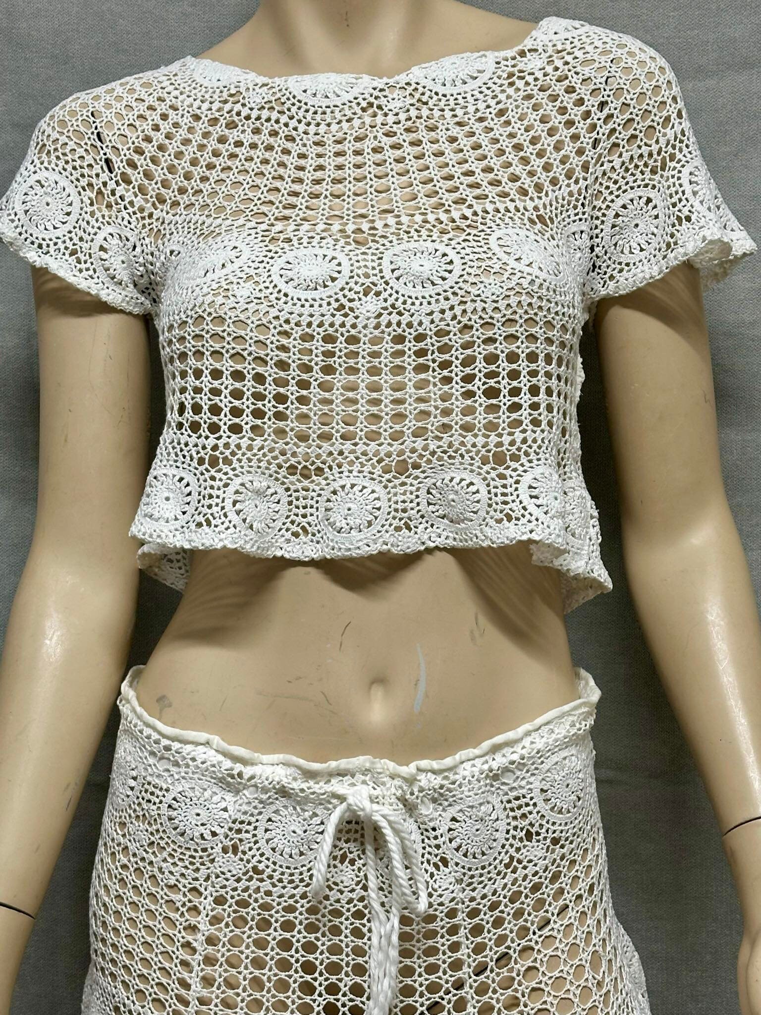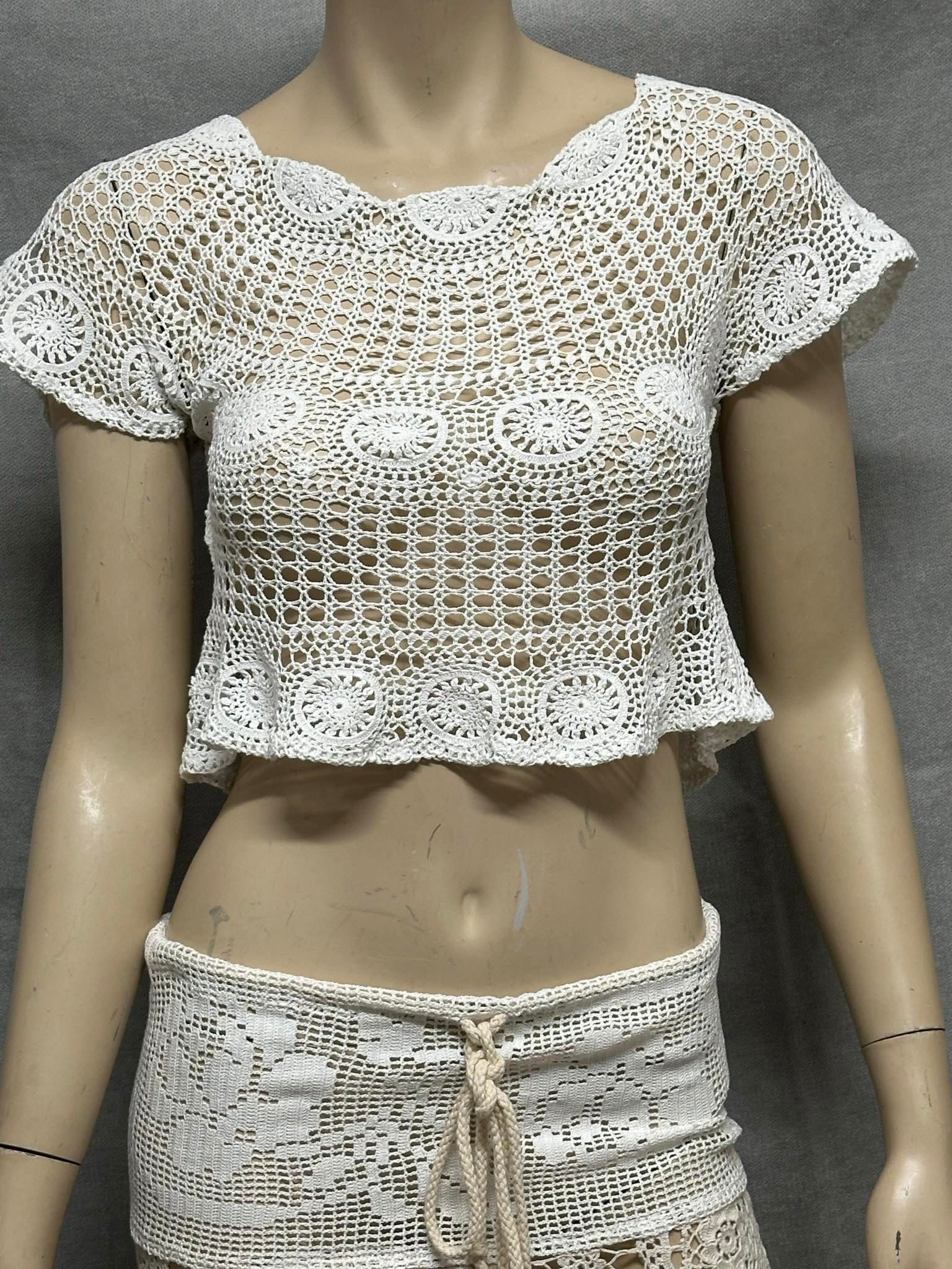 🌸 Material: Upcycled cotton crochet lace 🎨 Color: Natural white 👚 Size: Best fits AU 6-XS (elastic, adjustable feel) 🌿 Eco-conscious & handmade in Australia 🚚 Free shipping within Australia