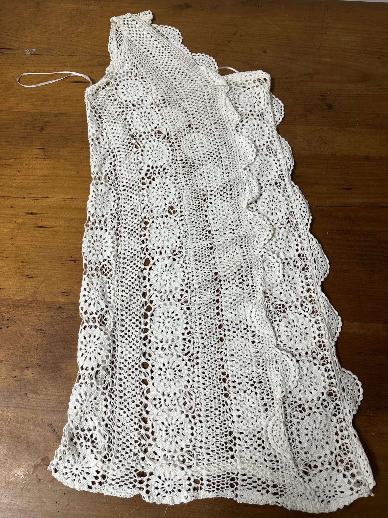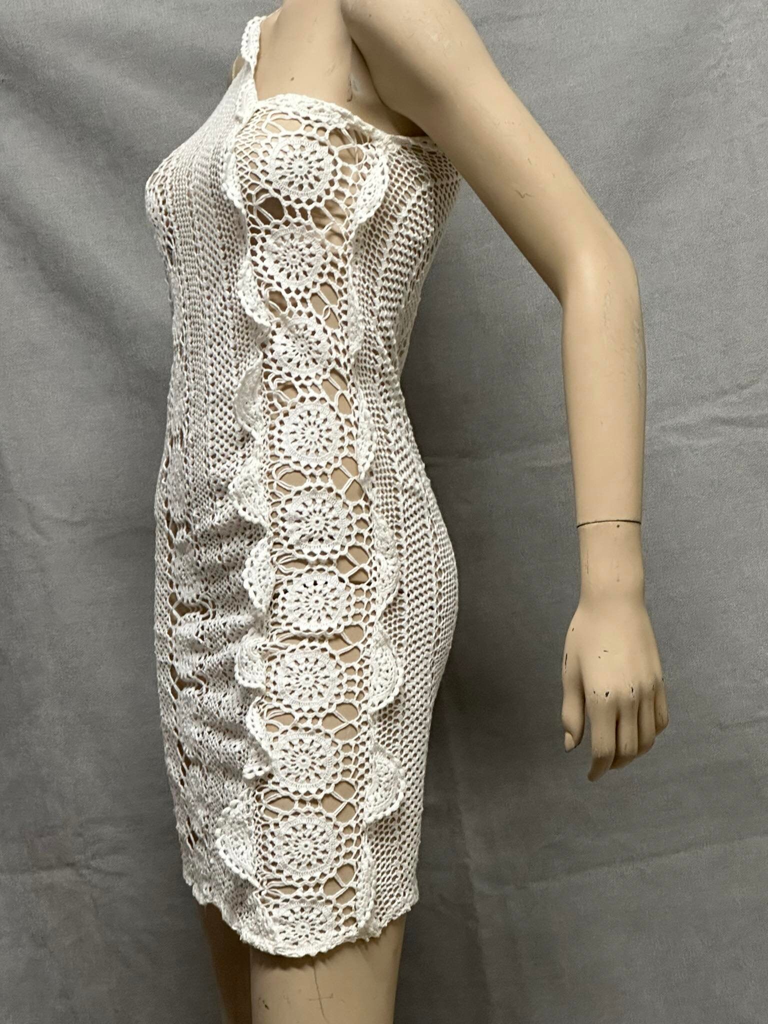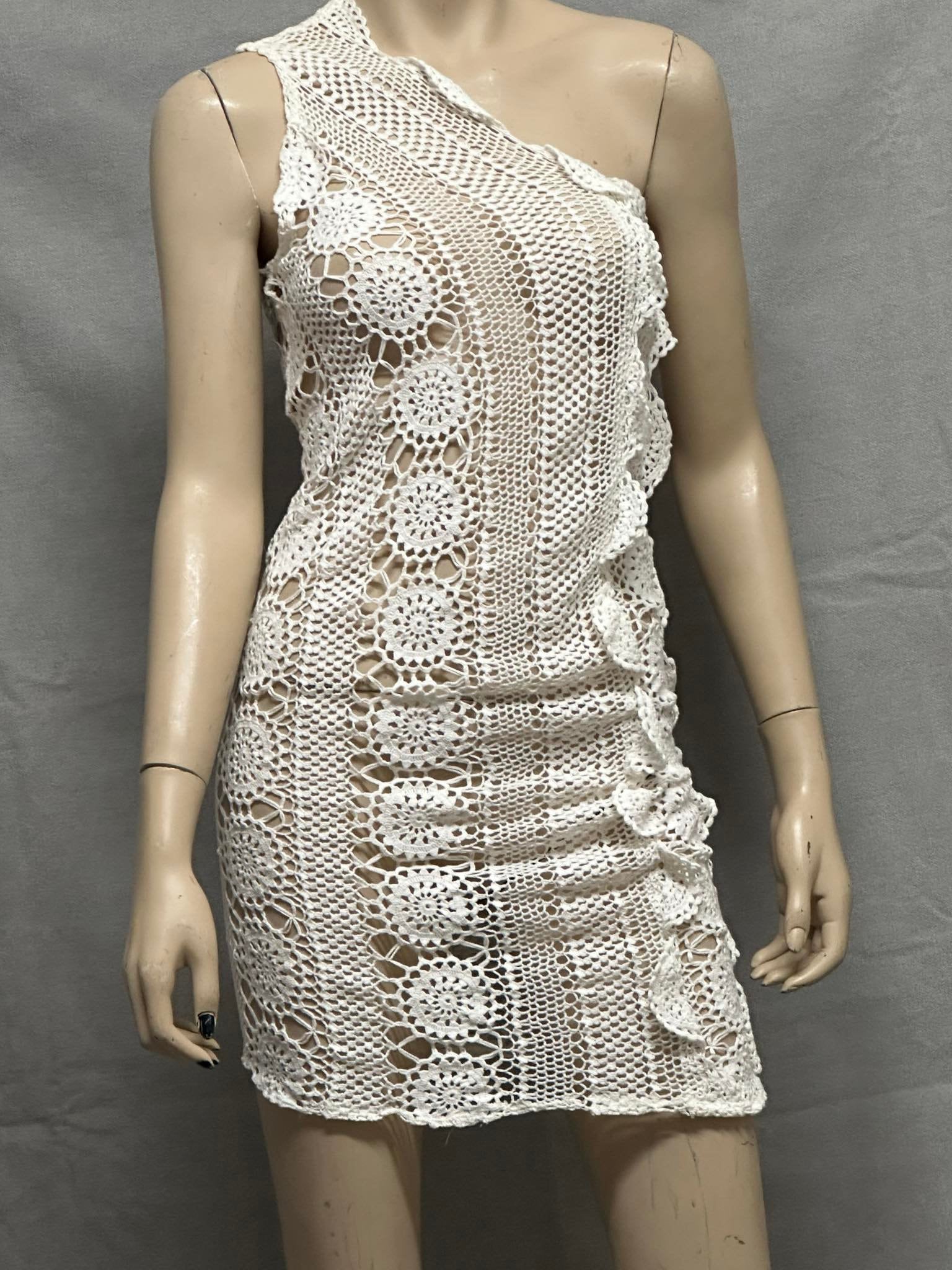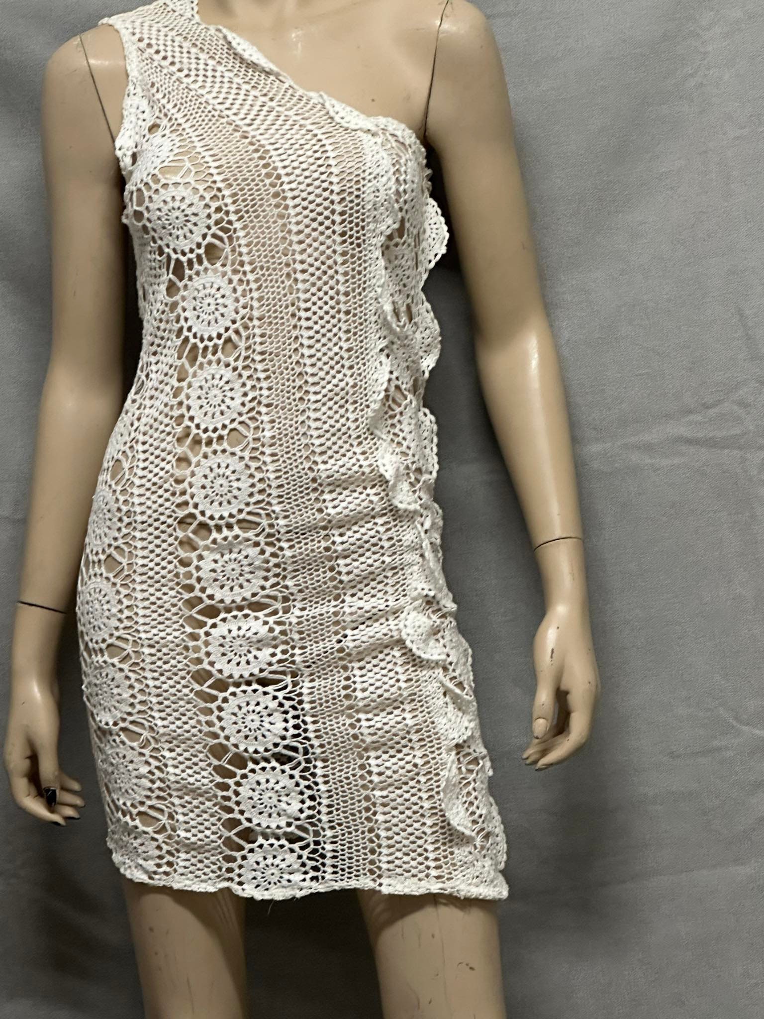 Slide into effortless boho glamour—add to cart now and make waves in this unique one-shoulder crochet dress! 🌊✨ size S \8-10