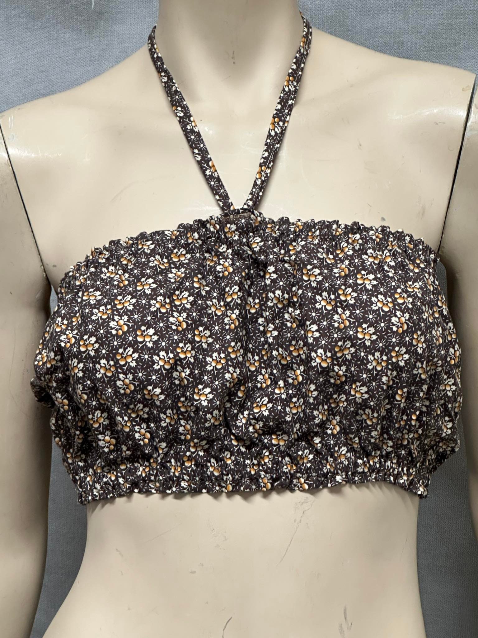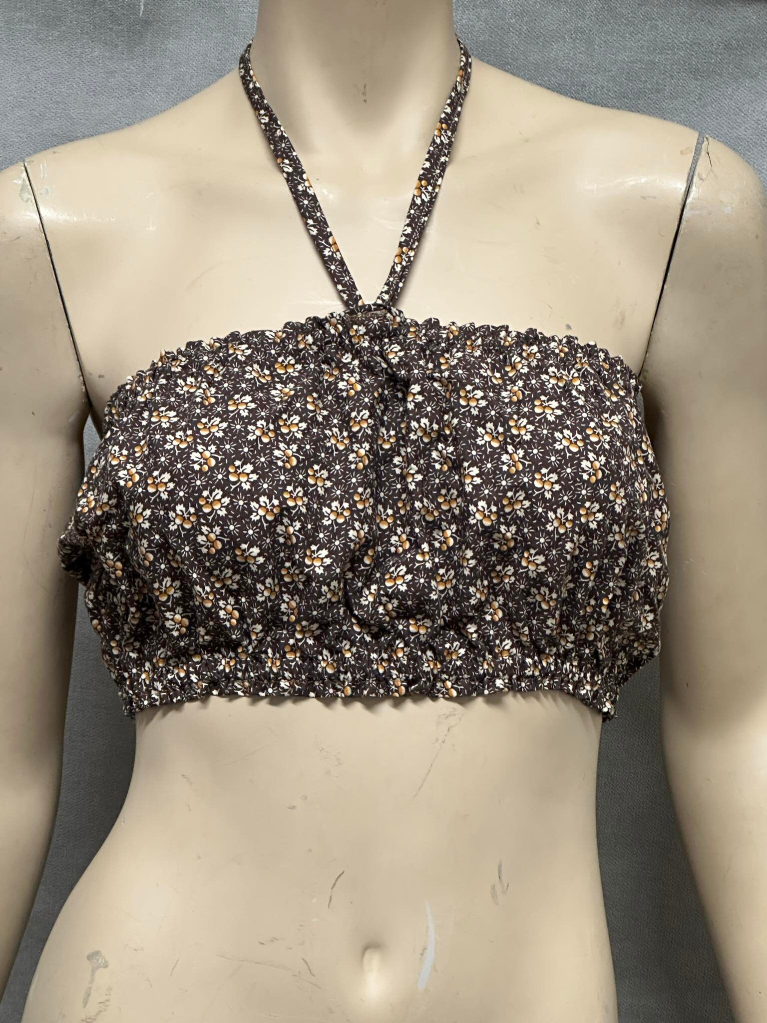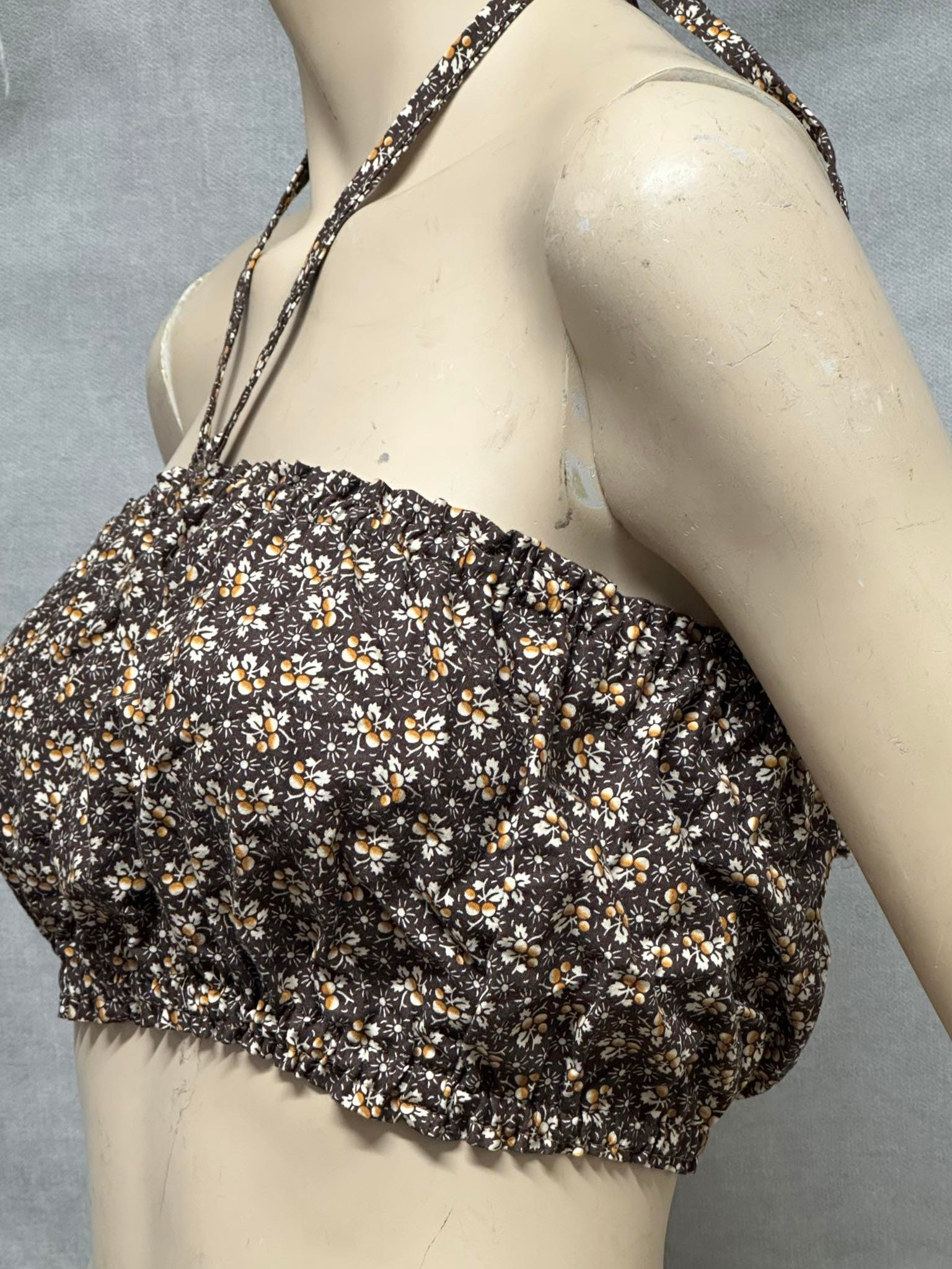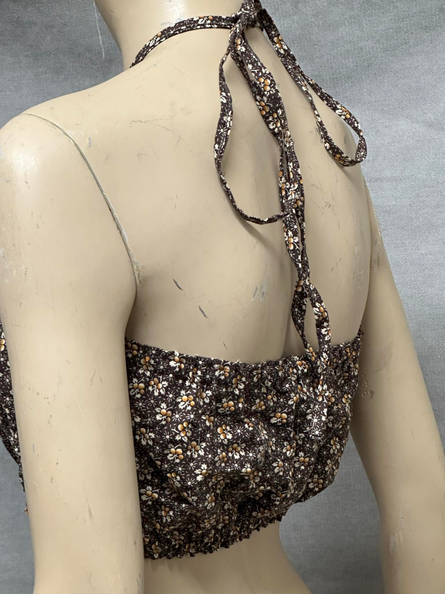 women crop top tup top halter top flower top cotton top elastic top brown color top strap top. i make them at home on garage