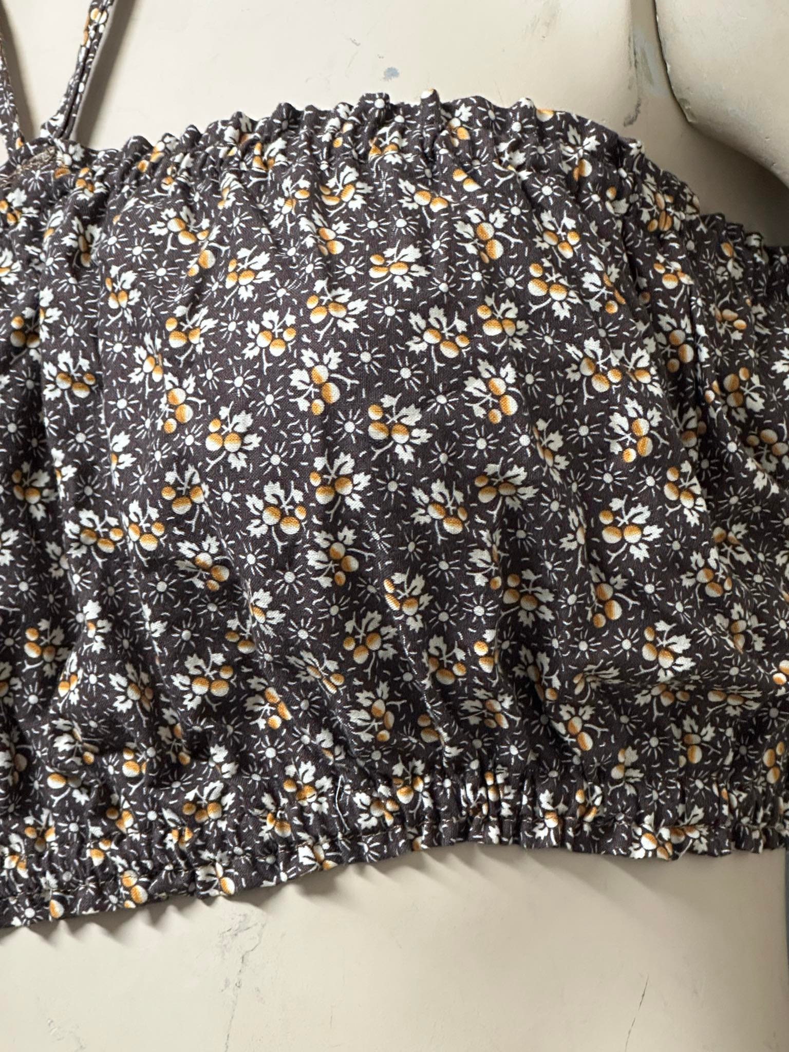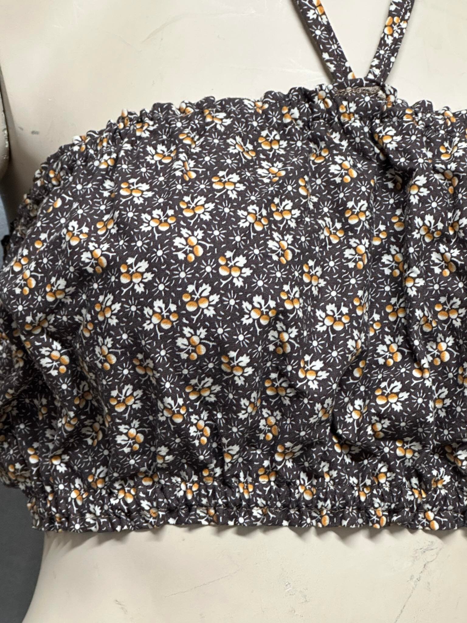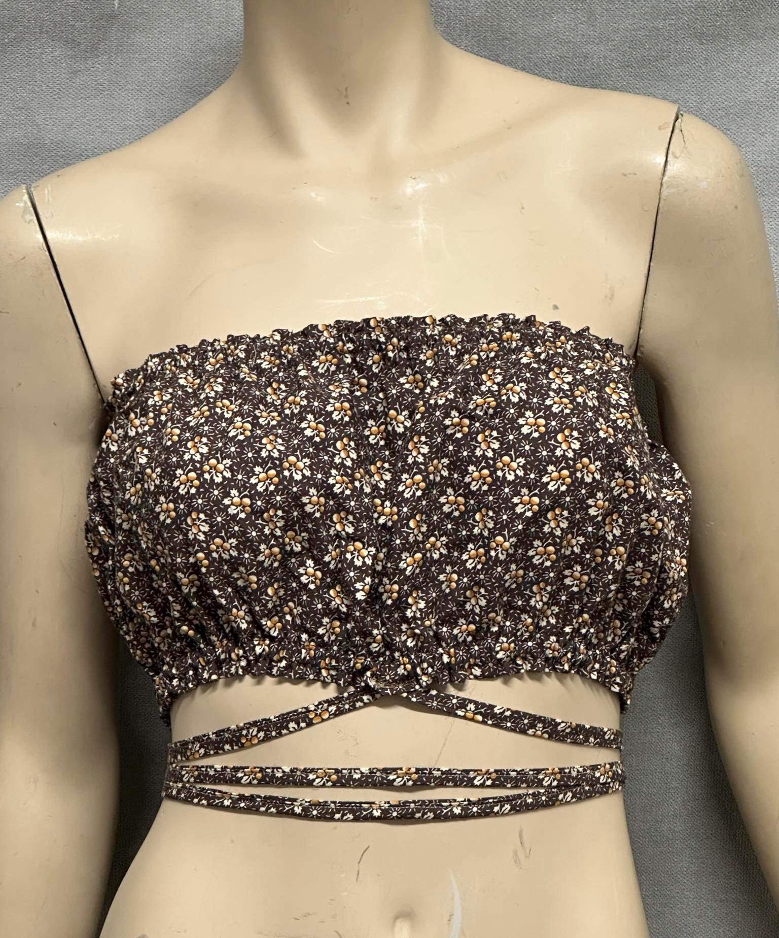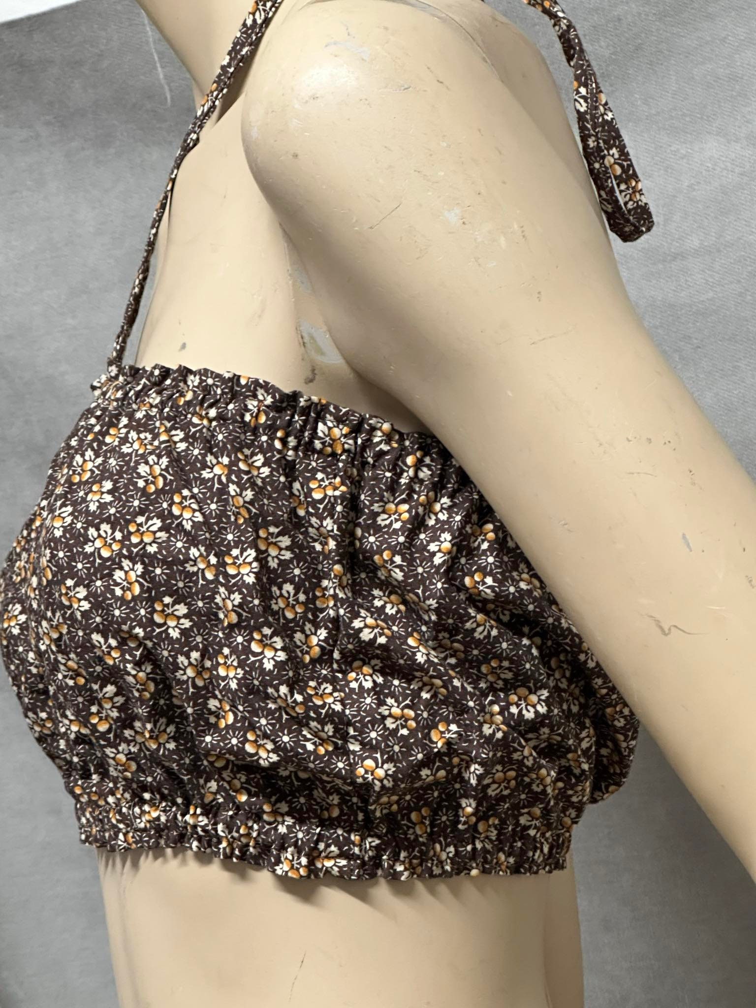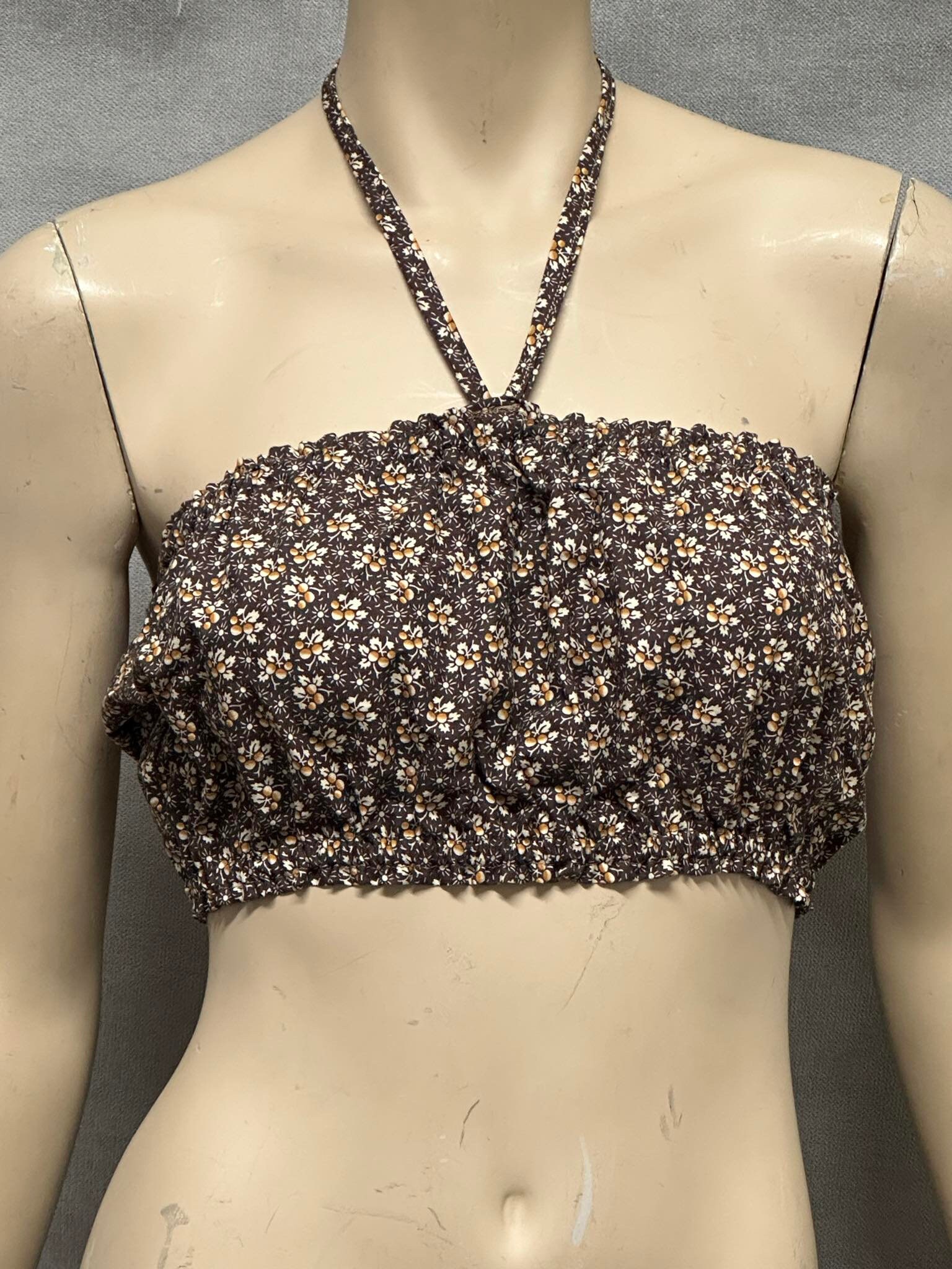 women crop top tup top halter top flower top cotton top elastic top brown color top strap top. i make them at home on garage