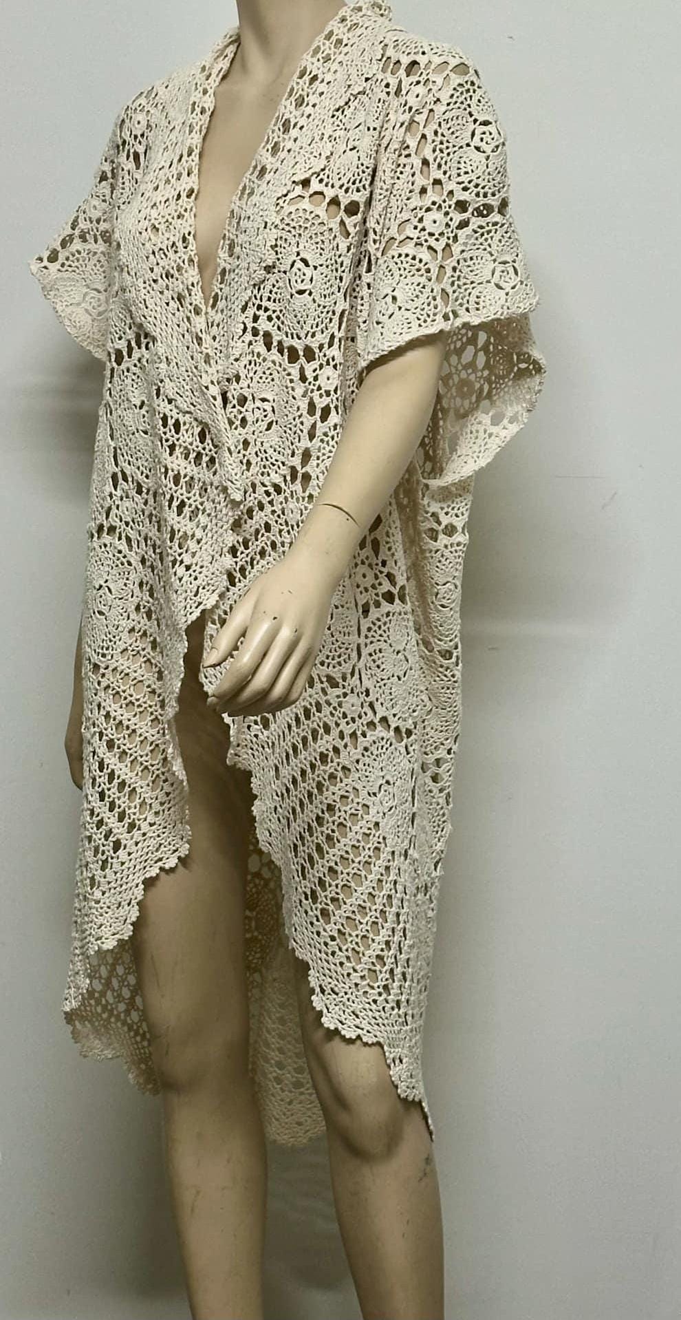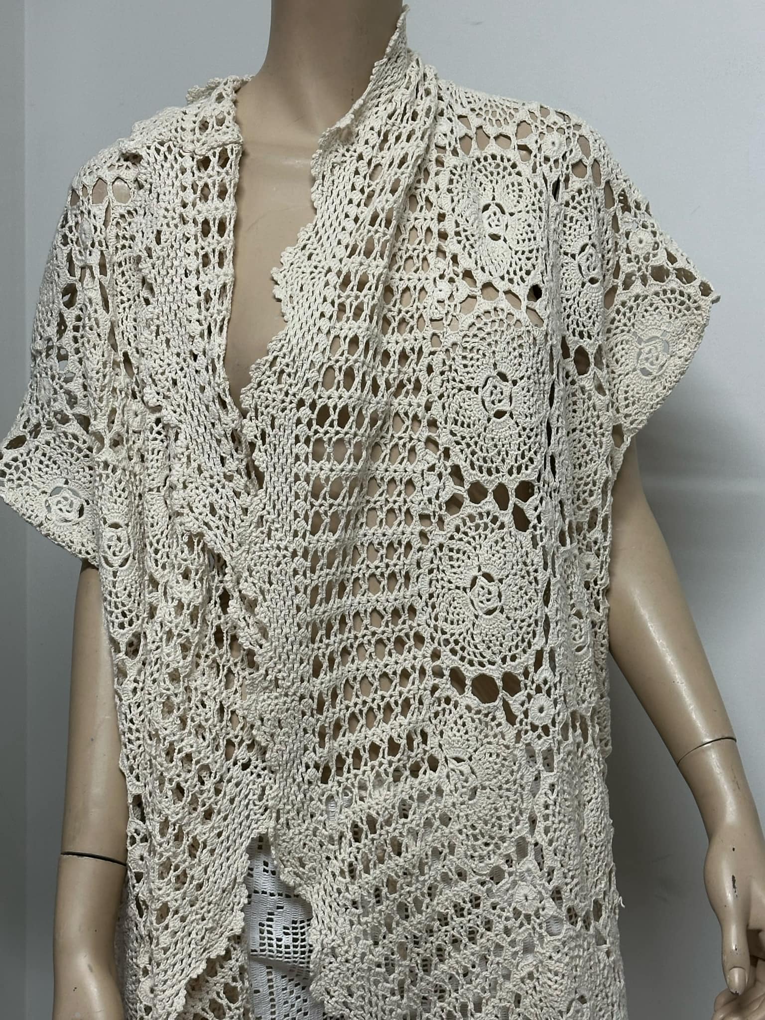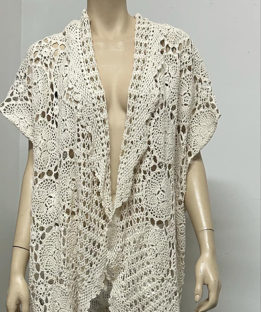 This handmade crochet cardigan is the perfect balance of elegance and comfort. Whether you're heading to the beach or meeting friends in the city, this lightweight lace duster adds effortless boho charm to any outfit. Made from soft cotton yarn, it's breathable, flowy, and ideal for layering in spring and summer.