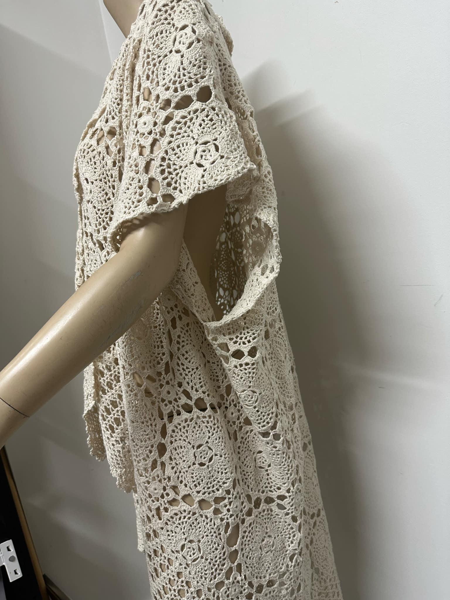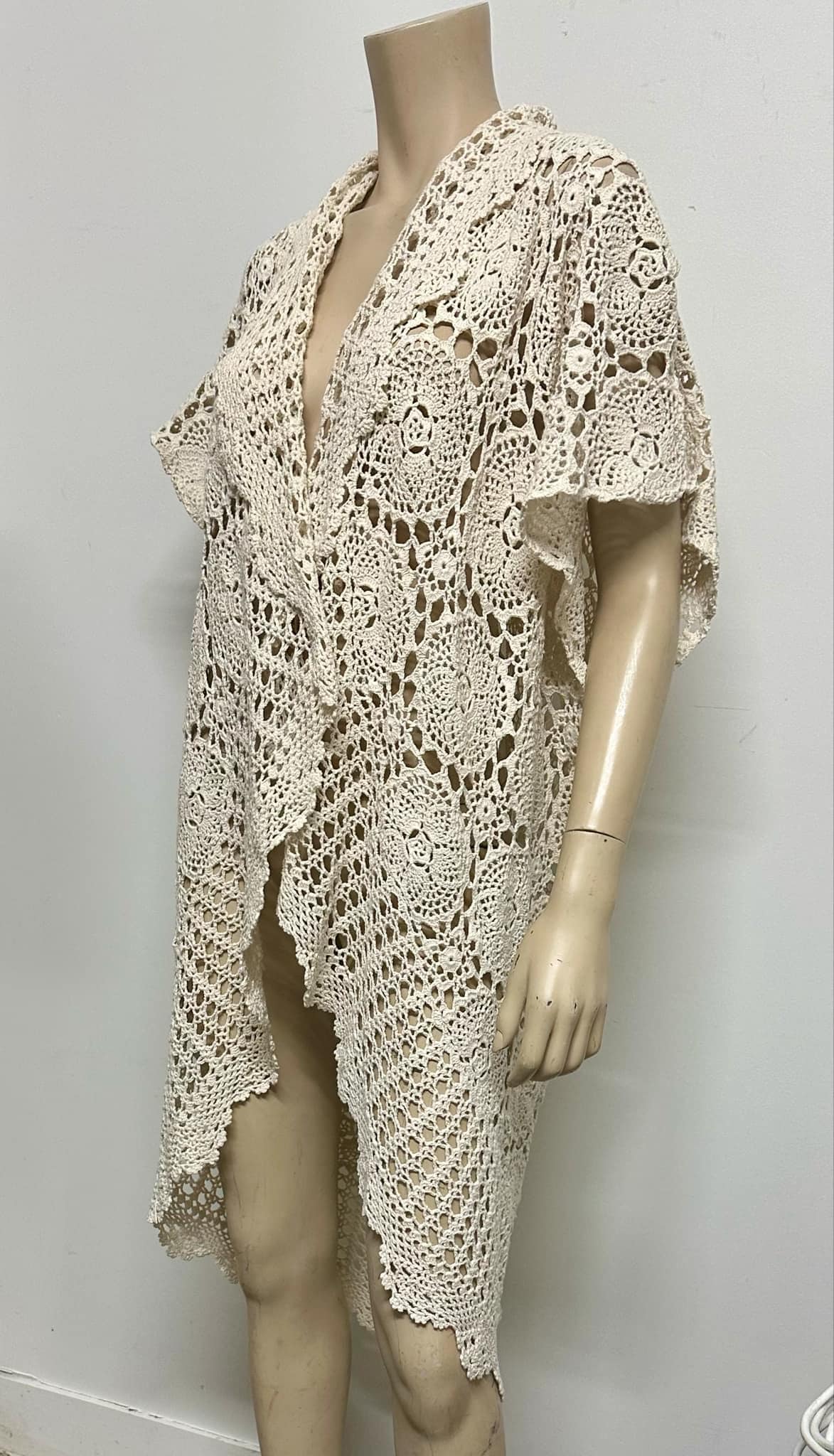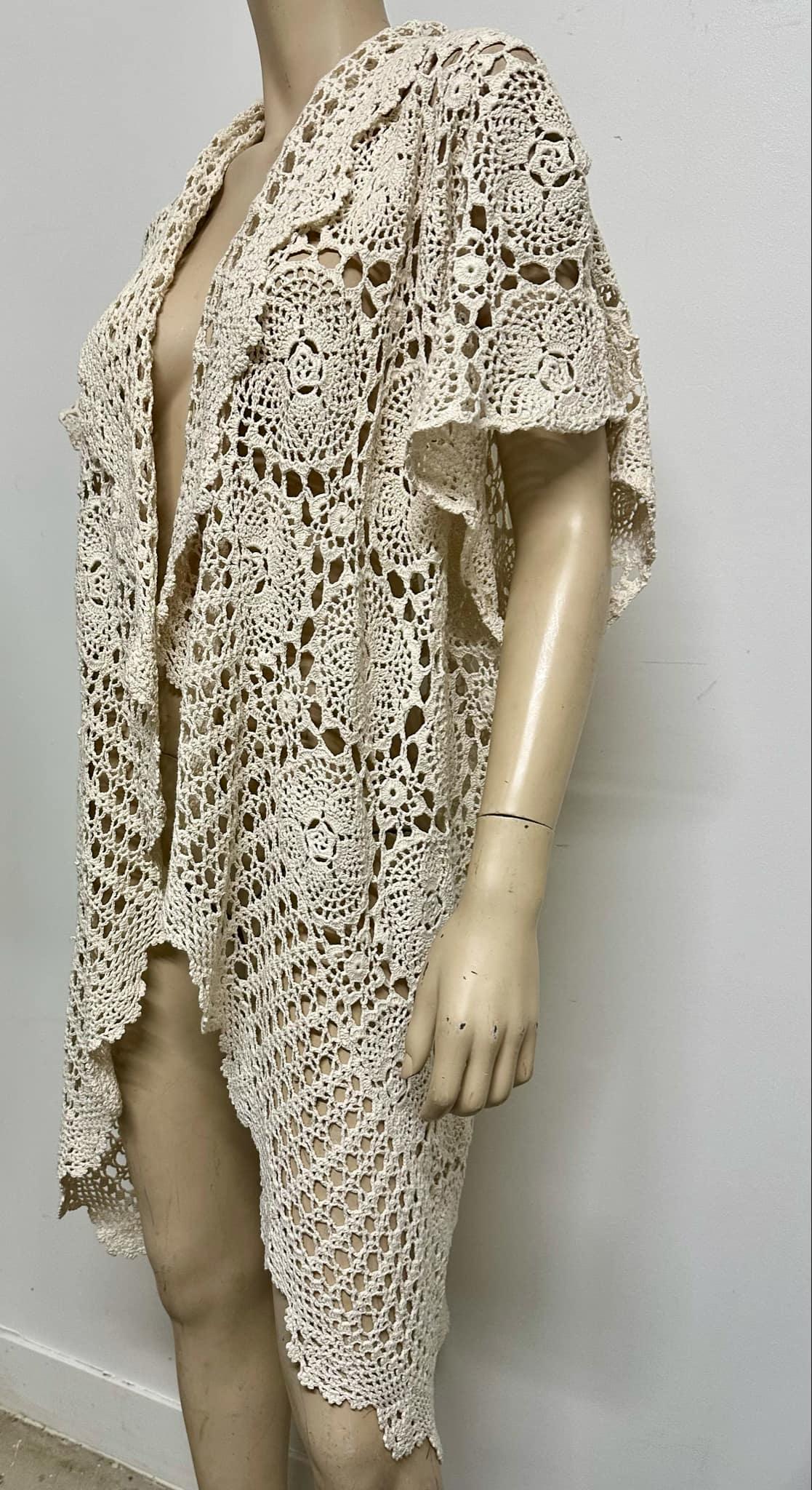 This handmade crochet cardigan is the perfect balance of elegance and comfort. Whether you're heading to the beach or meeting friends in the city, this lightweight lace duster adds effortless boho charm to any outfit. Made from soft cotton yarn, it's breathable, flowy, and ideal for layering in spring and summer.