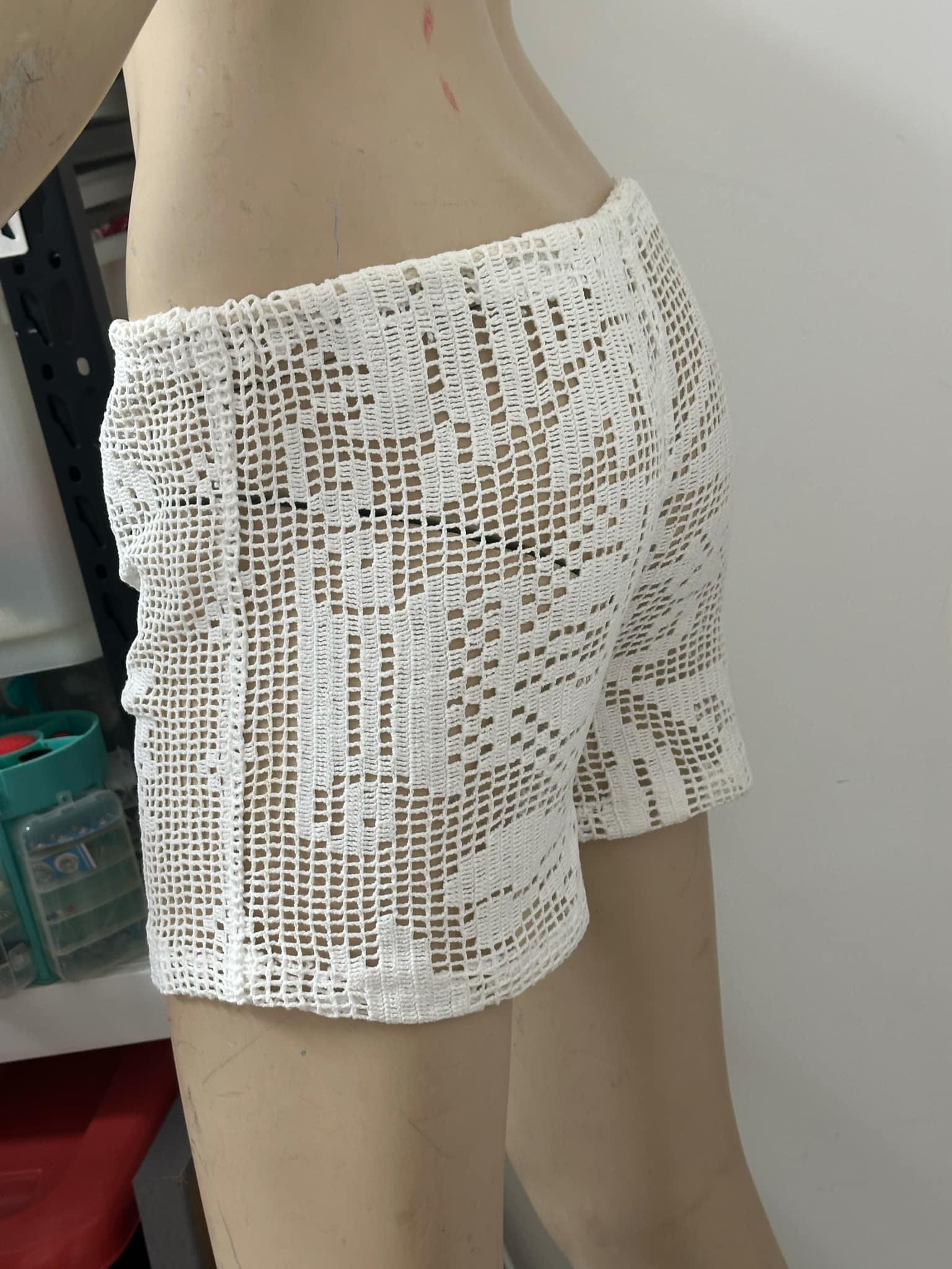 Crochet White Shorts Handmade Boho Festival Beachwear