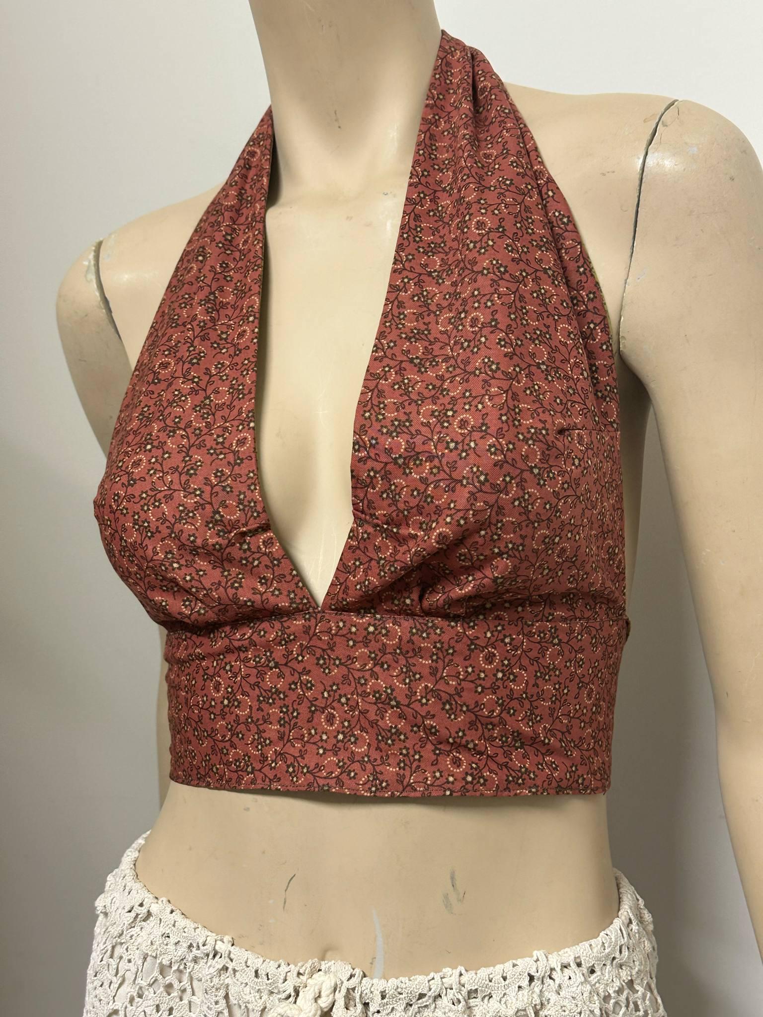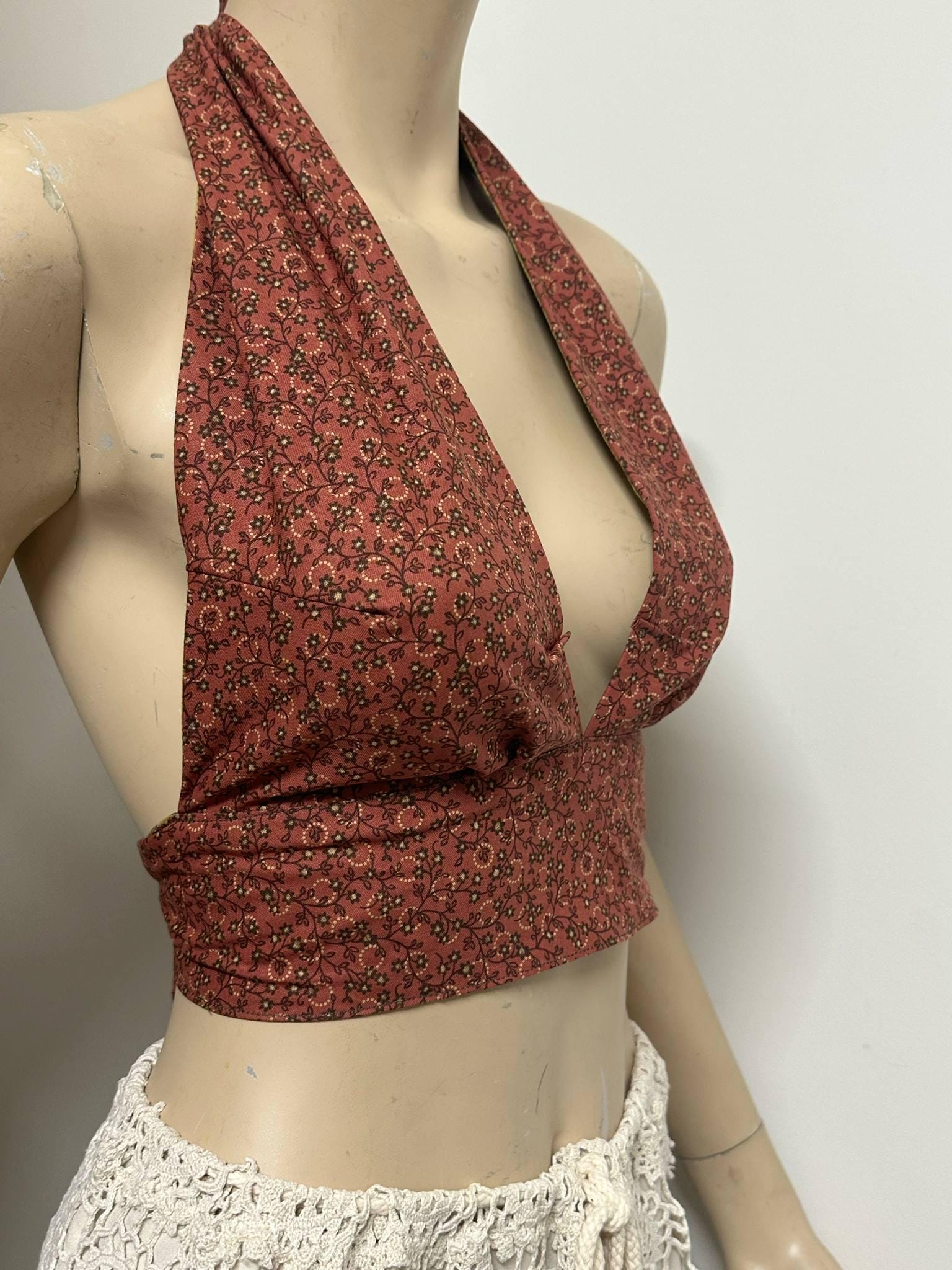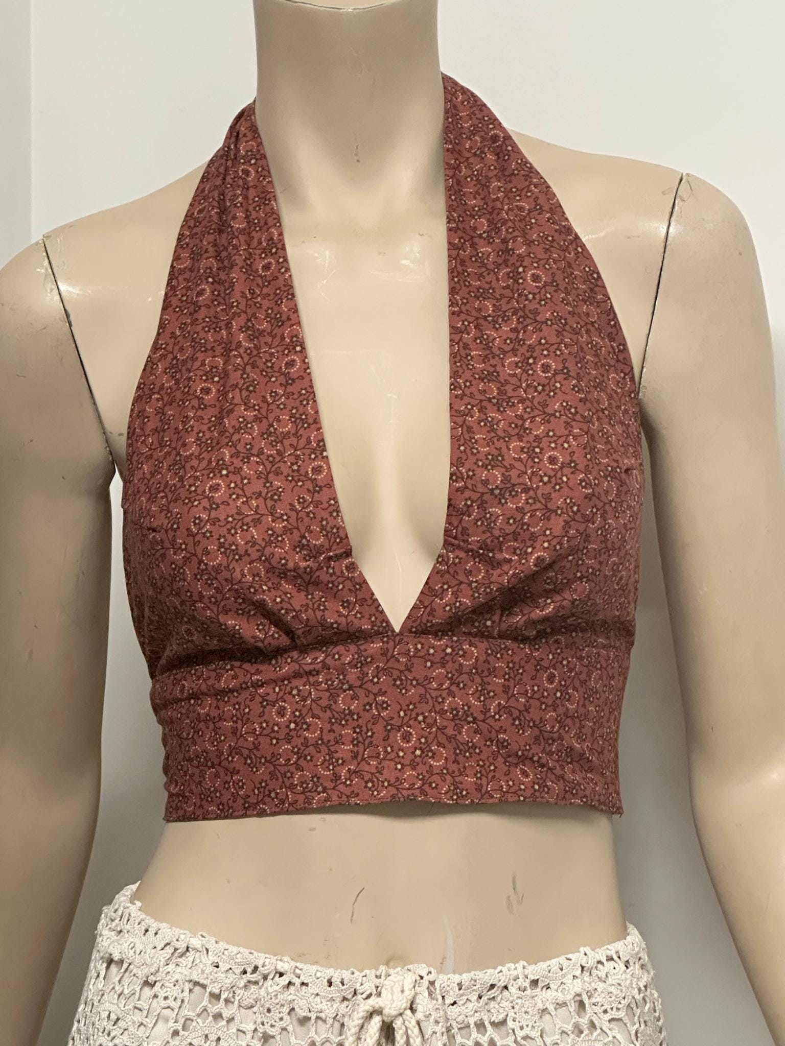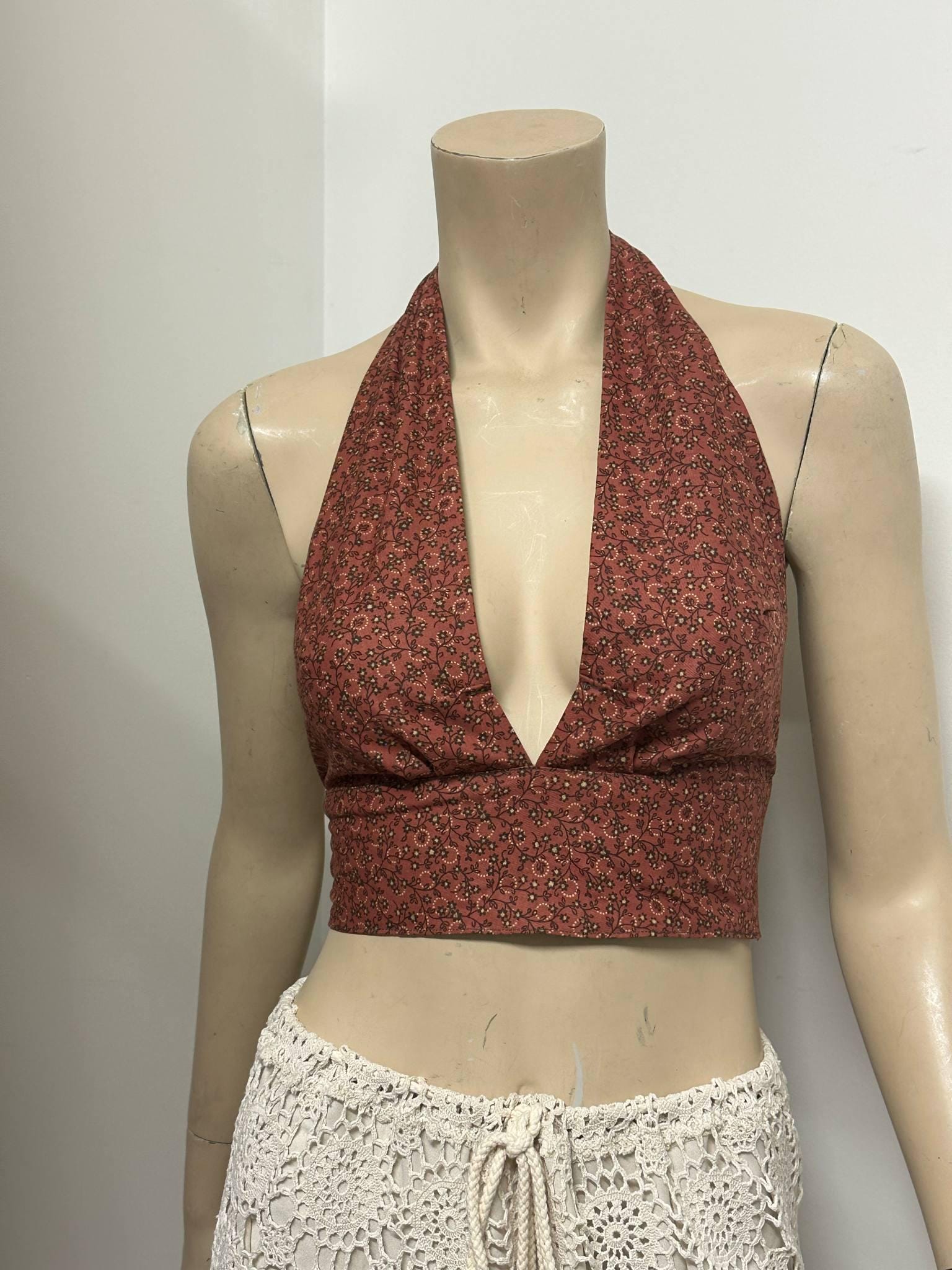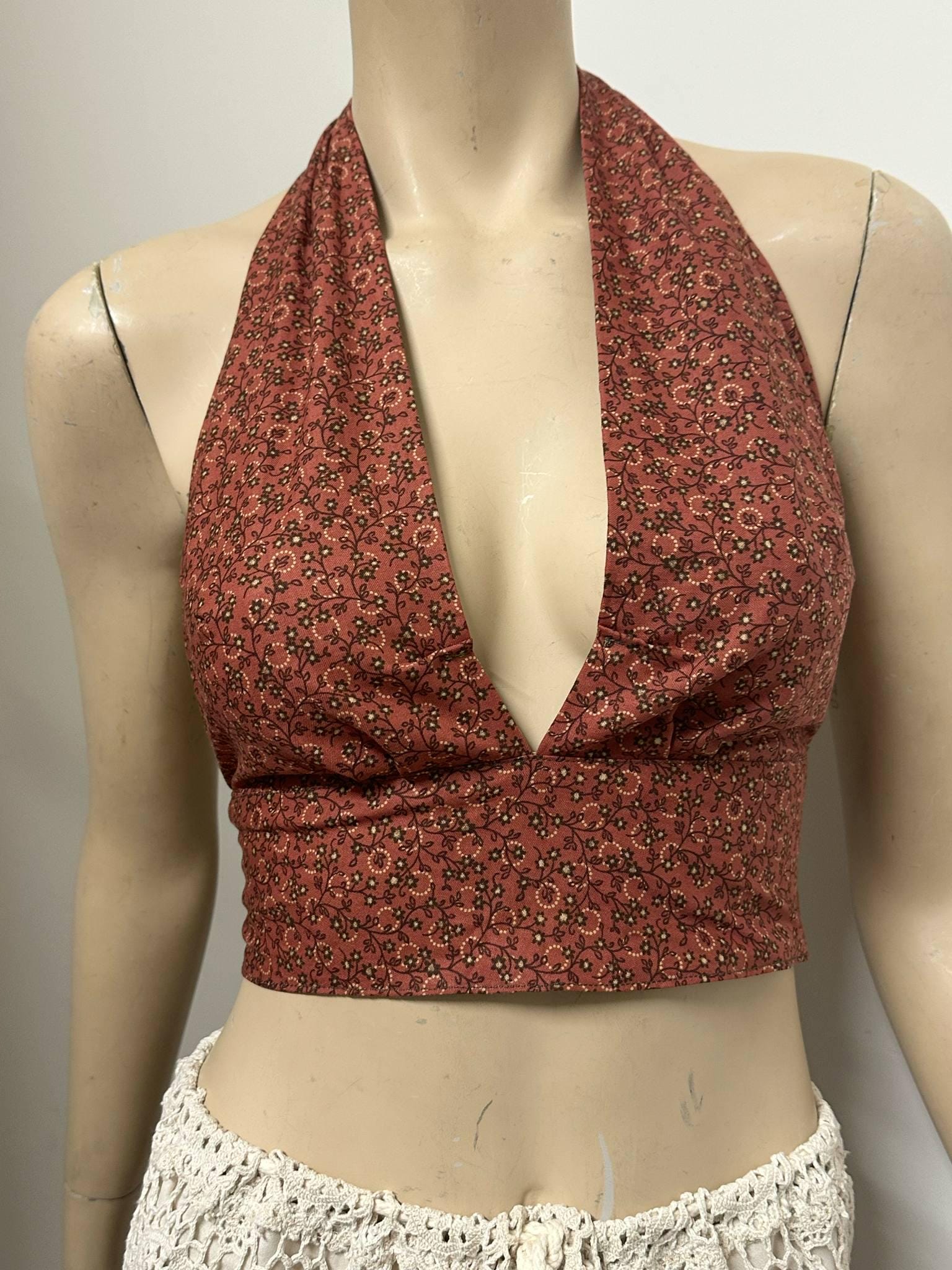 Favorite for Twenty Percent Off Reversible 100% Cotton Halter Top 🎀 This handmade halter top is crafted from 100% natural cotton fabric. It offers two versatile looks in one piece:
