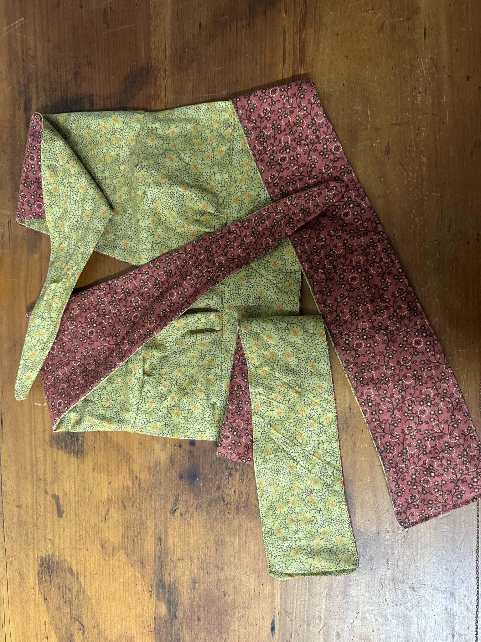 One side features a lightweight, breathable green fabric with delicate floral prints.