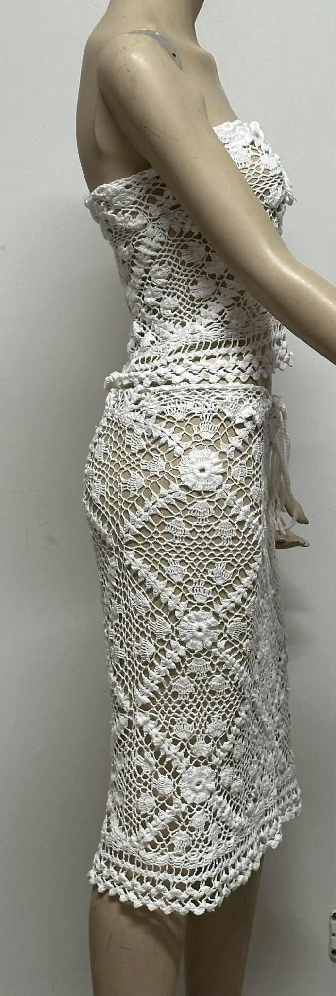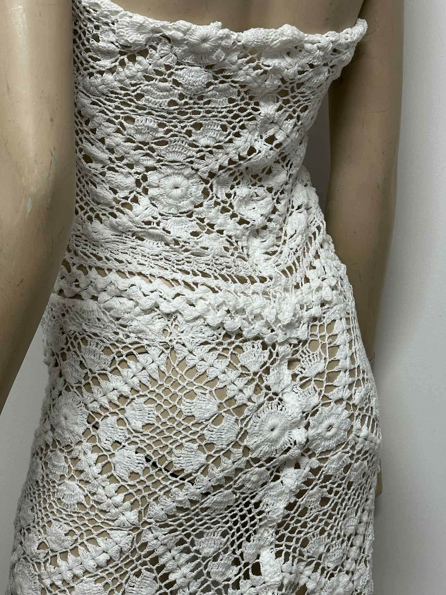 Handmade in Australia: Upcycled vintage‐inspired lace motifs, each stitch and flower motif crocheted by hand.Fit & Care: Standard XS/S, but can be customized—just provide bust, waist, and hip measurements. Machine wash gentle cycle, lay flat to dry; fabric softens over time. Whether you’re lounging by the pool, dancing at a beach party, or headed to a summer festival, this crochet set blends boho‐chic flair with comfortable coverage. Add a wide‐brim hat, wedge sandals, and layered necklaces for an effortless sun-soaked look. How to Order: Optional lining available for $30 extra – message me if you’d like it lined!