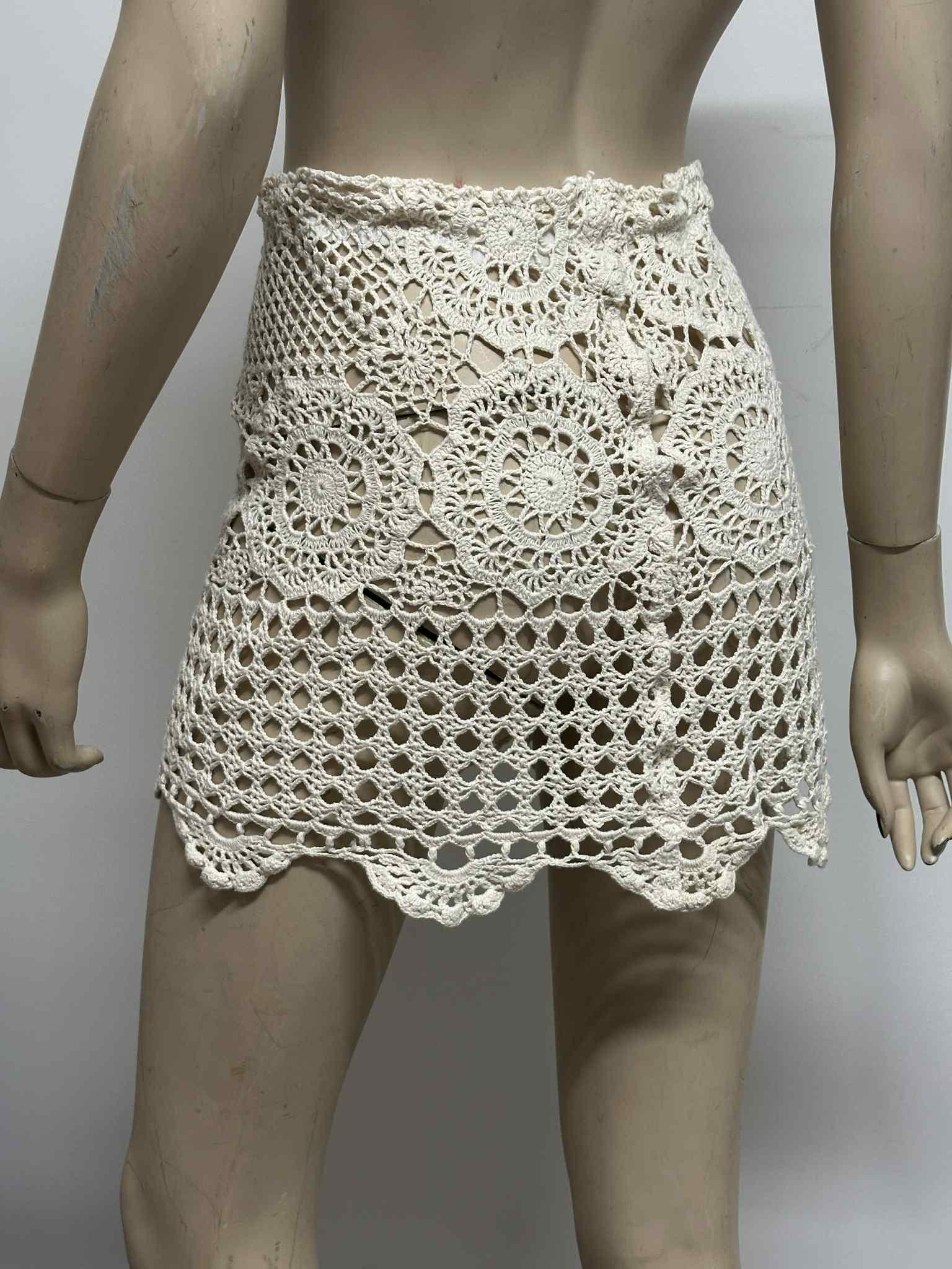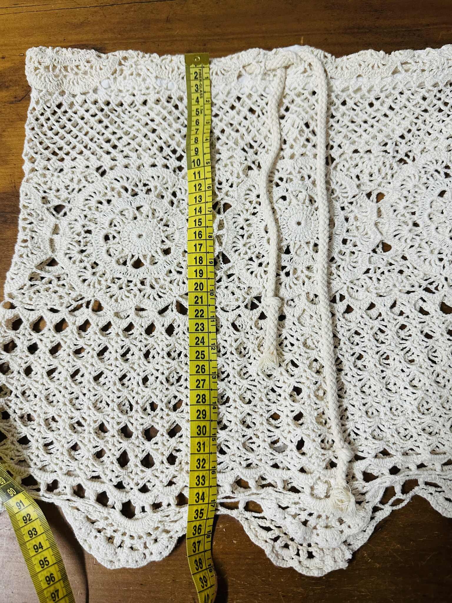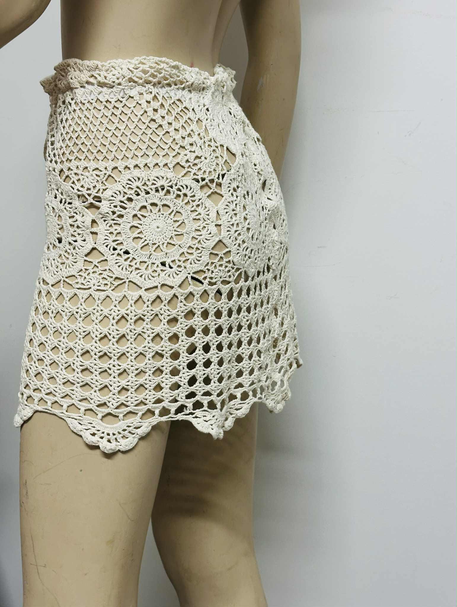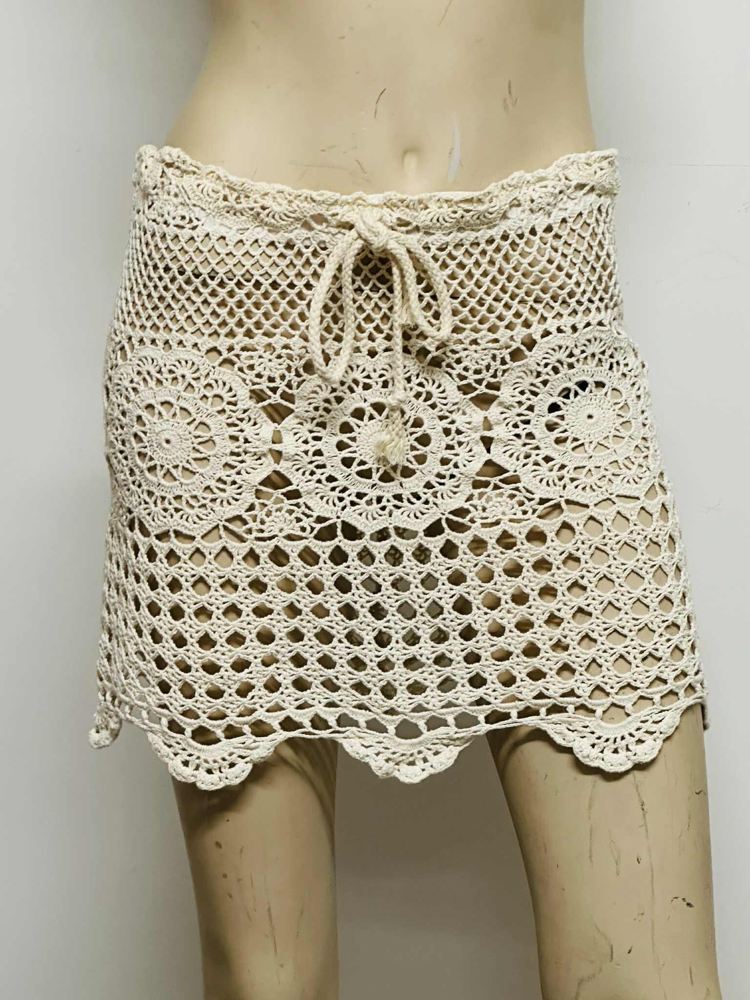 This beige color crochet mini skirt is a handmade beauty crafted with soft cotton yarn and detailed lace motifs. The waistband includes a soft, stretchy inner fabric that gently hugs your waist and adjusts to your shape.