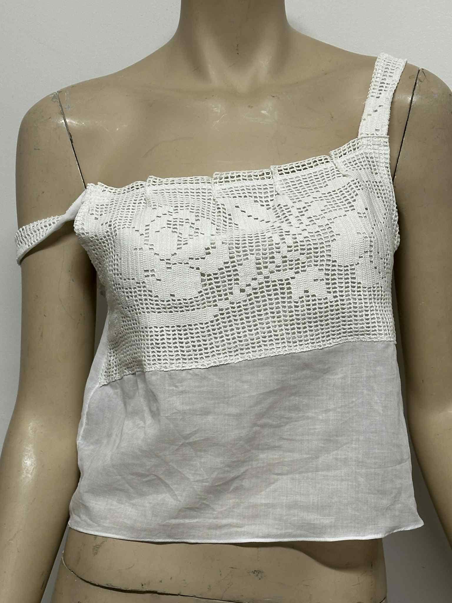 This stunning handmade top is made from never-used vintage lace with an elegant rose motif on the bodice. The bottom is finished with a soft, breathable cotton fabric for ultimate comfort and a clean silhouette. A true one-of-a-kind creation, this piece received an “absolutely divine” review from a previous customer, and now it’s back due to popular demand.