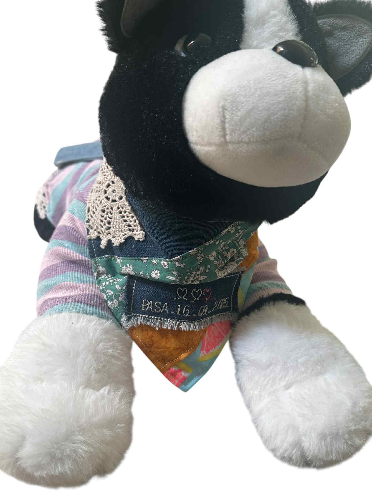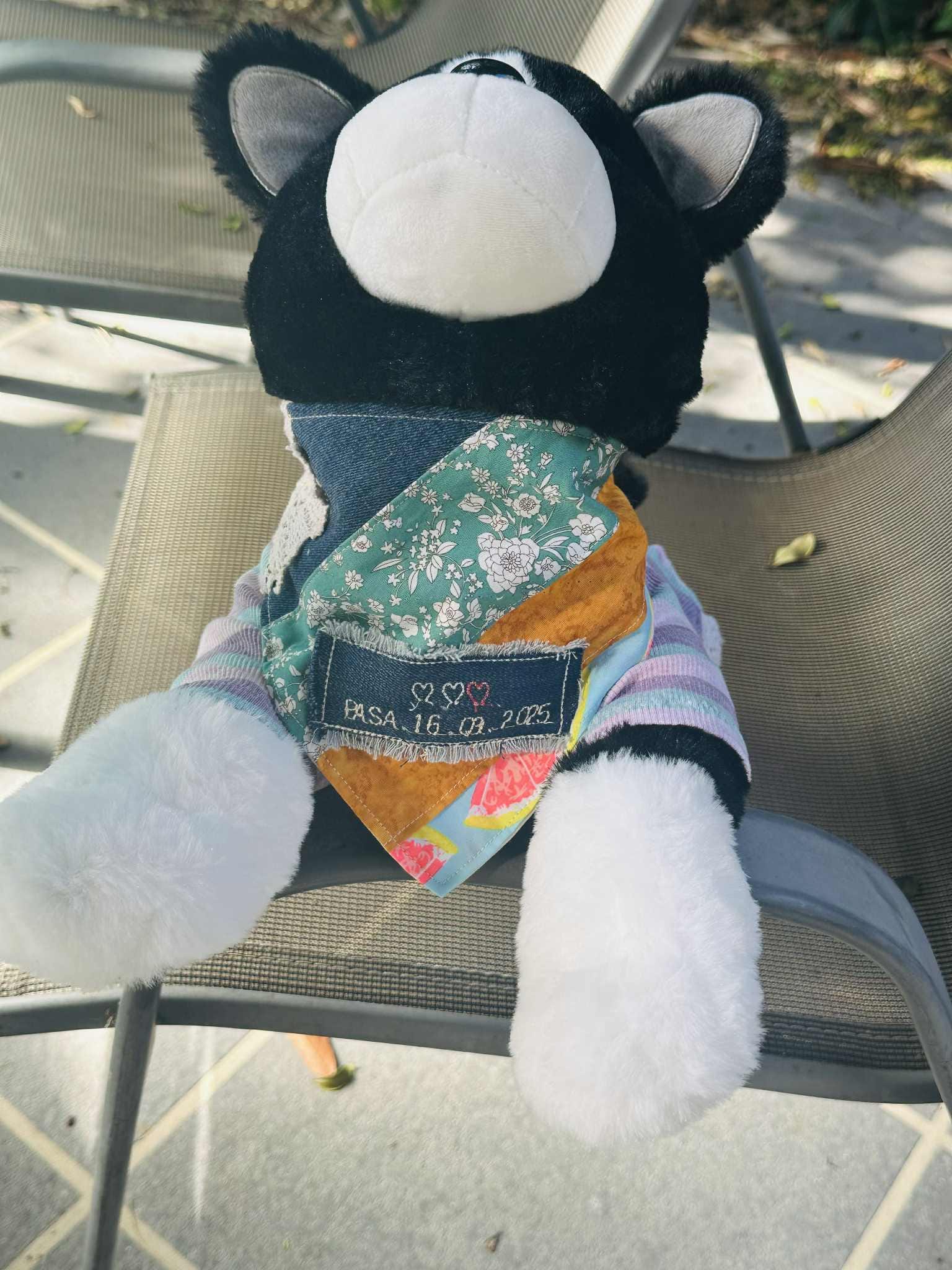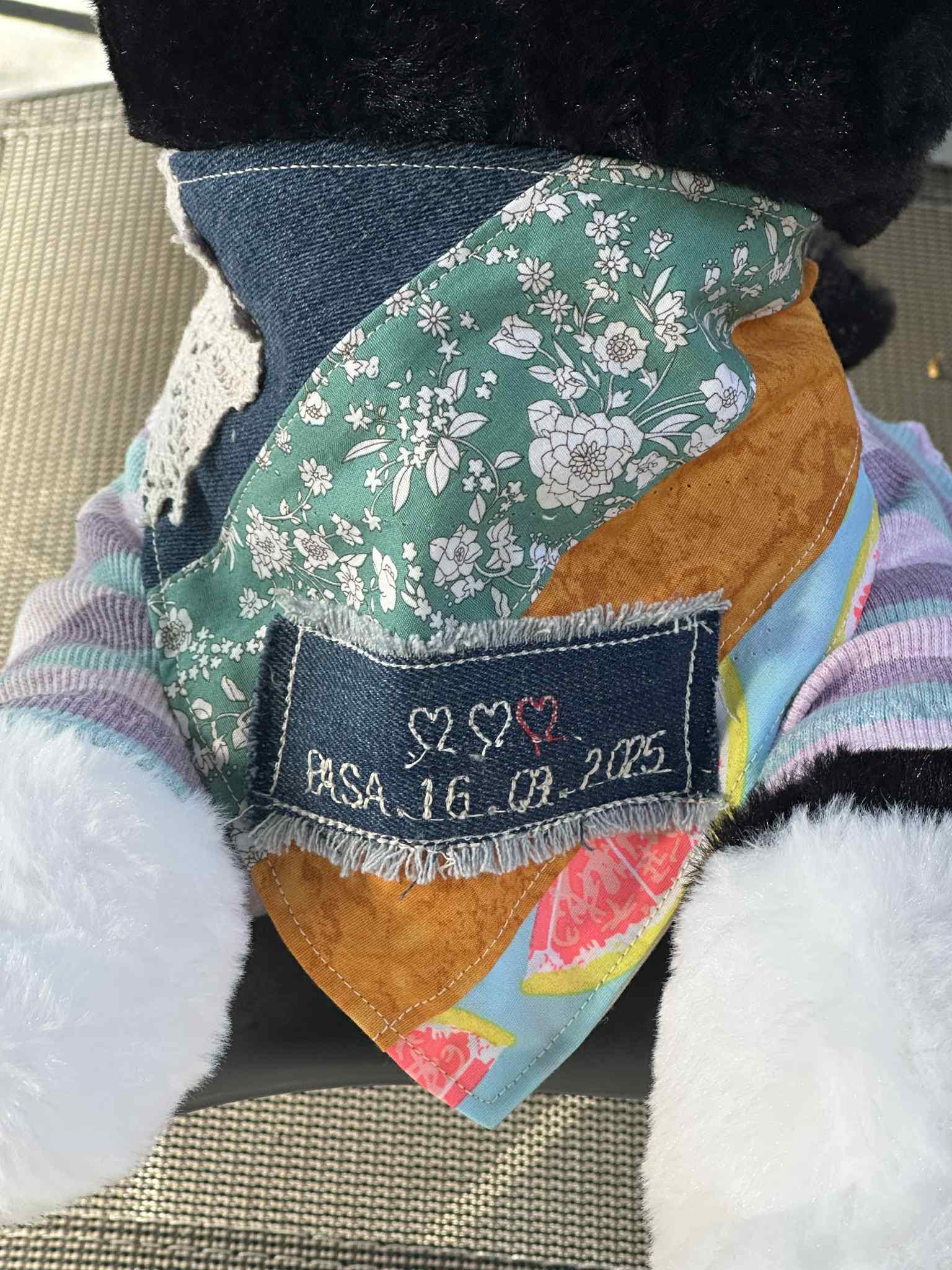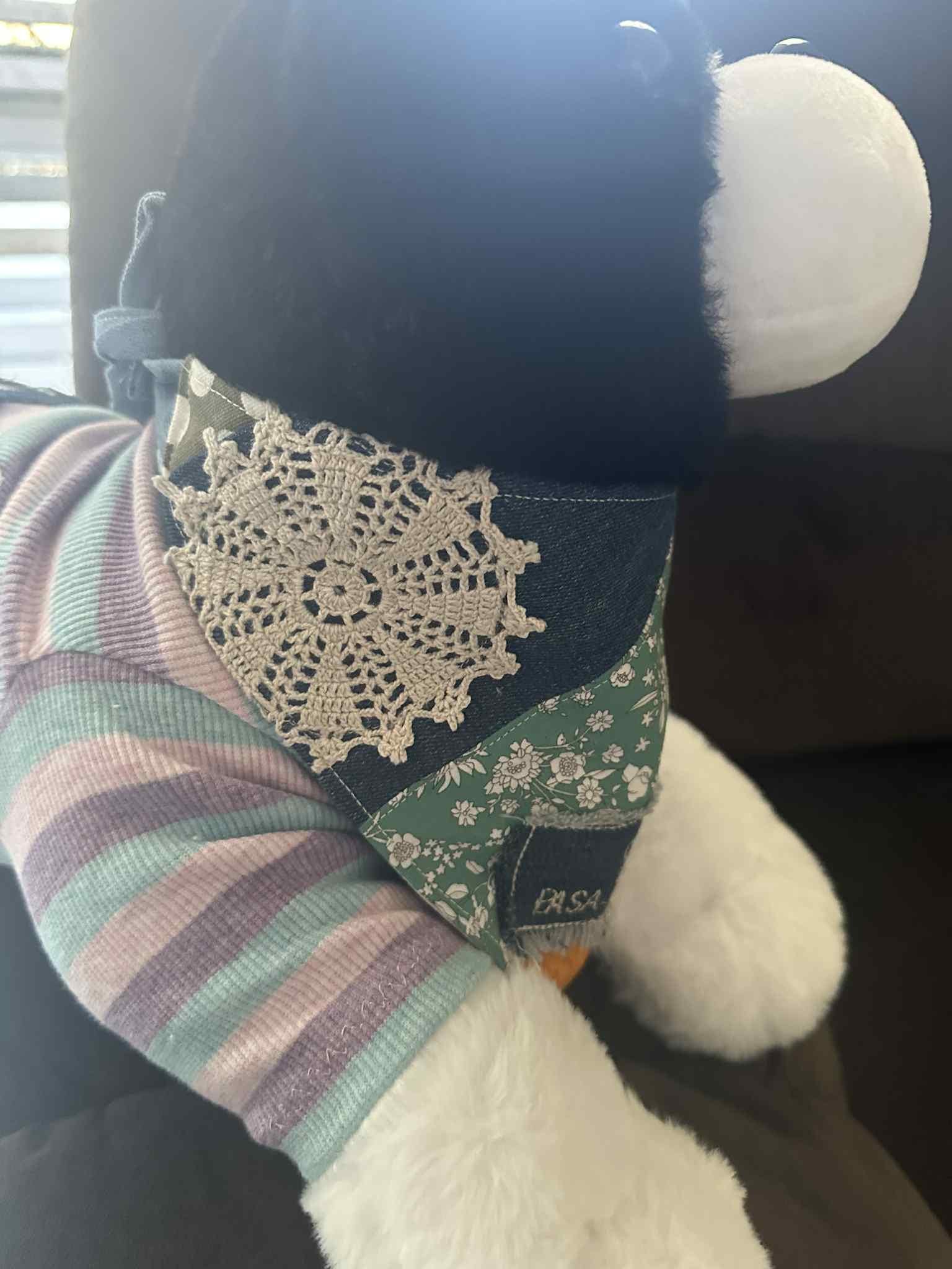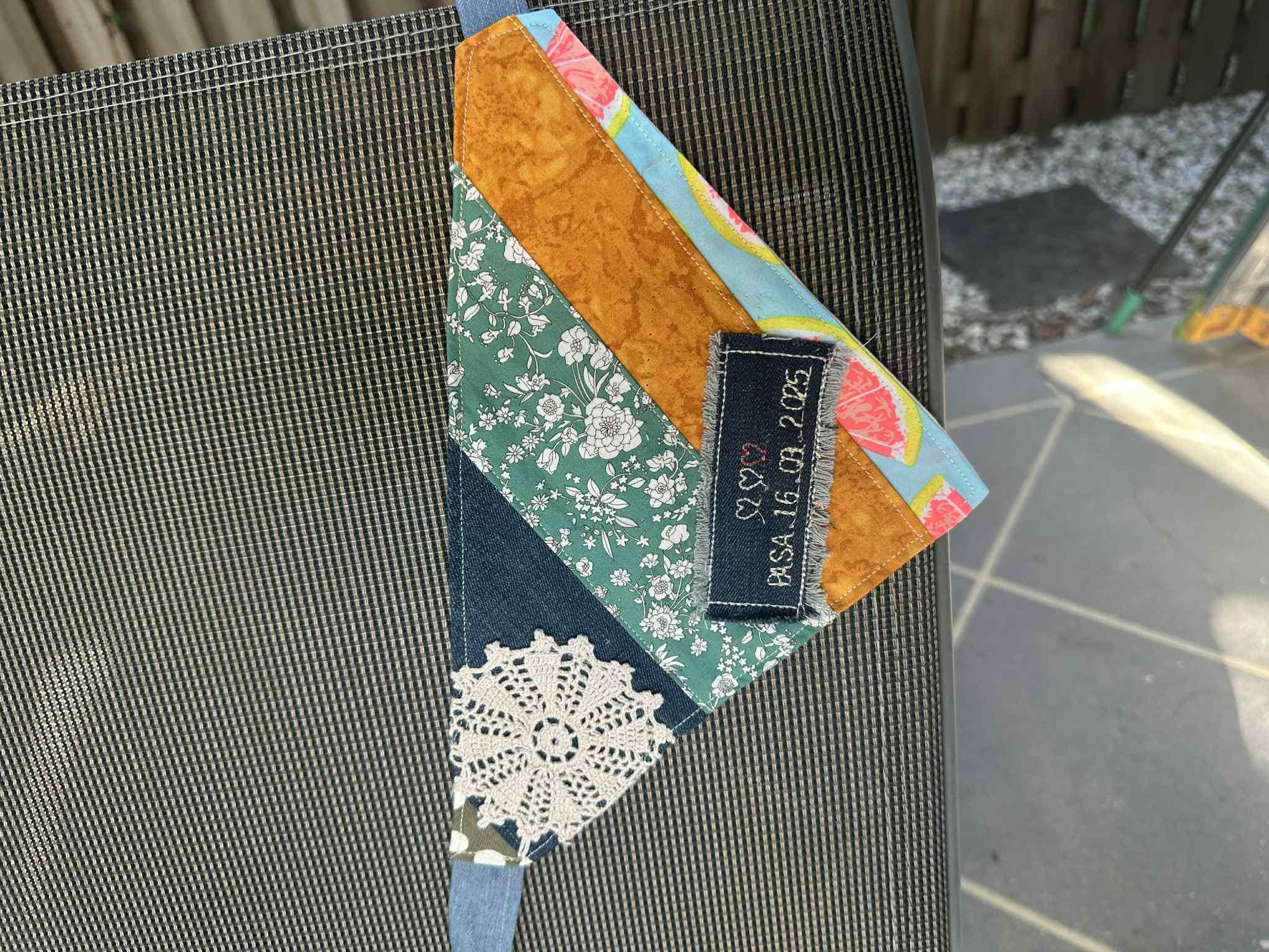 This handmade dog bandana and owner hair scrunchie set is the perfect way to twin with your pet. Each bandana is crafted with patchwork fabric, lace details, and colorful prints, while the scrunchie matches beautifully – making it a thoughtful personalised gift for pet lovers and dog mums.
