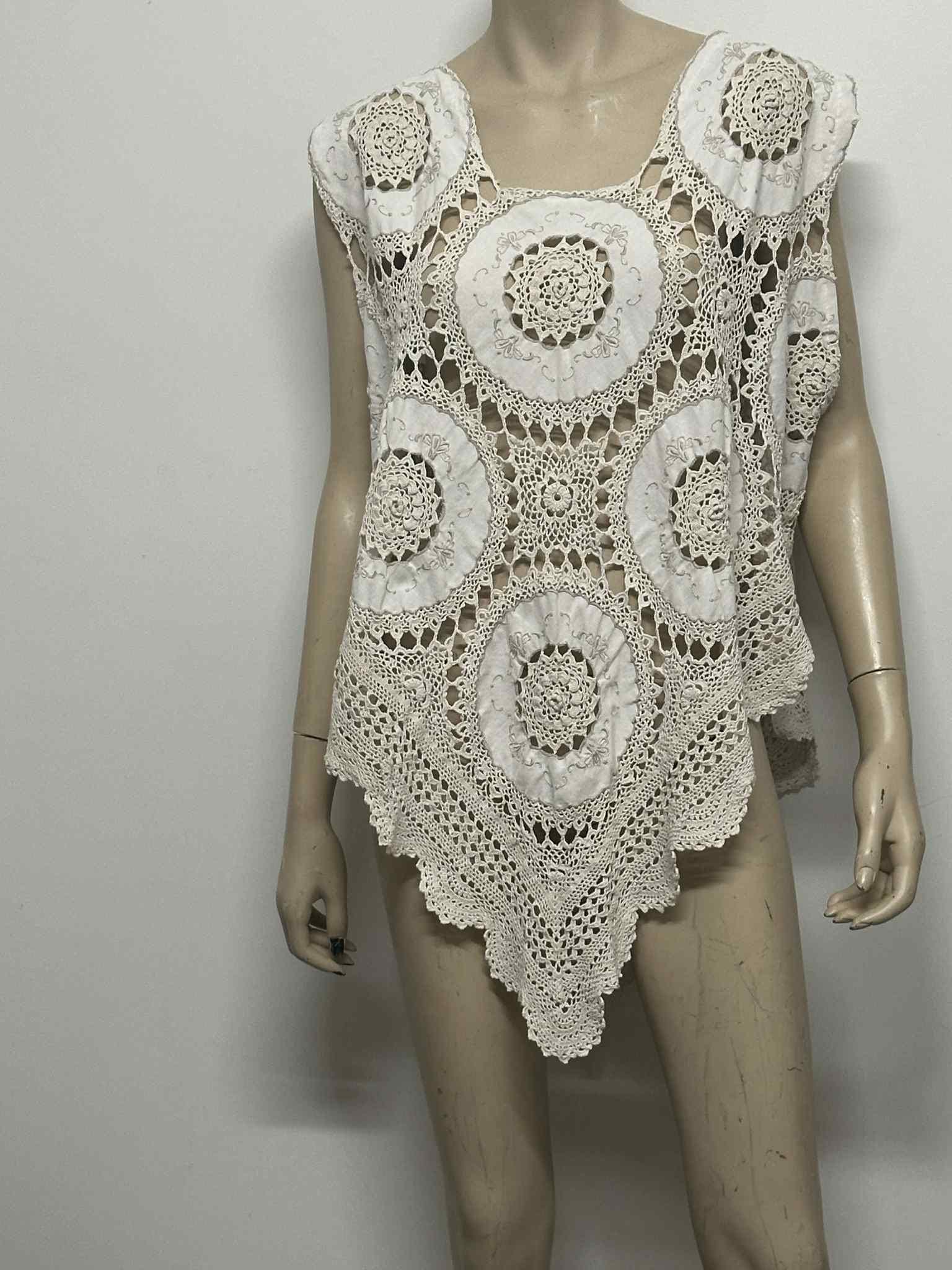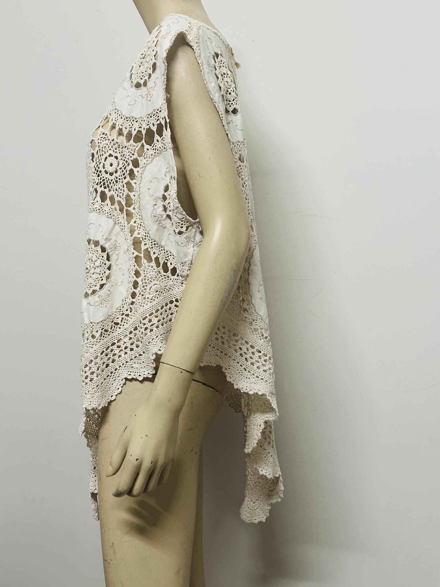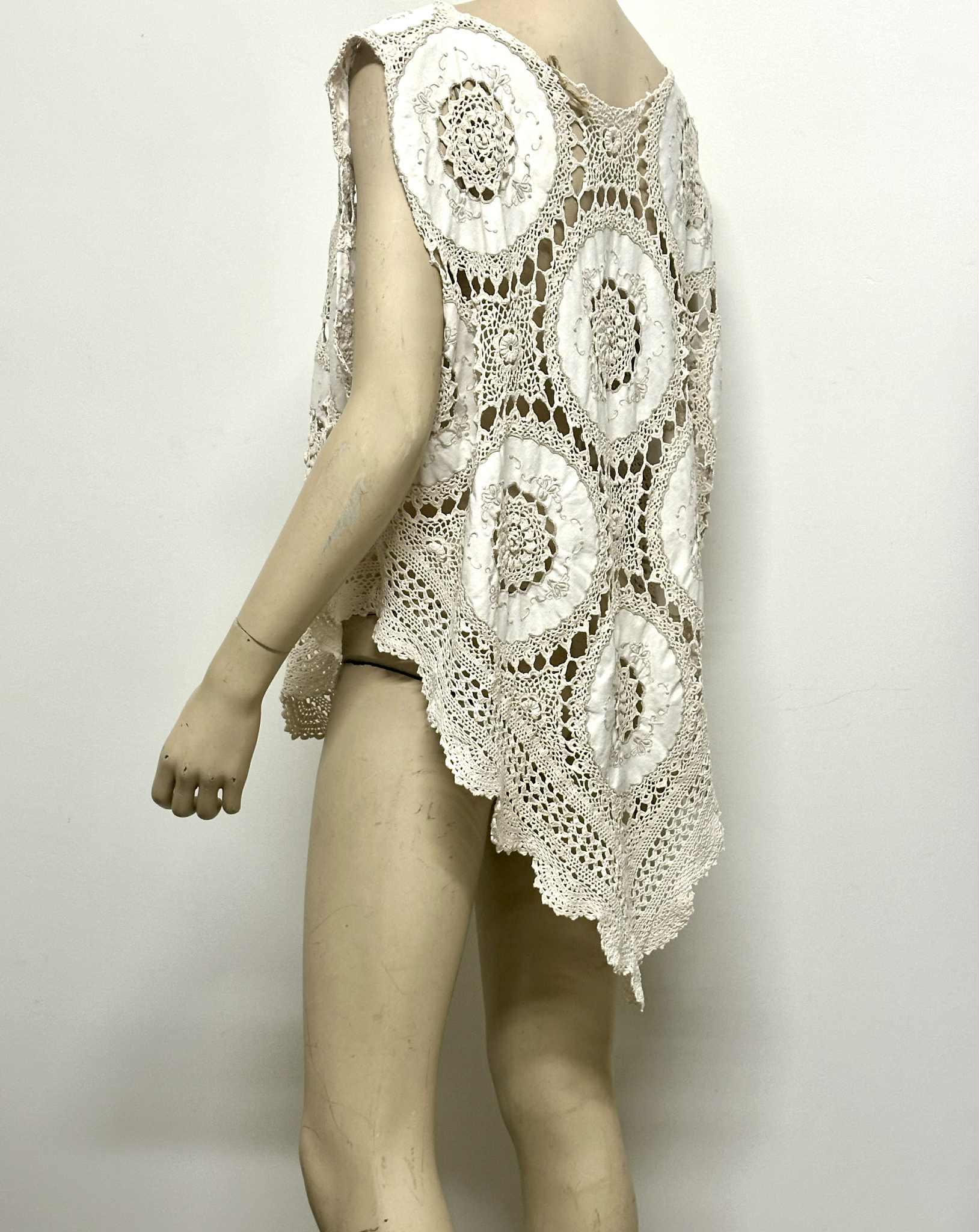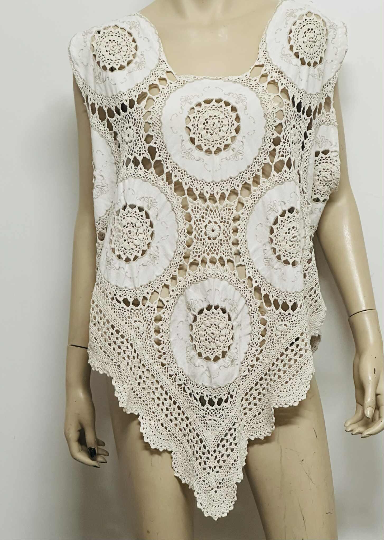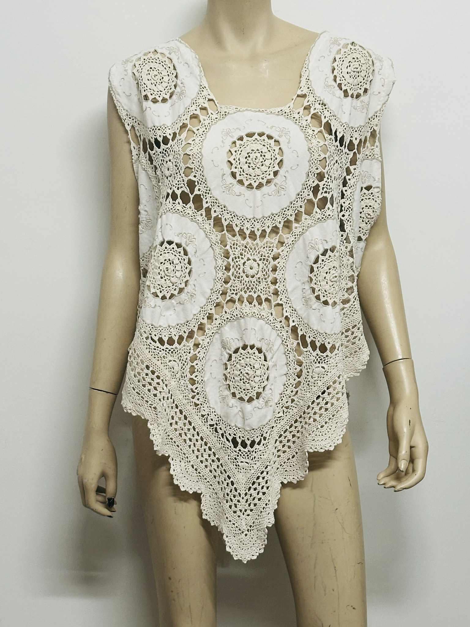 Handmade & One-of-a-Kind ✨ This beautiful vintage crochet lace top is a true statement piece, made from carefully upcycled lace with intricate round motifs. Each circle is hand-stitched together to create a unique bohemian blouse that you won’t find anywhere else.