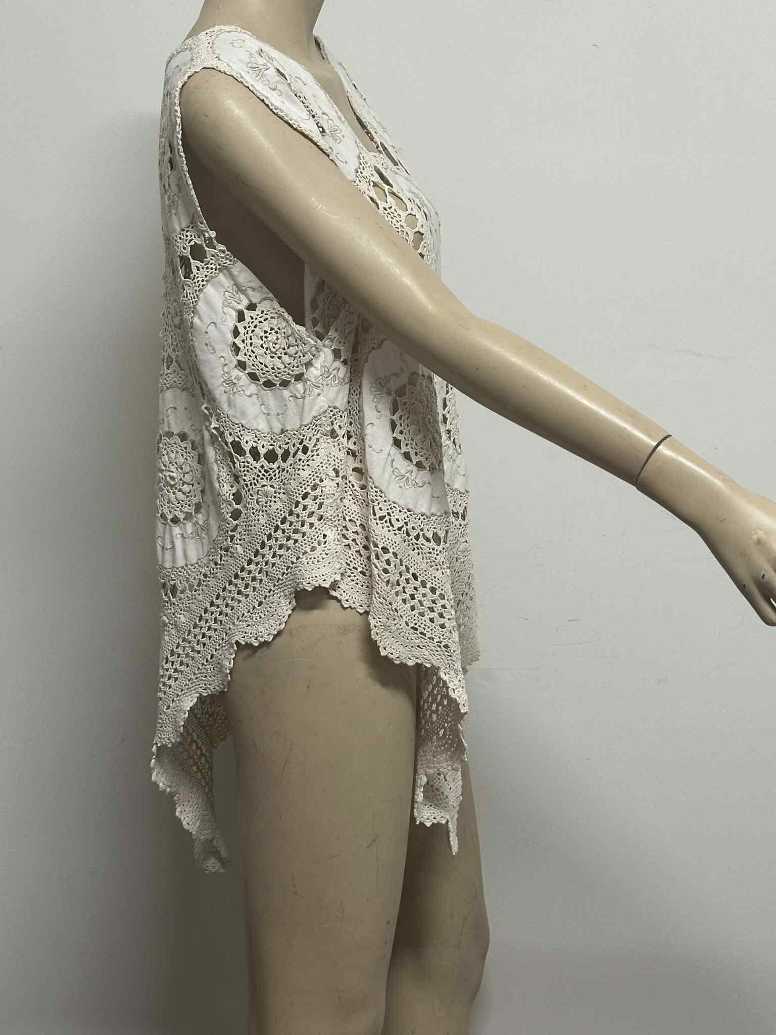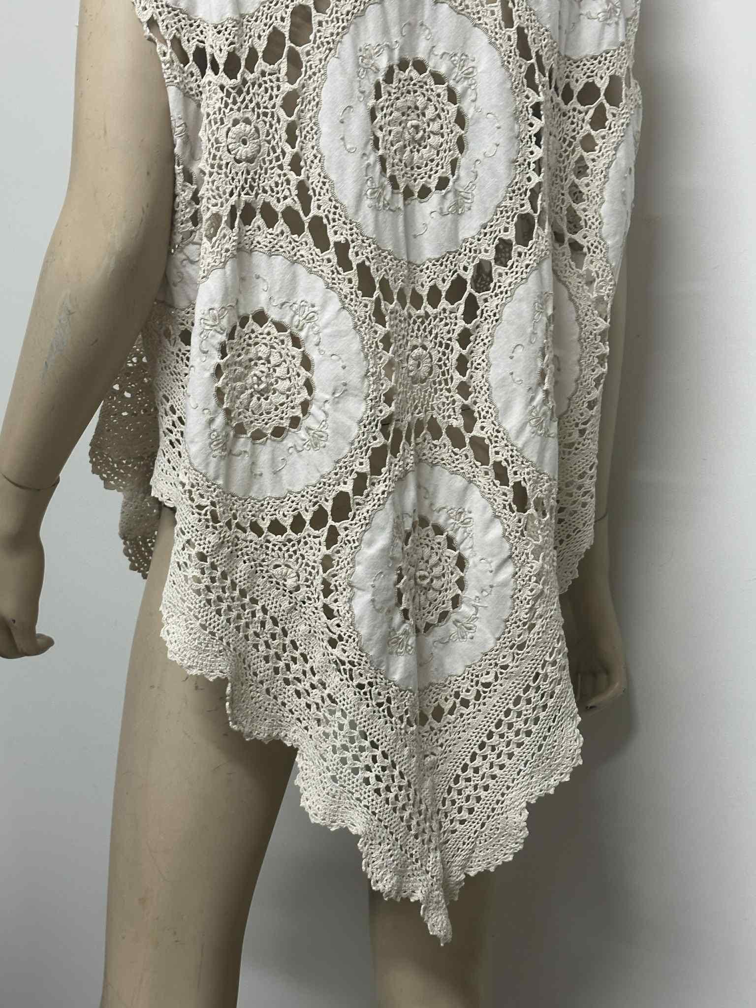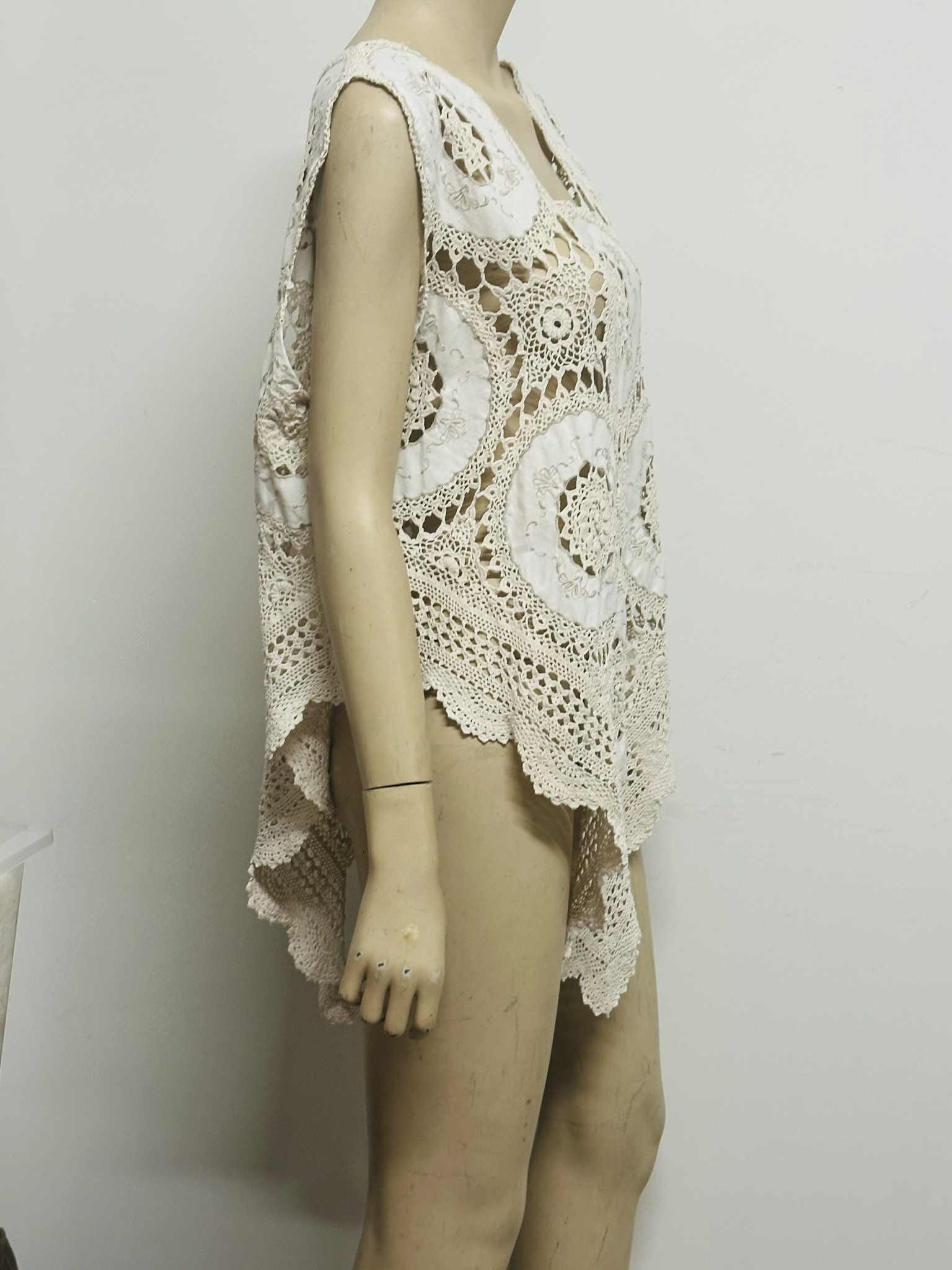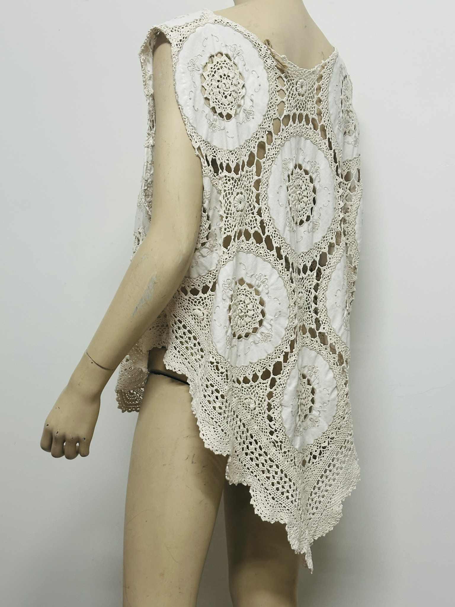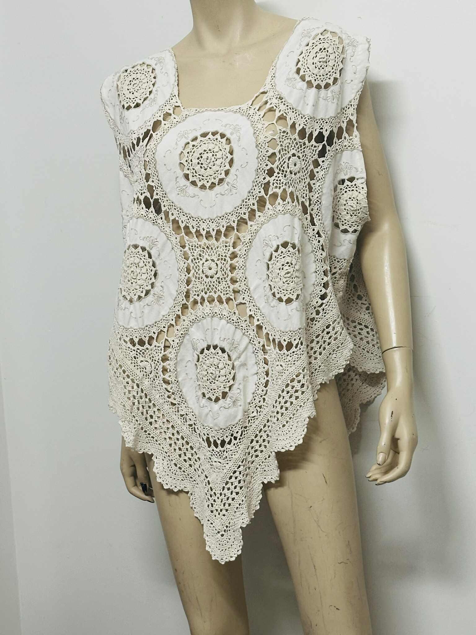 Handmade & One-of-a-Kind ✨ This beautiful vintage crochet lace top is a true statement piece, made from carefully upcycled lace with intricate round motifs. Each circle is hand-stitched together to create a unique bohemian blouse that you won’t find anywhere else.