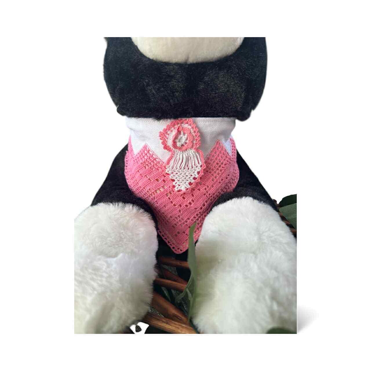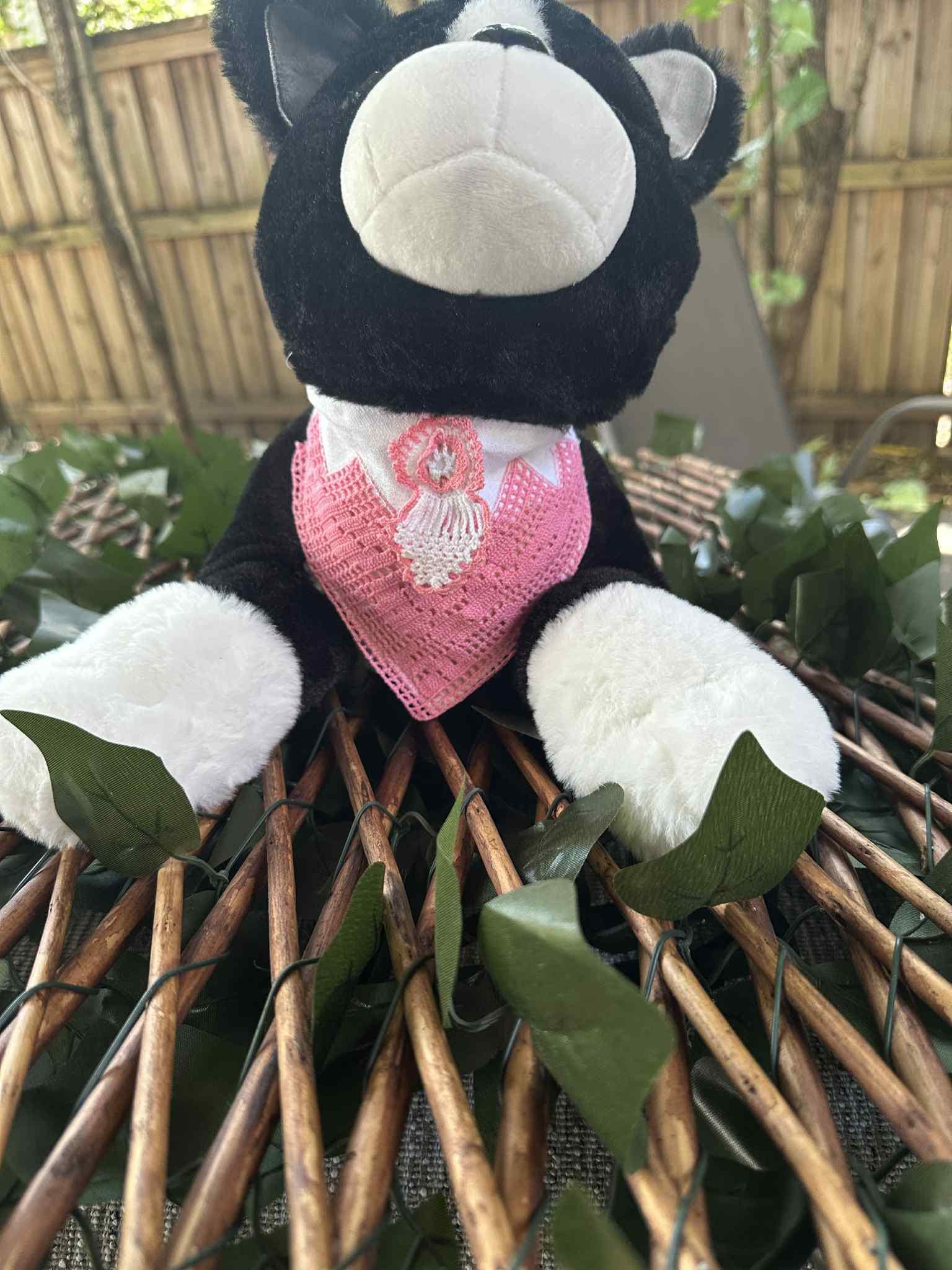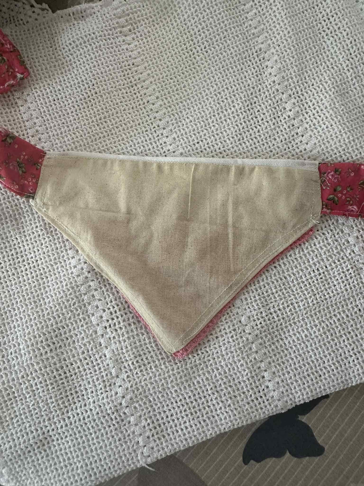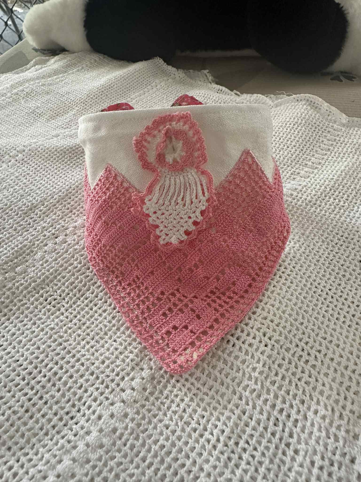 Handmade Crochet Pet Bandana: Pink White Cotton Lace Flower Motif