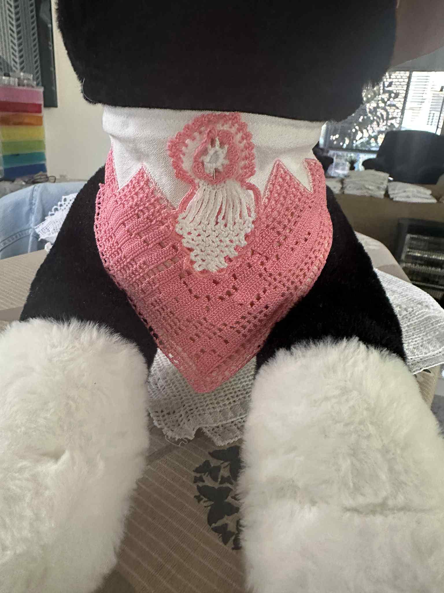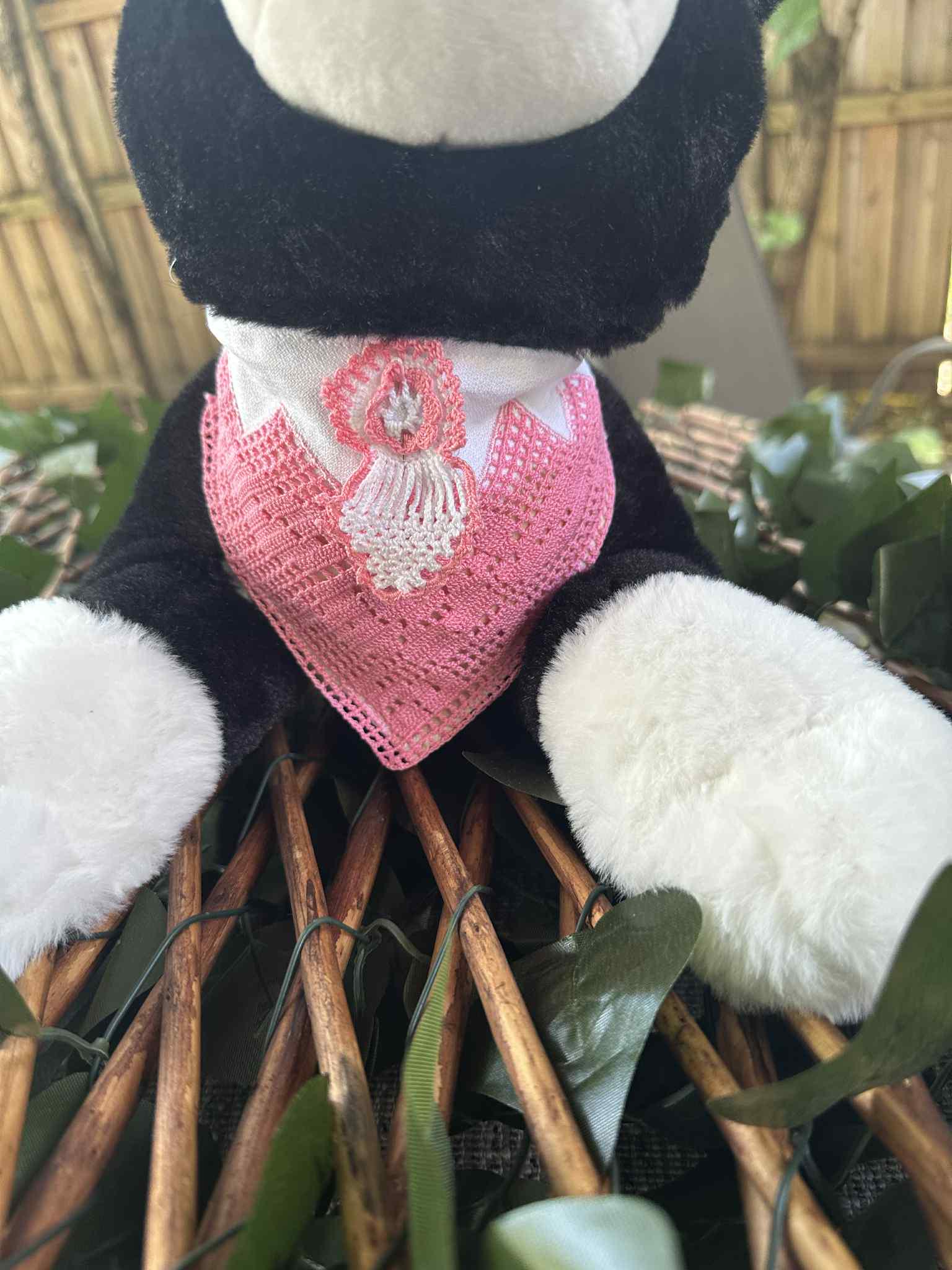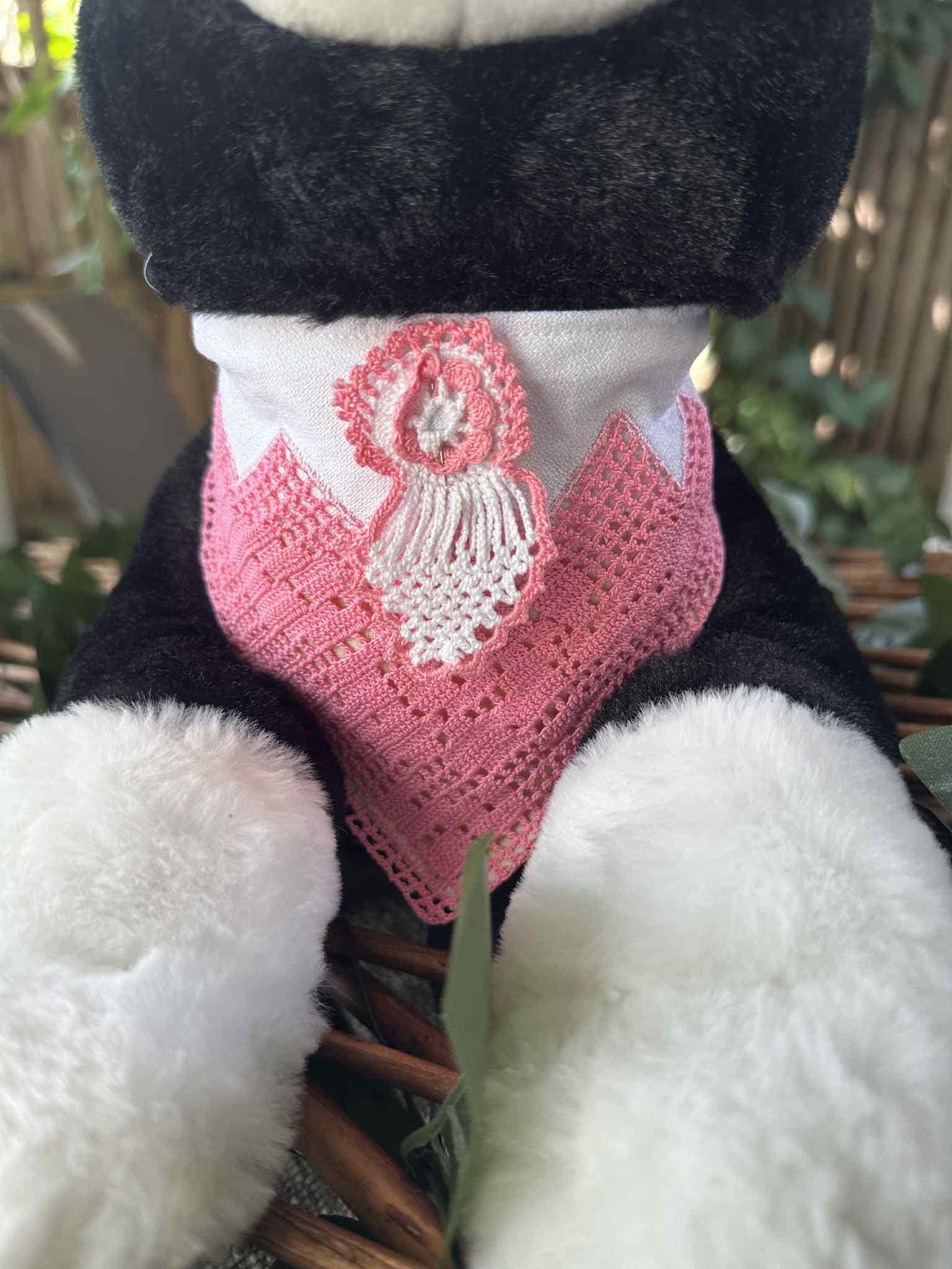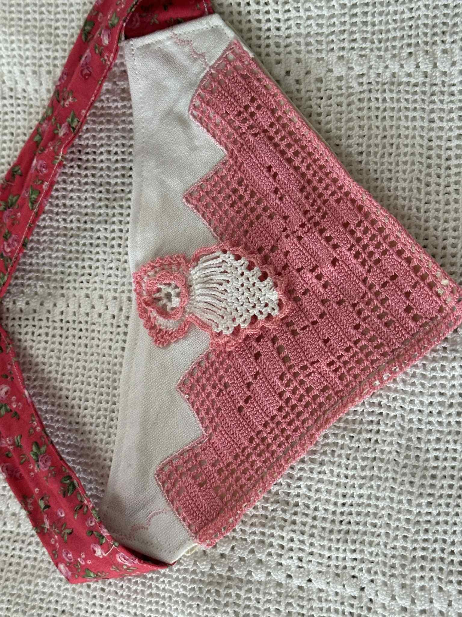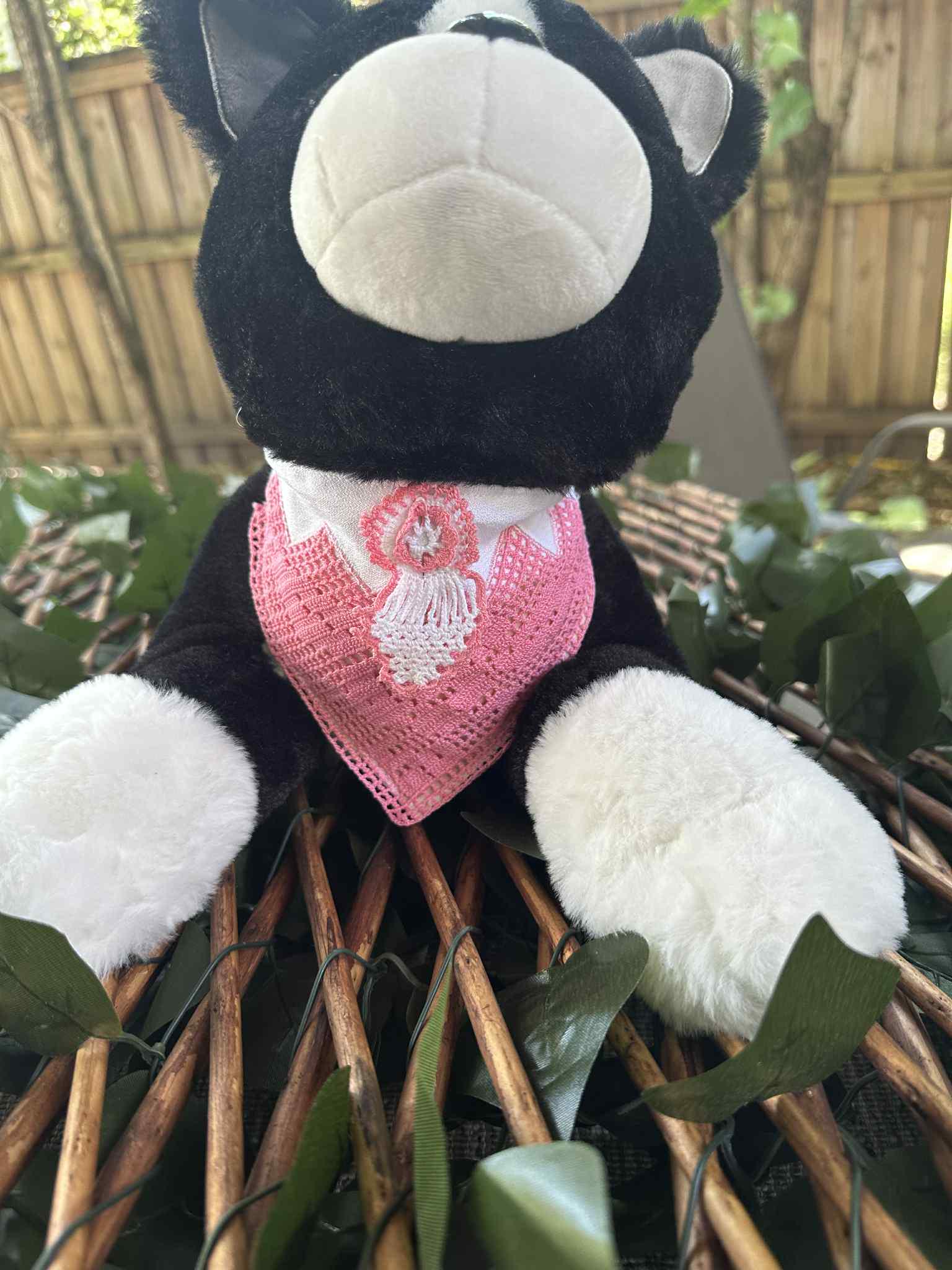 Handmade Crochet Pet Bandana: Pink White Cotton Lace Flower Motif