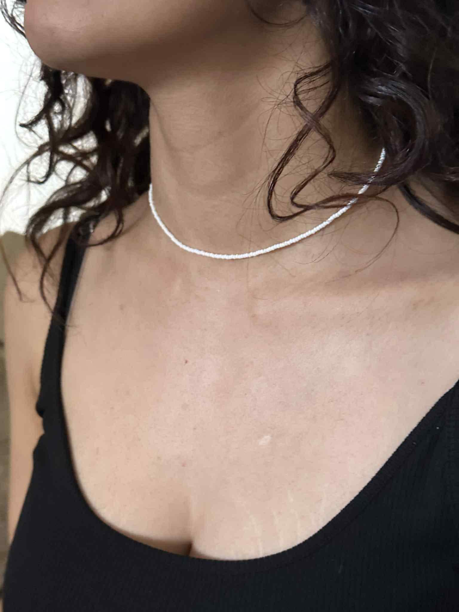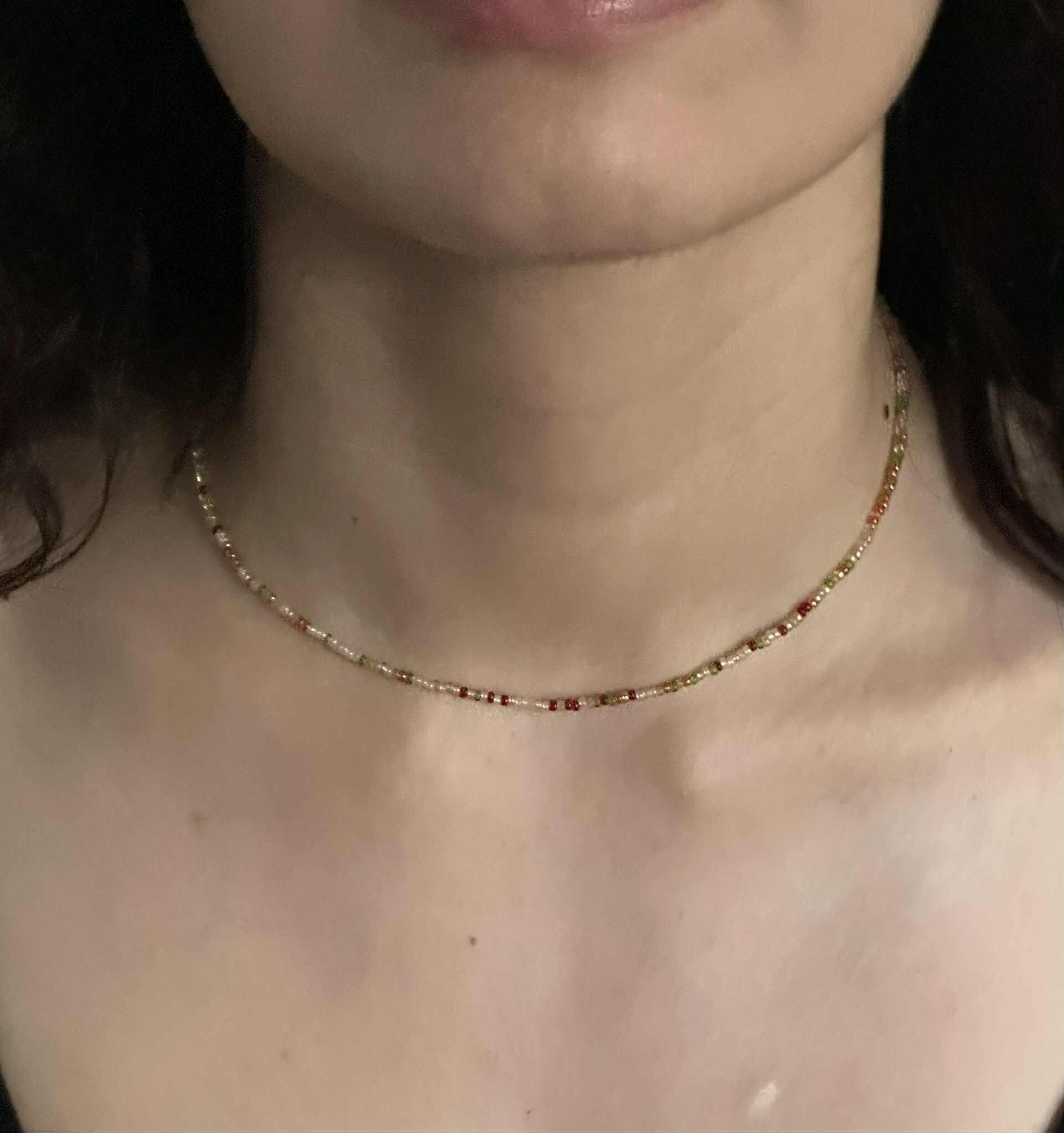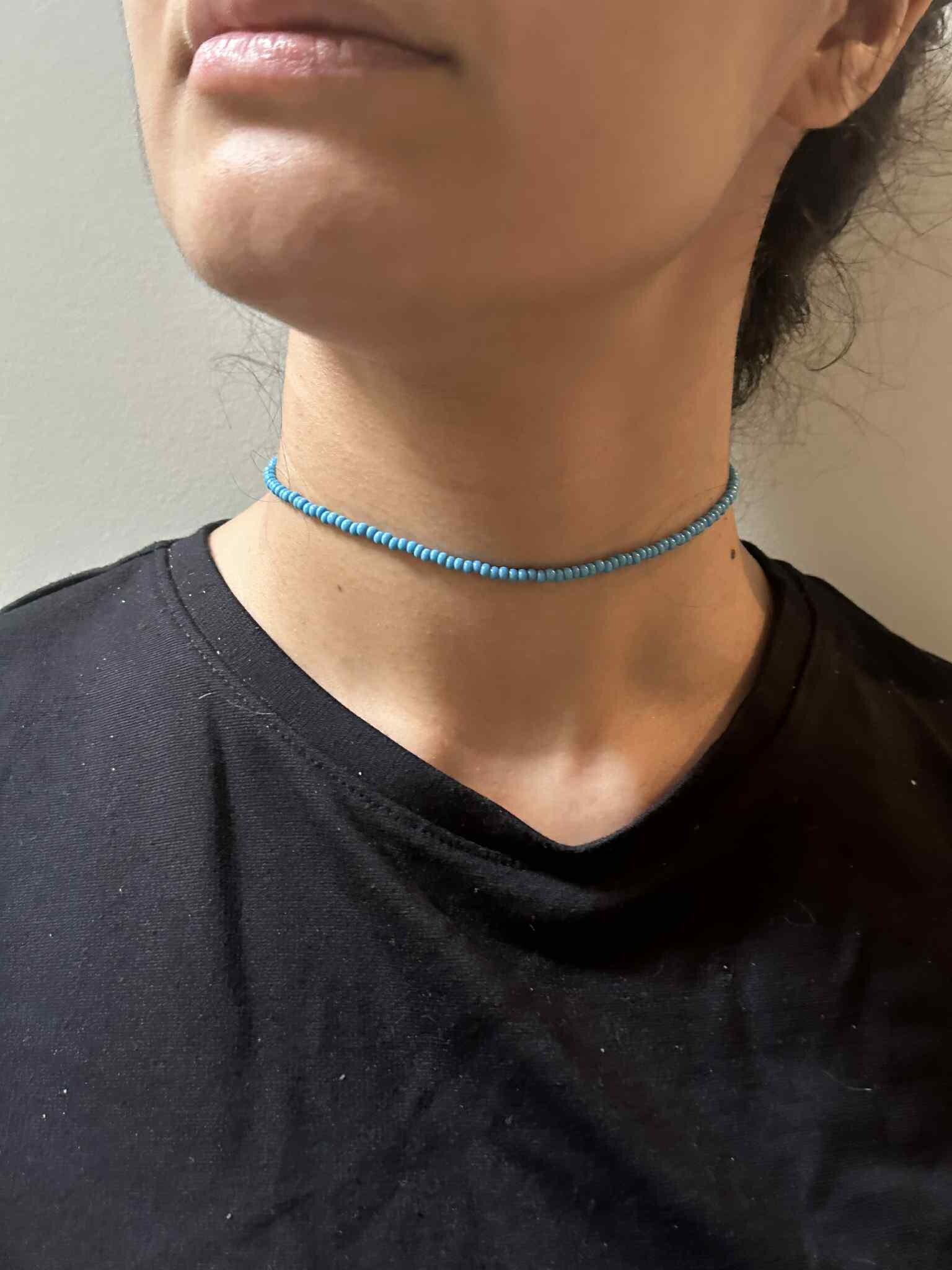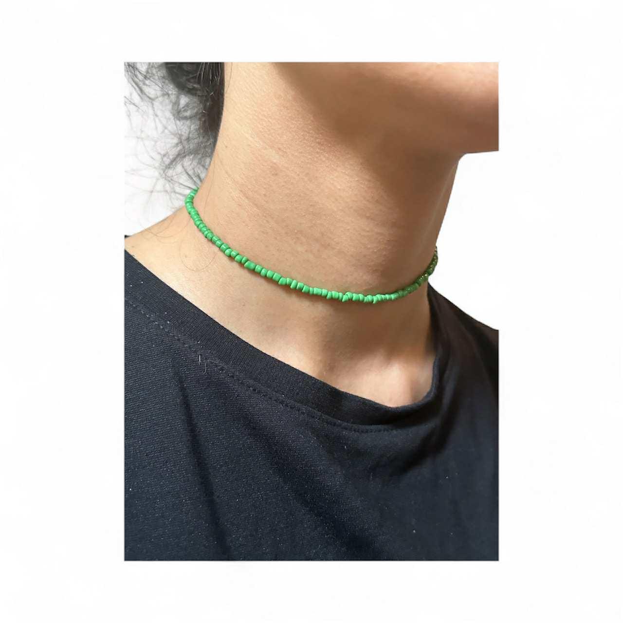Add a pop of colour with this minimalist beaded choker — handcrafted with premium seed beads on a transparent cord for a floating look.
