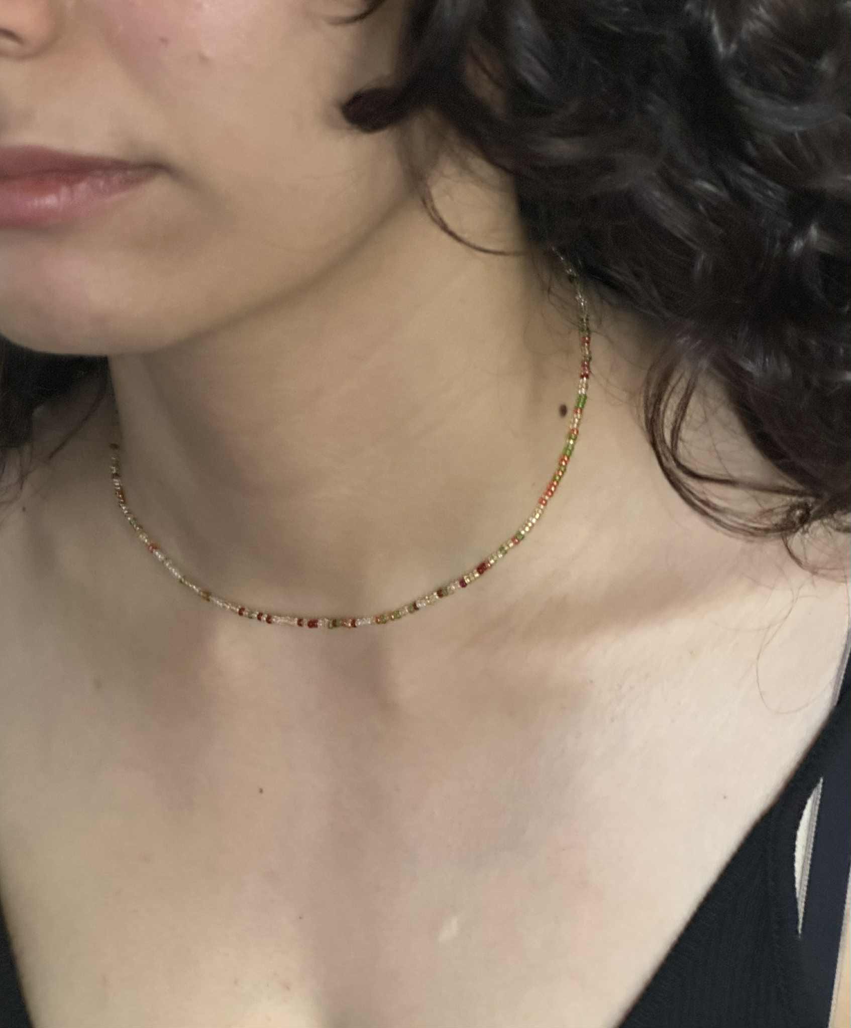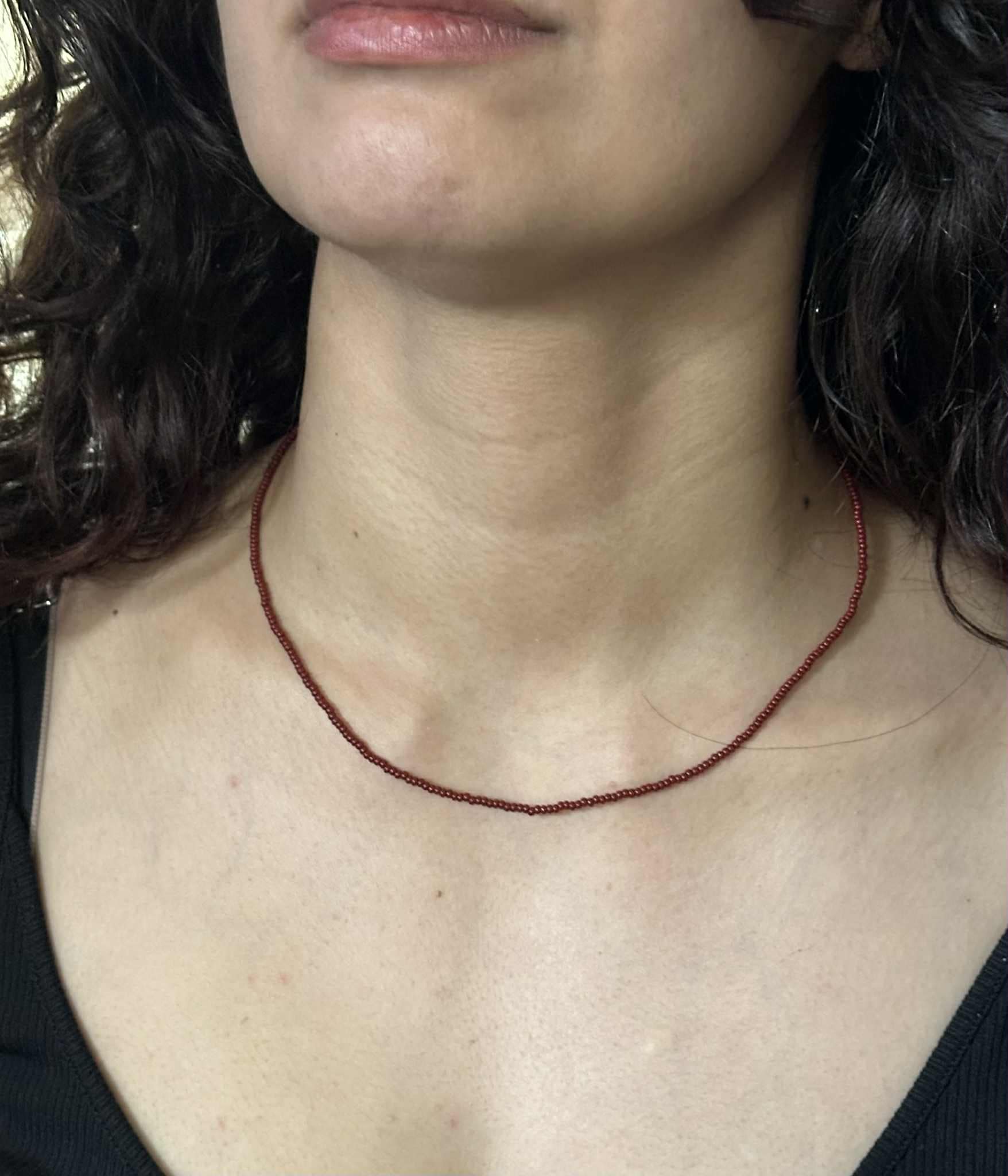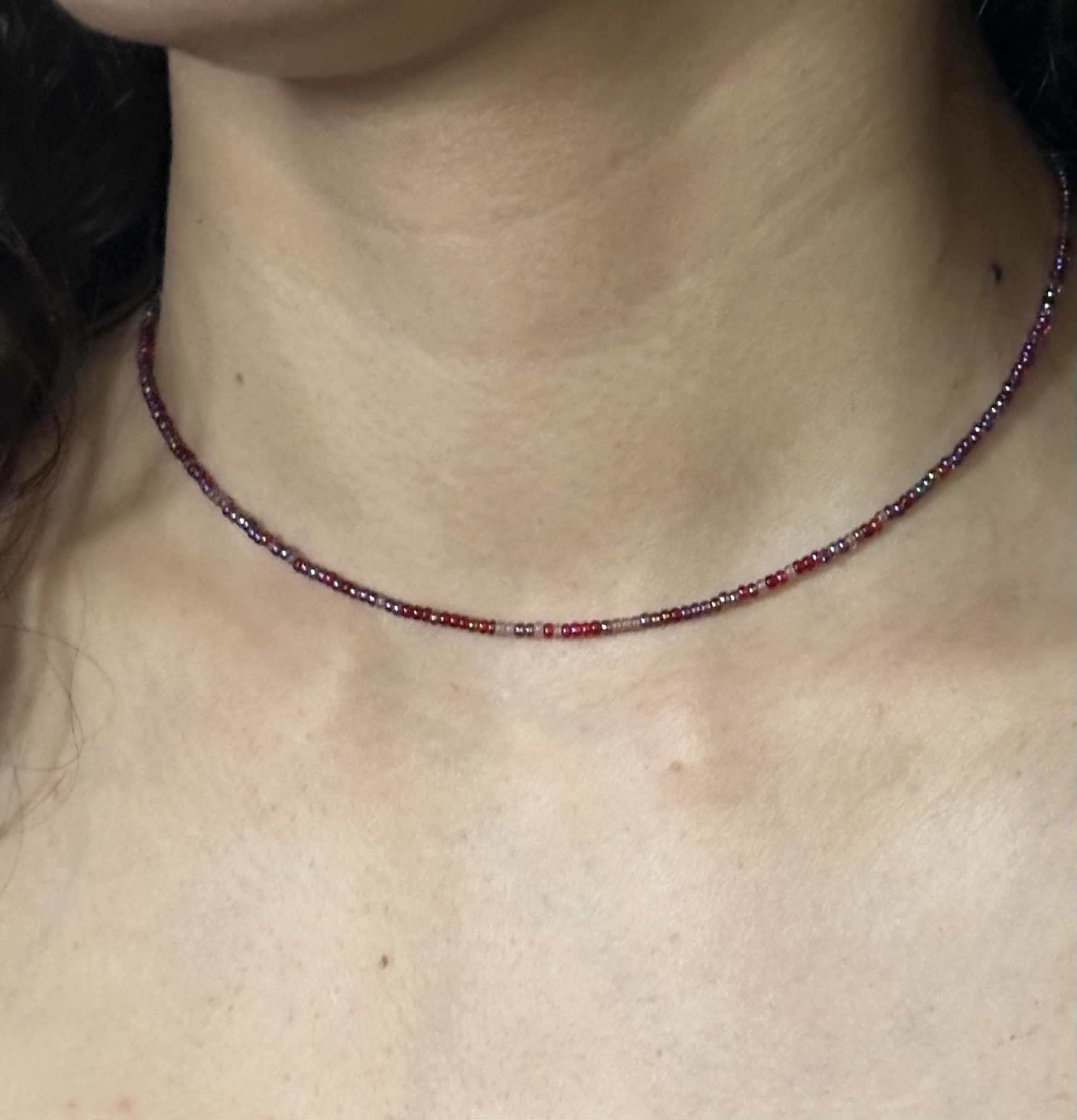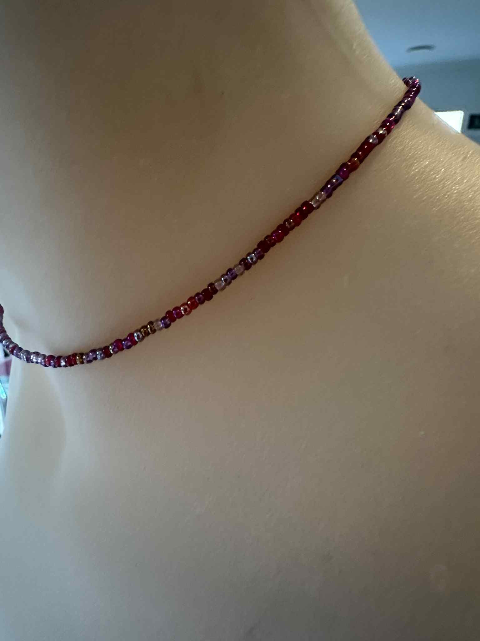 Add a pop of colour with this minimalist beaded choker — handcrafted with premium seed beads on a transparent cord for a floating look.