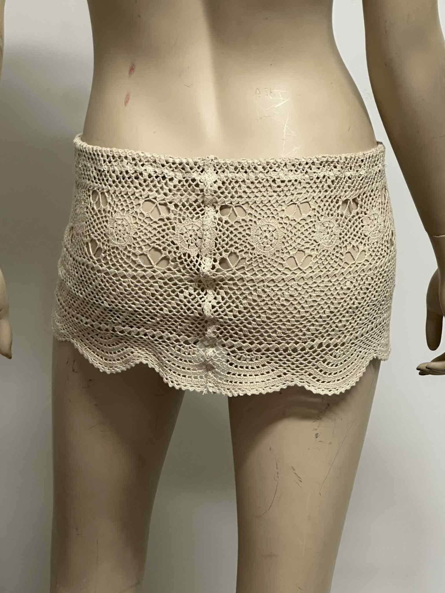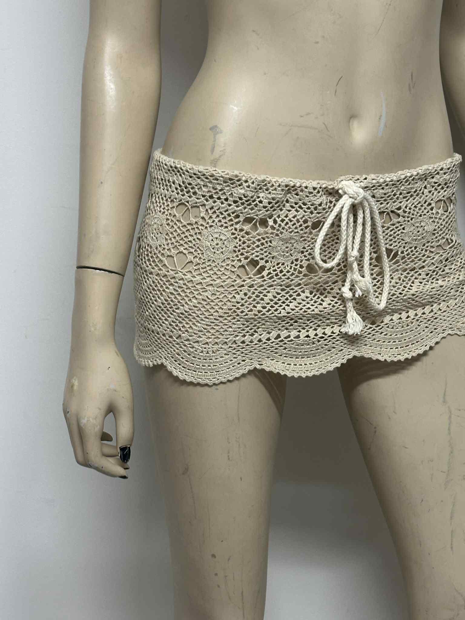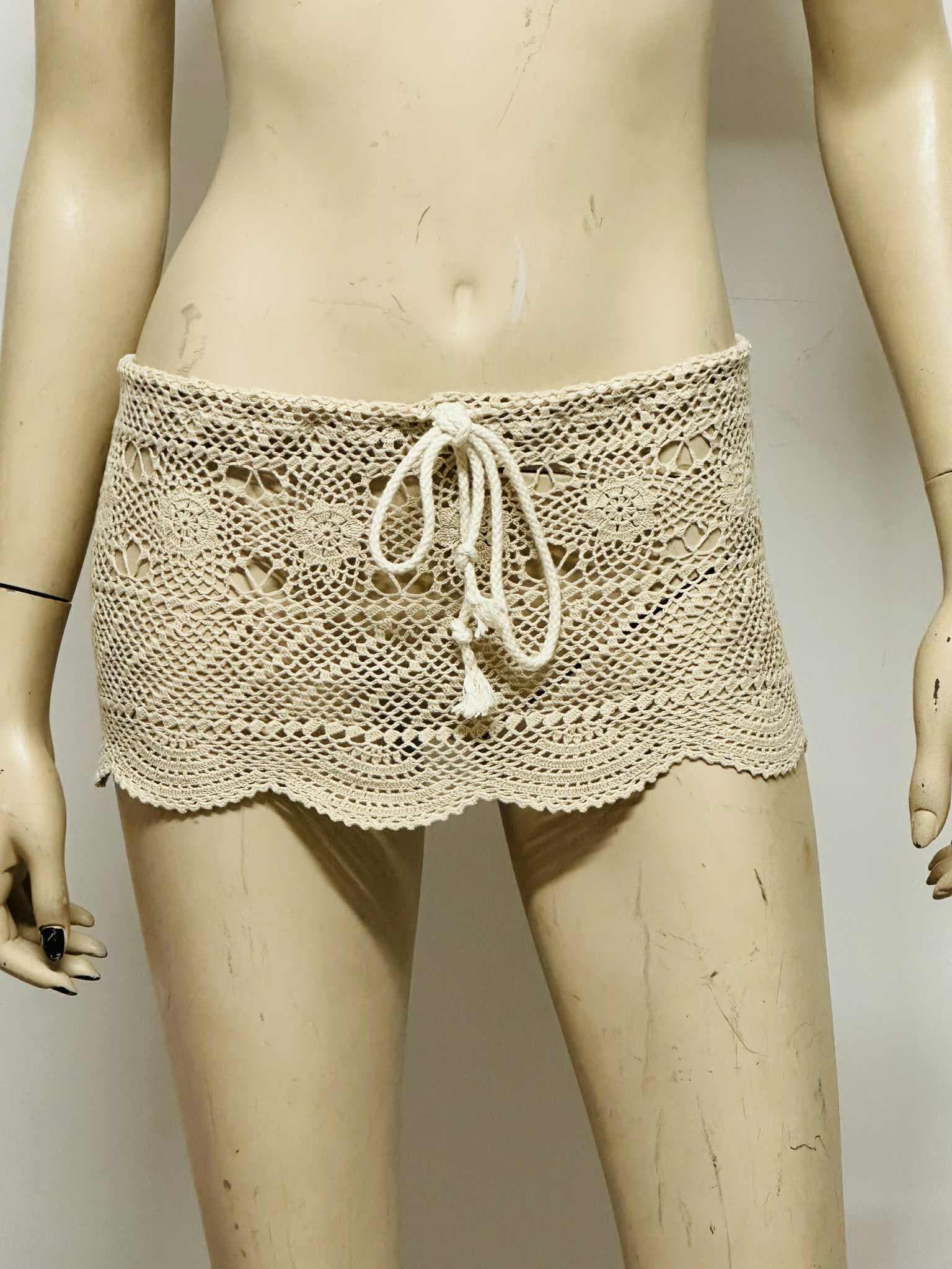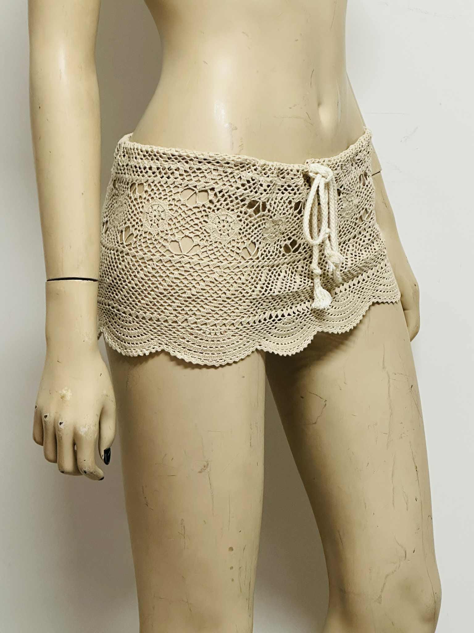 This handmade crochet mini skirt is the perfect piece to wear over your bikini after swimming — comfortable, breathable, and beautifully boho. Crafted with soft cotton yarn in a natural cream tone, it features a delicate floral pattern and adjustable waist ties for a perfect fit.