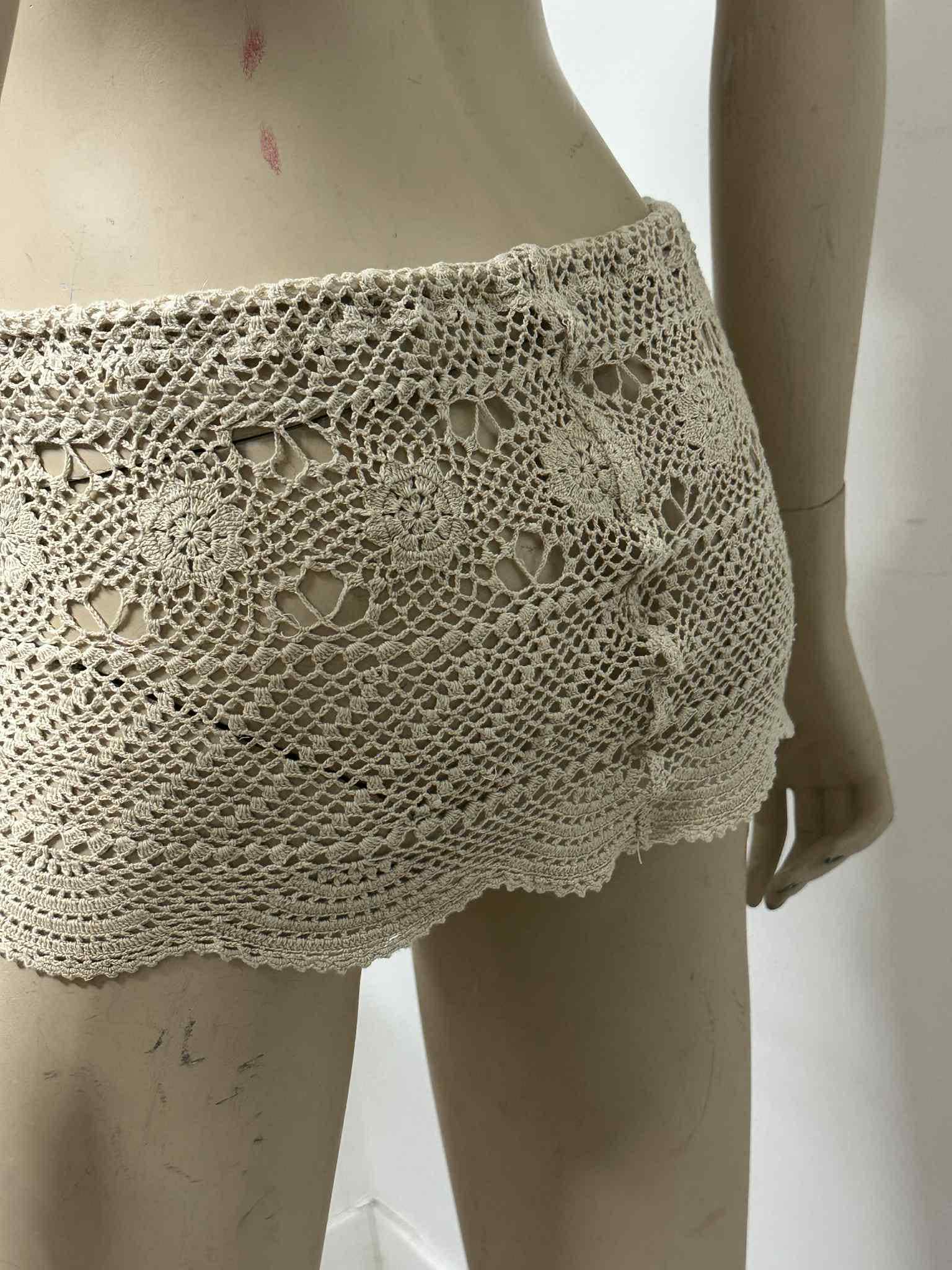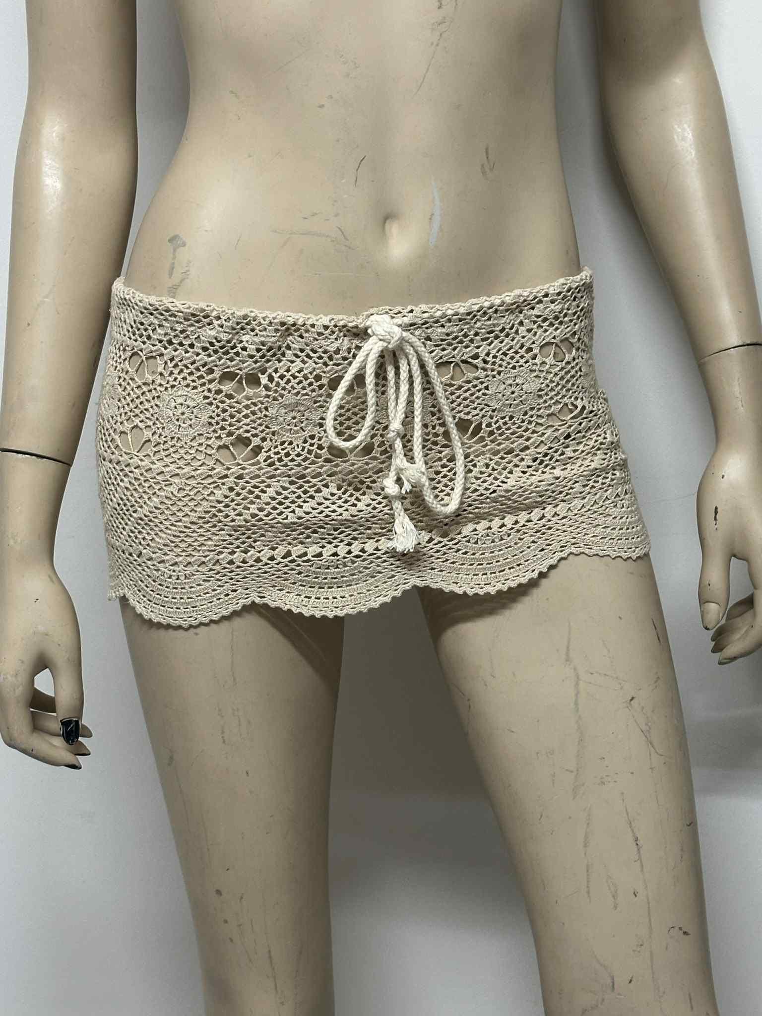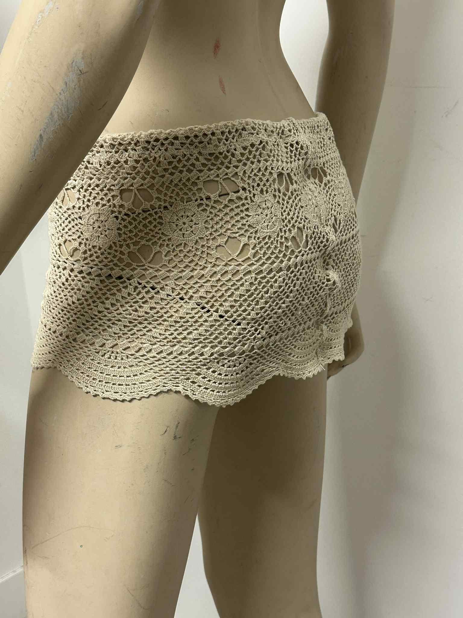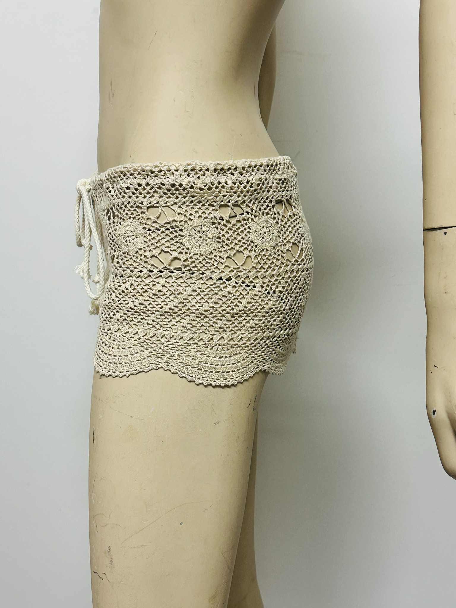 This handmade crochet mini skirt is the perfect piece to wear over your bikini after swimming — comfortable, breathable, and beautifully boho. Crafted with soft cotton yarn in a natural cream tone, it features a delicate floral pattern and adjustable waist ties for a perfect fit.