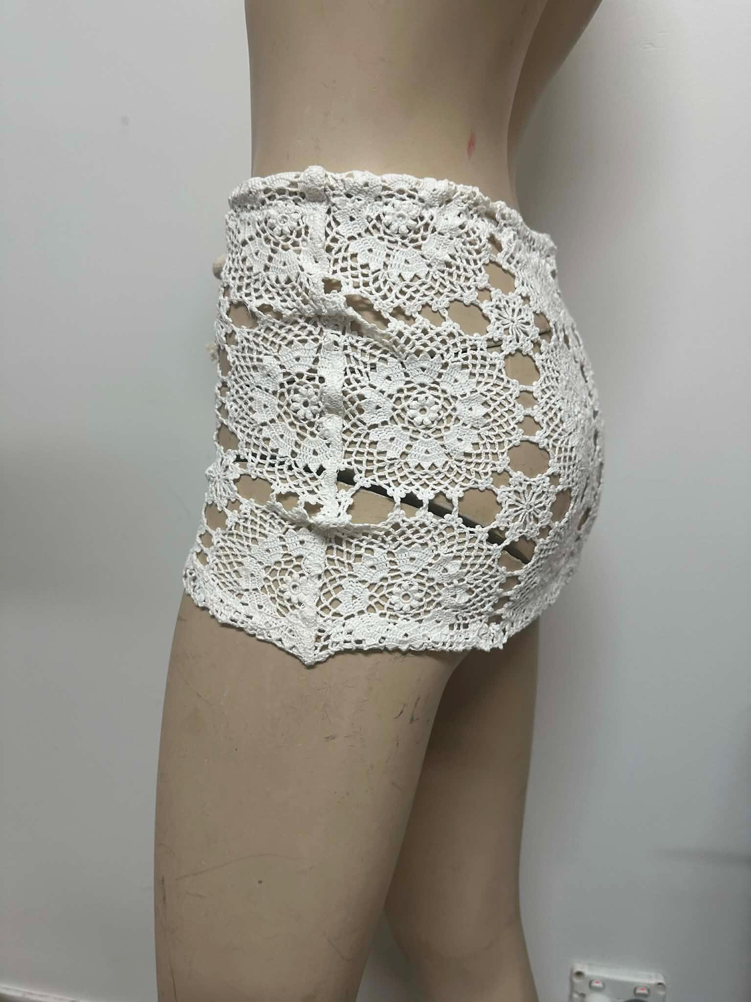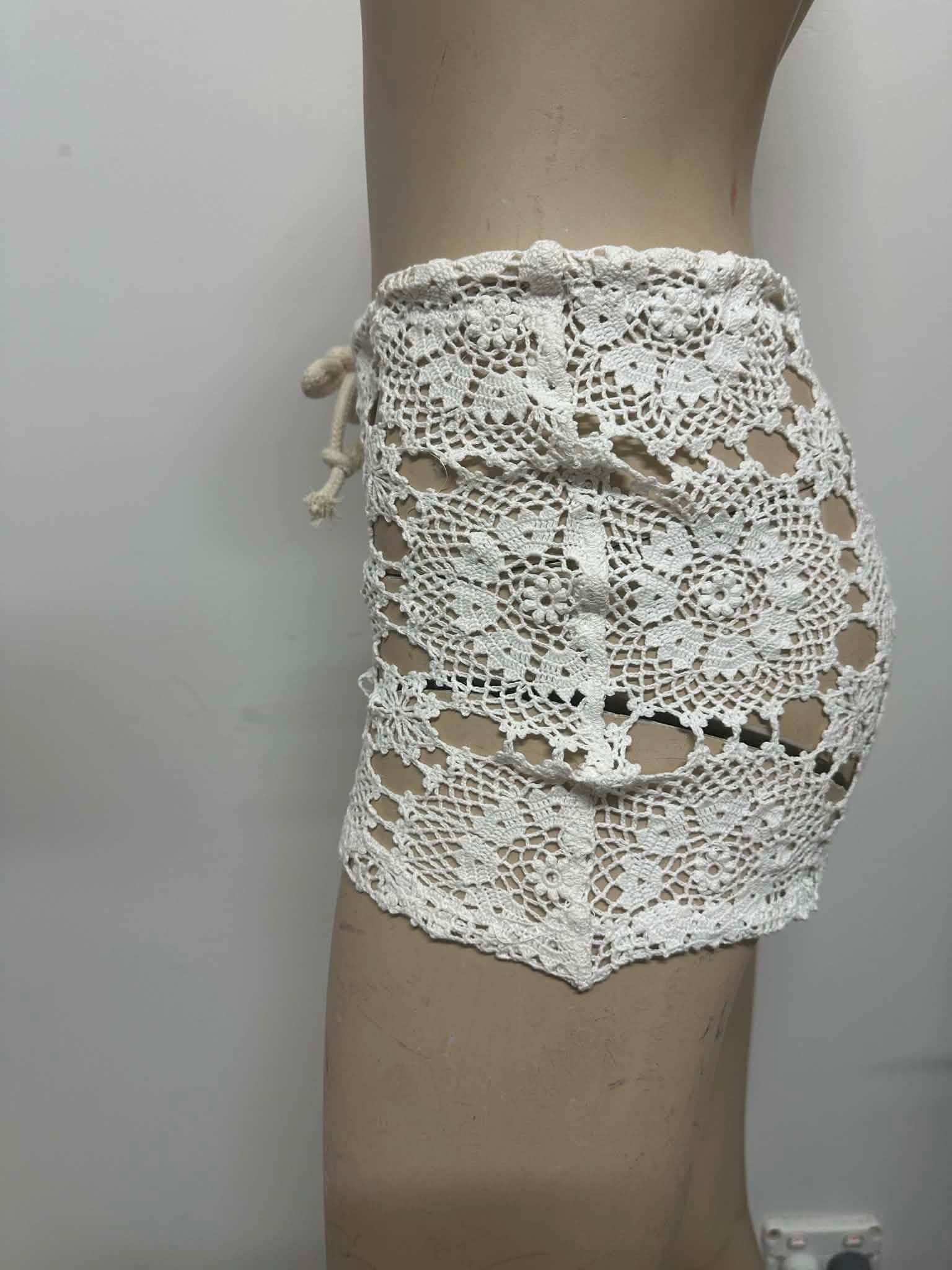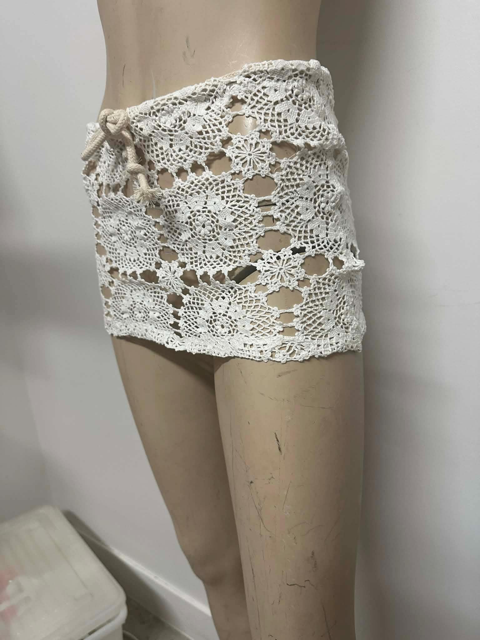 The open-lace design gives it a stylish, airy and feminine look — easy to wear over swimsuits, shorts or seamless underwear. Lightweight, breathable, and one-of-a-kind, just like all my handmade lace pieces.