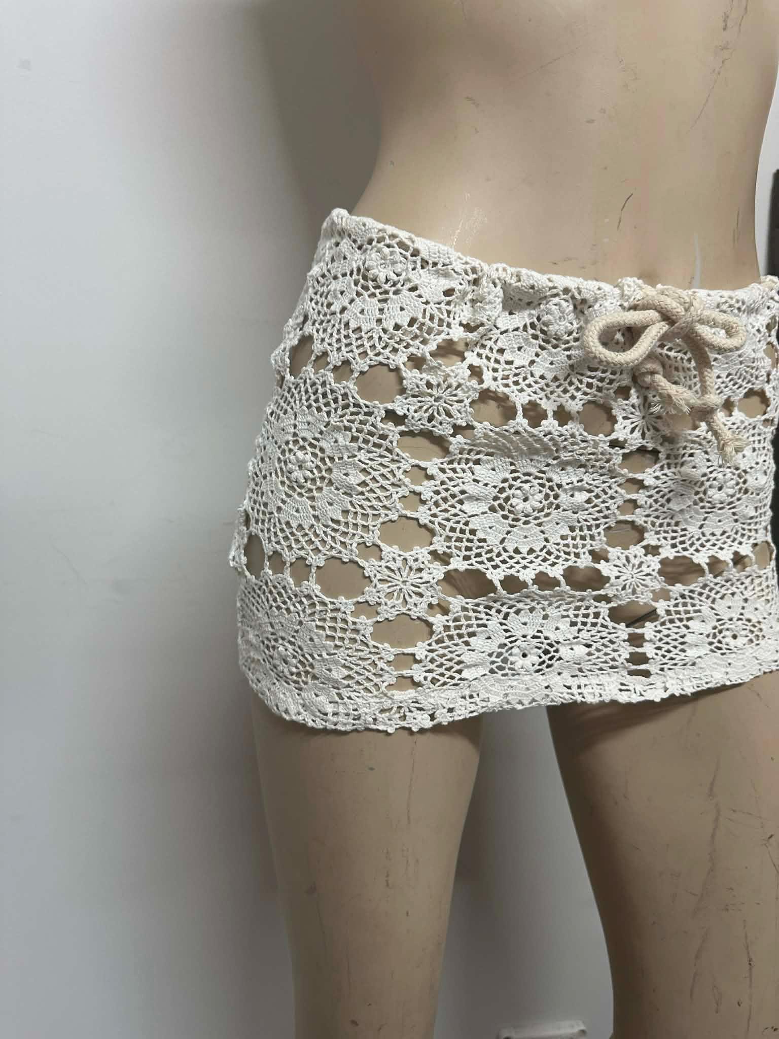 This beautiful mini skirt is made from restored vintage crochet lace pieces, carefully combined and hand-sewn to create a unique boho style. Perfect as a bikini cover-up, festival outfit, summer vacation piece, or beach photoshoot look.