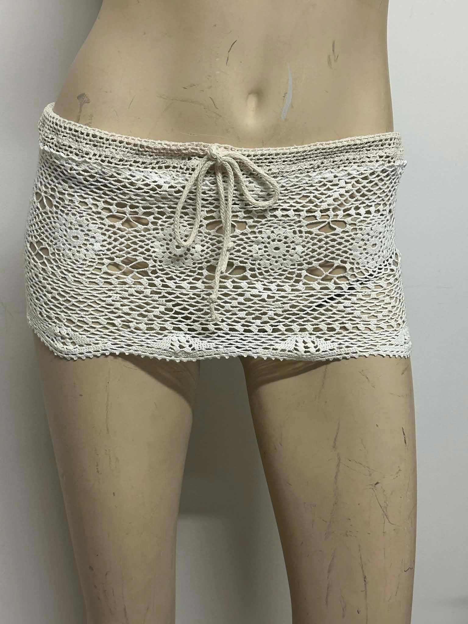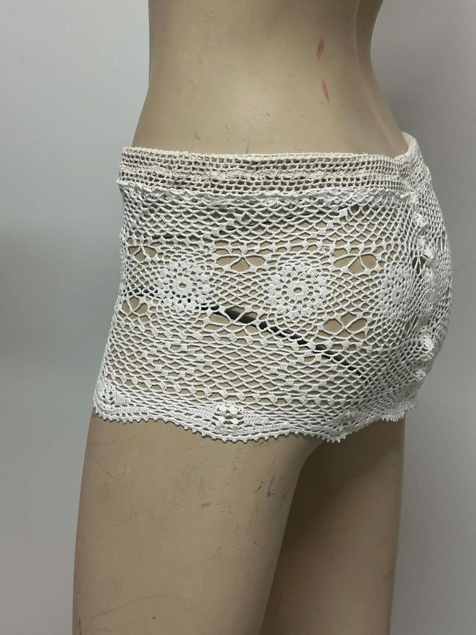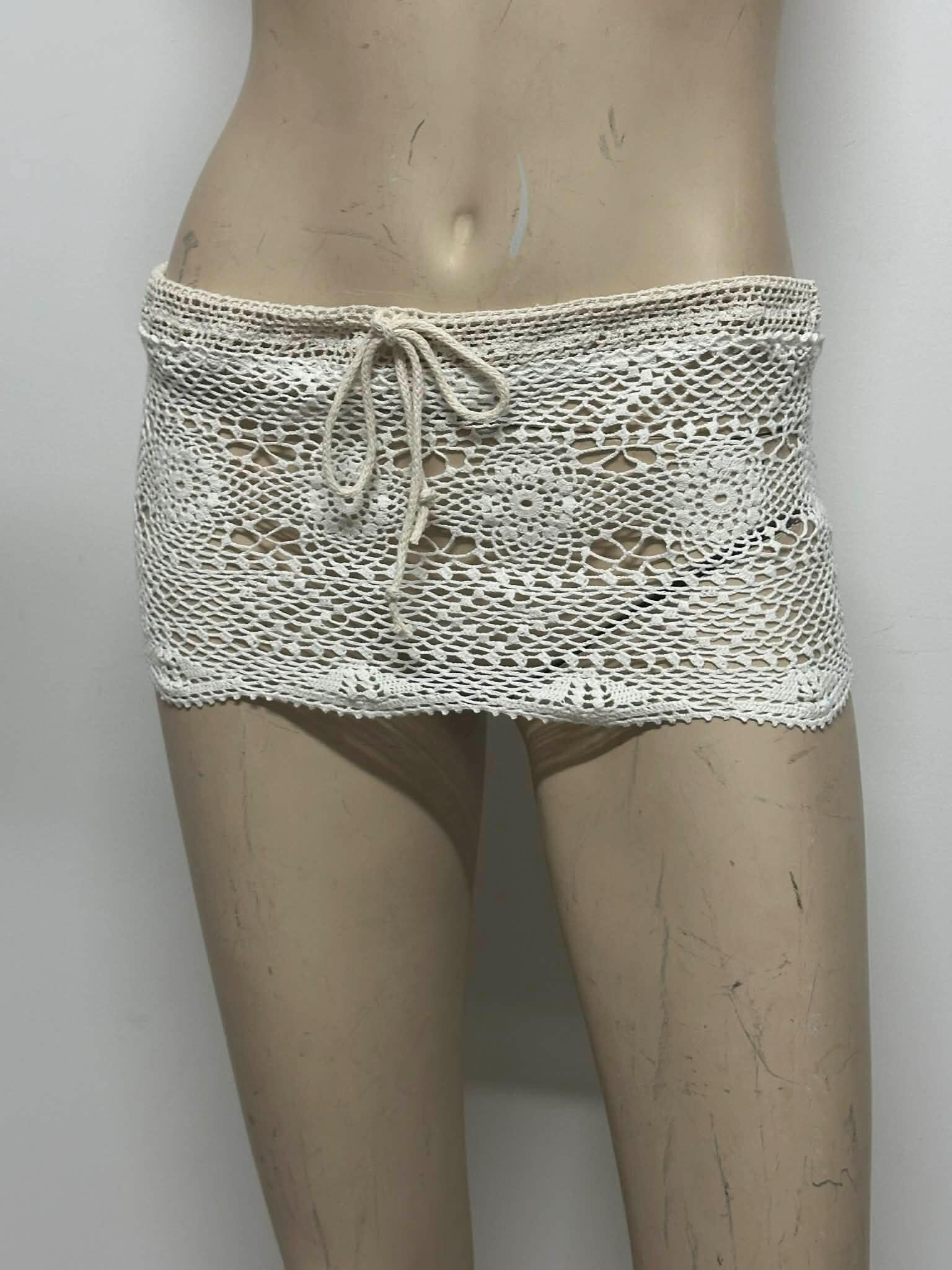 ✨ Features • Two-tone lace (off-white + beige) • Soft crochet texture • Mini length • Fits XS–S (AU 6
