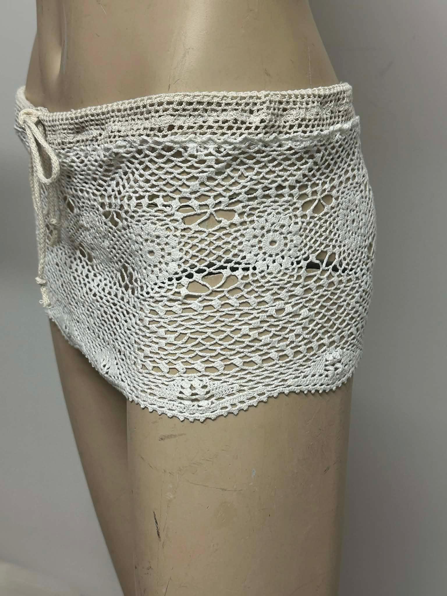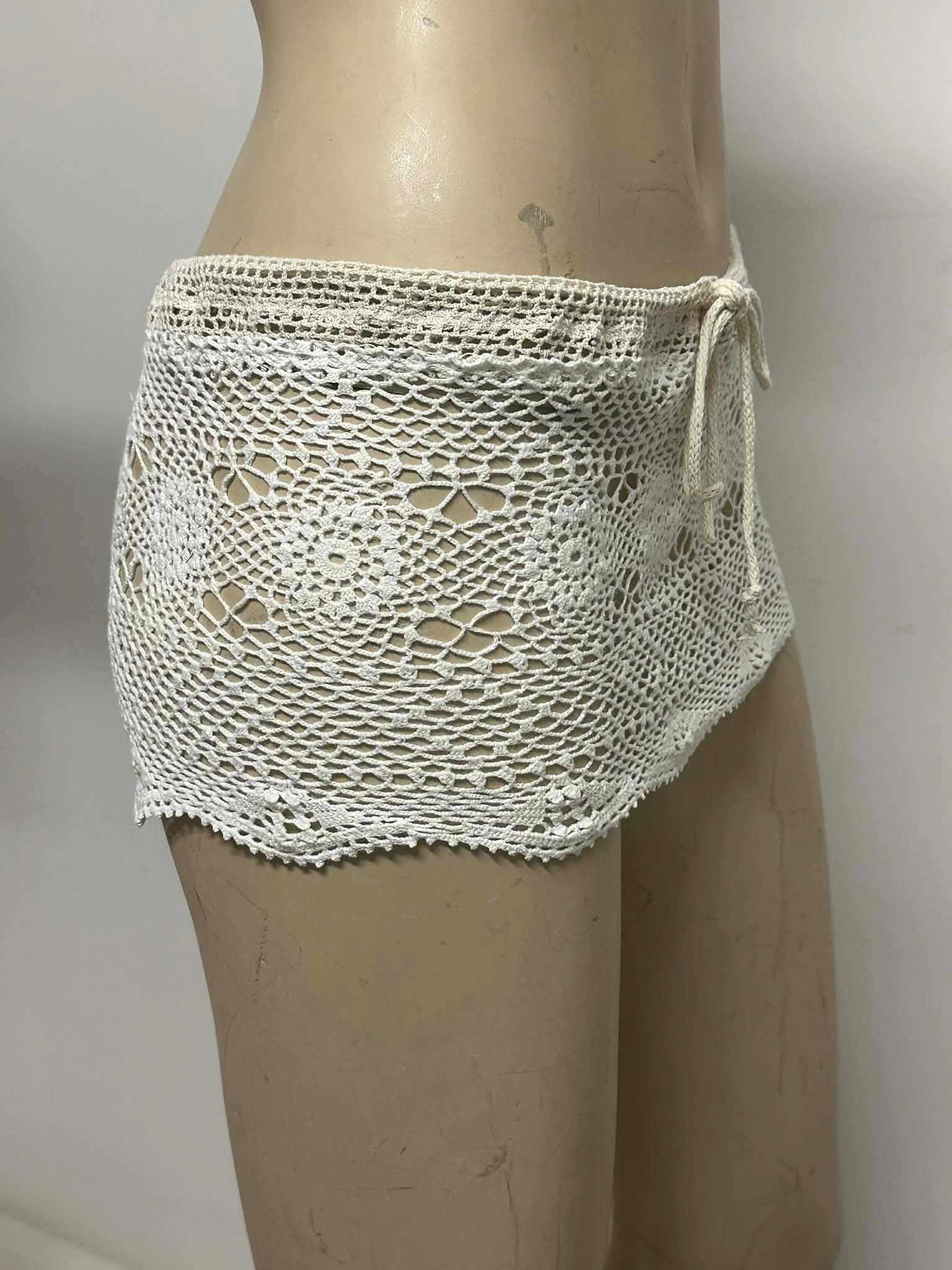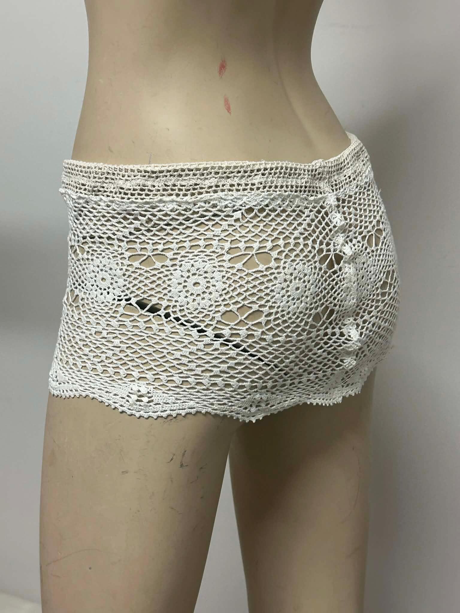✨ Features • Two-tone lace (off-white + beige) • Soft crochet texture • Mini length • Fits XS–S (AU 6